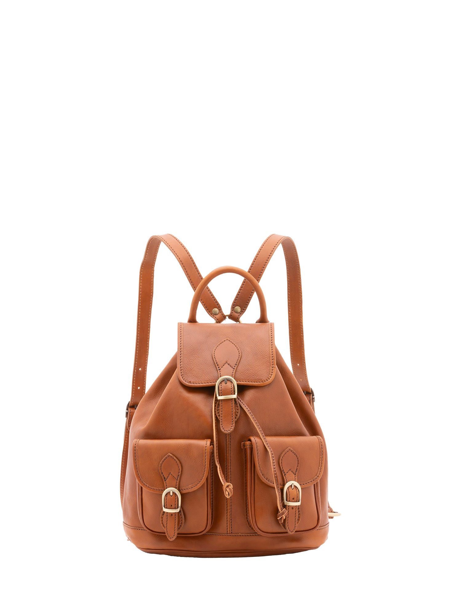 Unisex-Rucksack. Verschließbar mit Magnetknopf und Kordelzug. Innen befindet sich ein Reißverschlussfach. Zwei Außentaschen mit Schnalle befinden sich auf der Vorderseite. Der verstellbare Schultergurt aus Leder ist ebenfalls erhältlich. Der Tragegriff ist ebenfalls aus Leder. Innen befindet sich ein Fach. Das Außenmaterial besteht aus 100 % echtem Leder. Innen ist es mit echtem Leder gefüttert. Maße: 31 x 35 x 13 cm. Hergestellt in Italien.