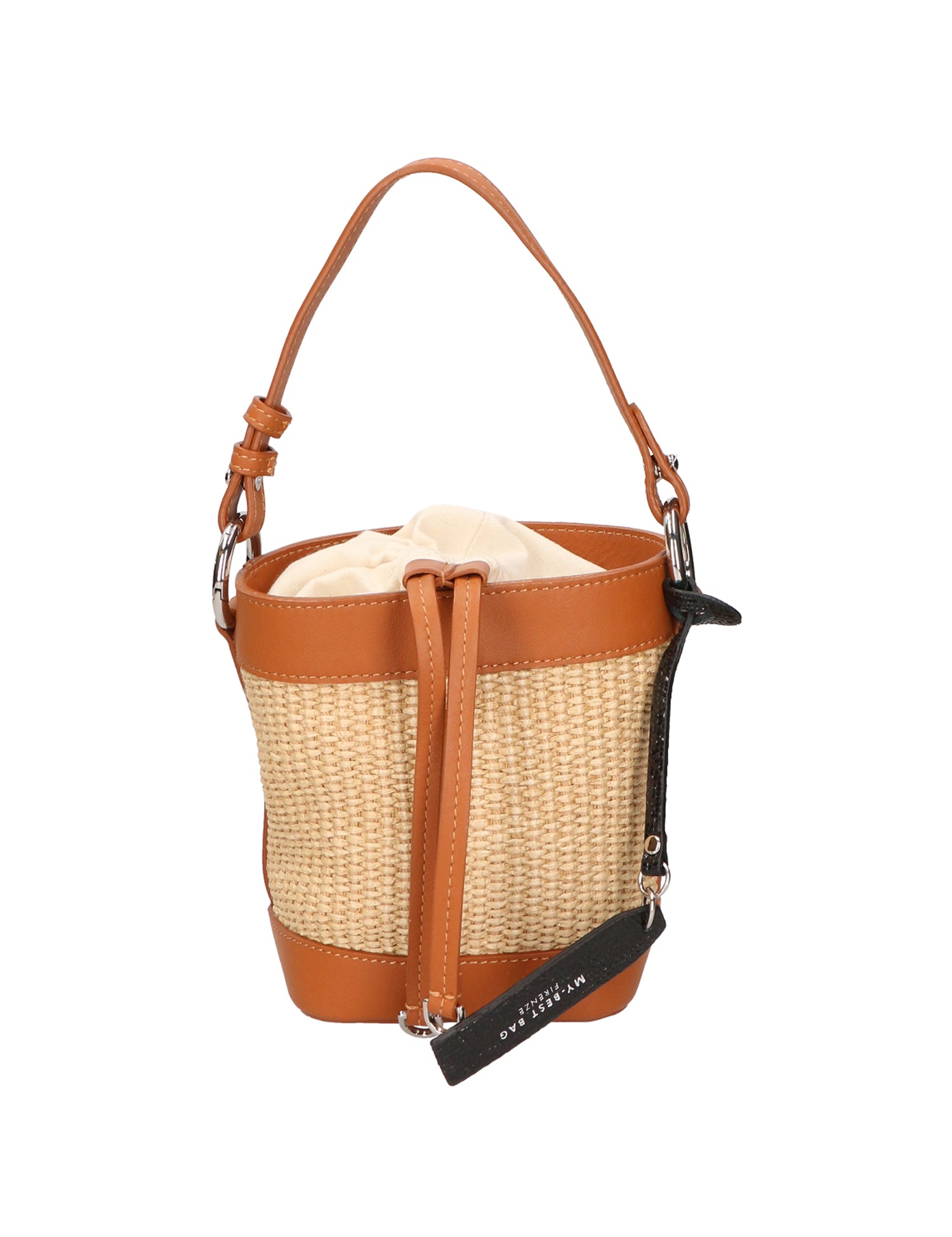 Women's bucket bag, mixed leather and fabric, Made in Italy, 24x18x15 cm
