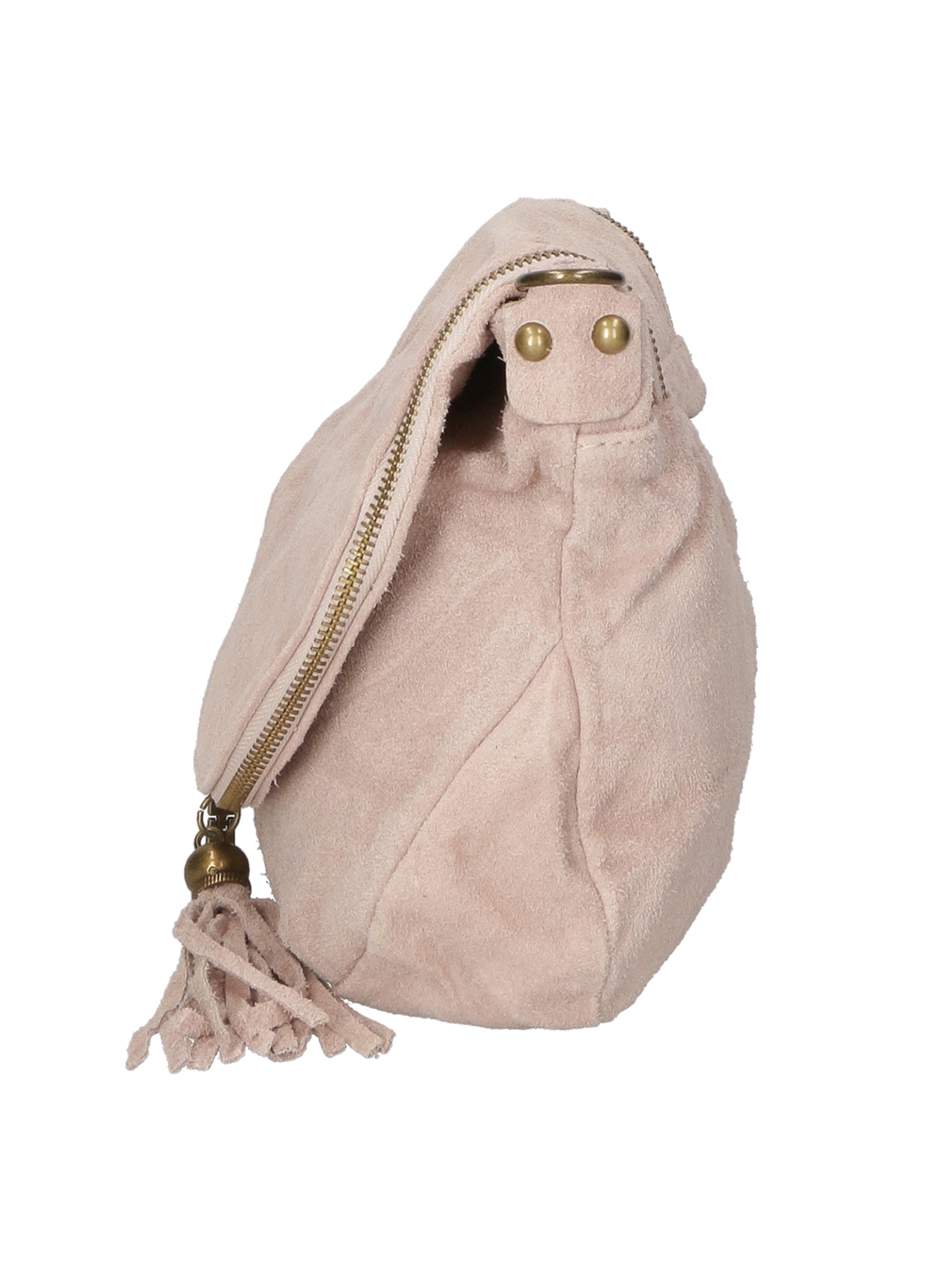 Embrace timeless elegance with this crossbody bag, a versatile accessory that adds a touch of sophistication to your everyday look. Crafted from premium suede, this bag embodies Italian craftsmanship, a true Made in Italy that stands out for the quality of the materials and attention to detail. Its soft and enveloping silhouette, combined with the secure zip closure, makes it perfect for carrying all your essentials with you in an organized and stylish way. The interior, lined with a mix of cotton and polyester, offers a feeling of comfort and protection for your personal items. The distinctive detail is the cute fringe pendant, which adds a bohemian and sophisticated touch. The adjustable shoulder strap, with a length of 60 cm, allows you to wear the bag comfortably on the shoulder or cross-body, adapting it to your style and needs. This bag is a long-lasting investment, designed to accompany you on every casual occasion, adding a touch of class to your outfit. Thanks to the 24-month warranty, you can enjoy its beauty and functionality over time. To preserve its beauty, we recommend delicate cleaning with specific products for leather.
