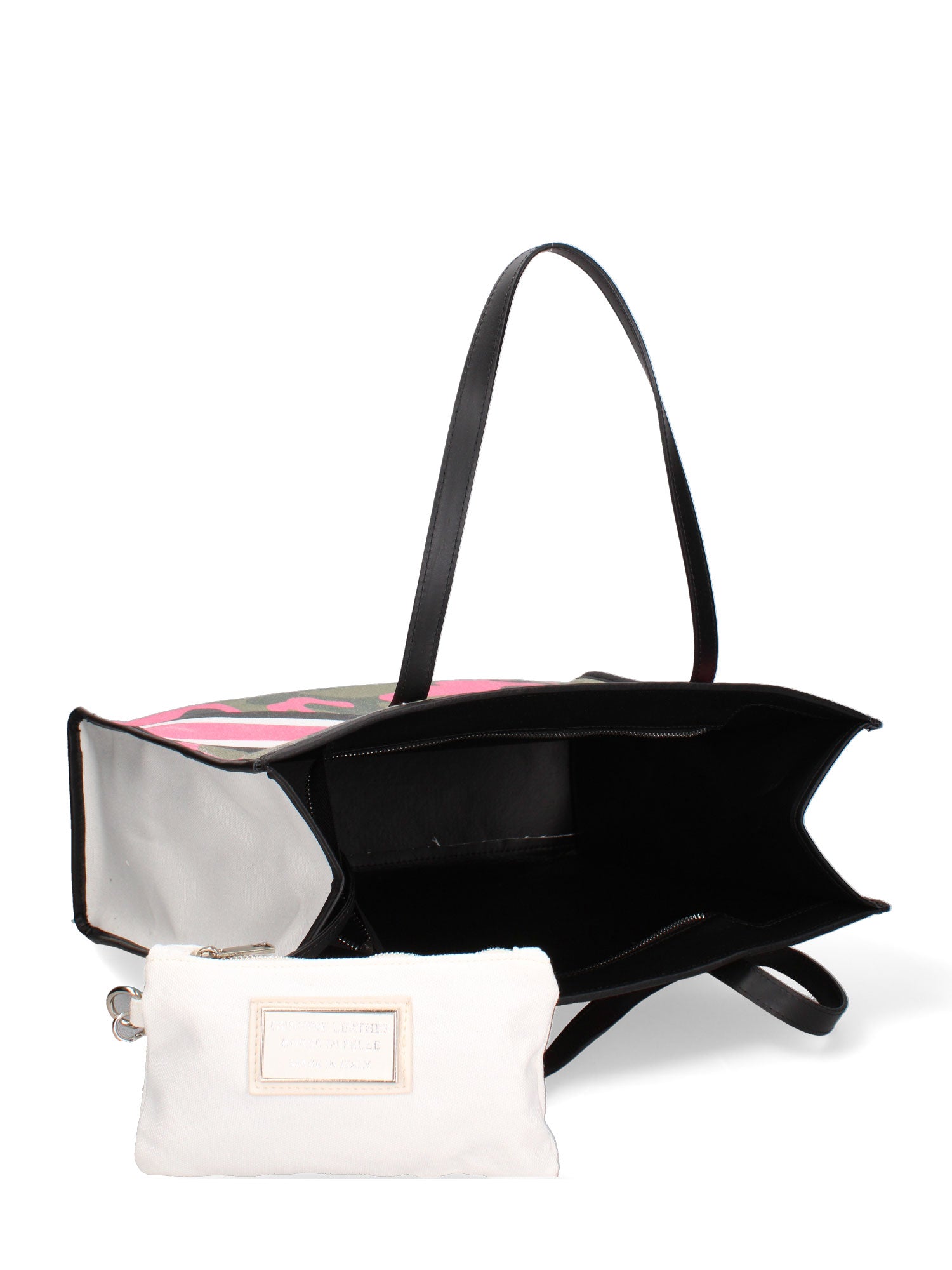Embrace a touch of bold femininity with this shoulder bag, a must-have for the modern woman who wants style and practicality. Crafted from an eye-catching mix of durable canvas and premium genuine leather, this bag turns heads with its vibrant camouflage pattern in bold hues. Italian craftsmanship is at the heart of this creation, giving it timeless elegance and superior quality. The interior, finished with paper, offers ample and versatile space to carry all your essentials with ease. The zip closure ensures the safety of personal items, while the leather handles offer a comfortable and secure grip. Perfect for everyday use or a casual occasion, this bag adds a touch of color and personality to any outfit. Its unlined structure makes it light and functional, ideal for those looking for a practical accessory without sacrificing aesthetics. To maintain the beauty of this bag over time, we recommend delicate cleaning with specific products for leather. A lasting investment in style and quality, entirely Made in Italy.