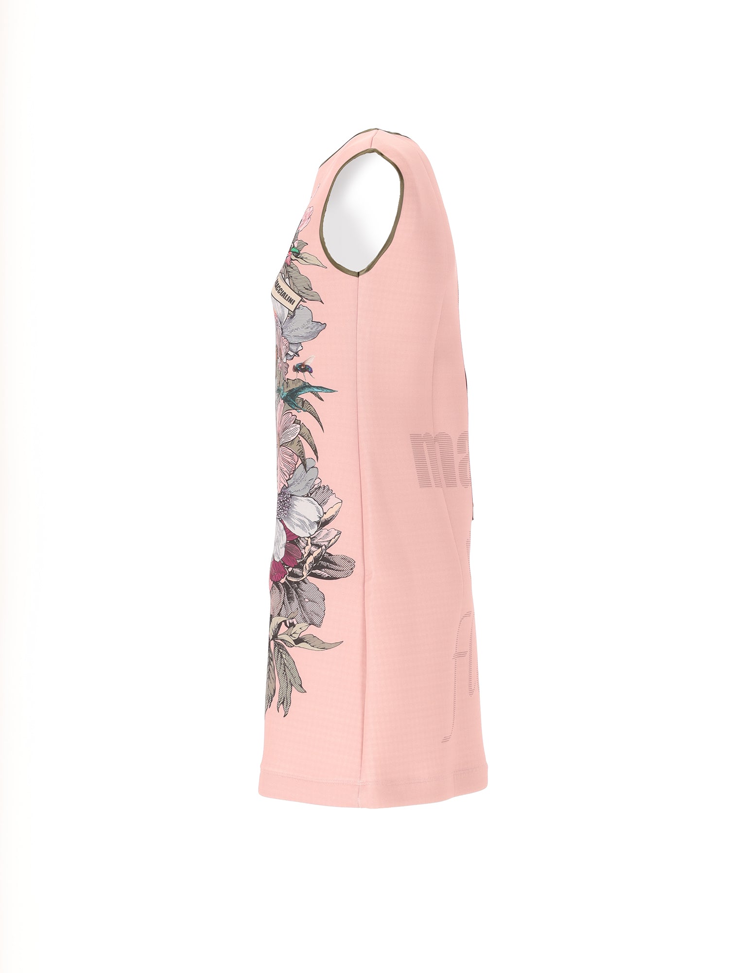 L'esterno in tessuto pregiato si fonde con una fodera interna in poliestere, garantendo comfort e una sensazione piacevole sulla pelle. La stampa floreale, ricca di sfumature e dettagli, rende questo abito un vero e proprio capolavoro artigianale.