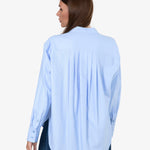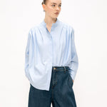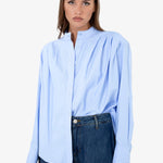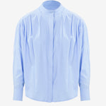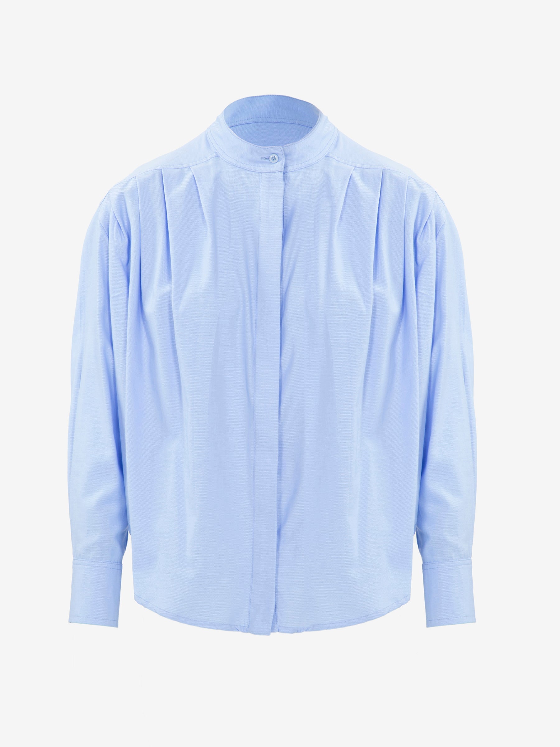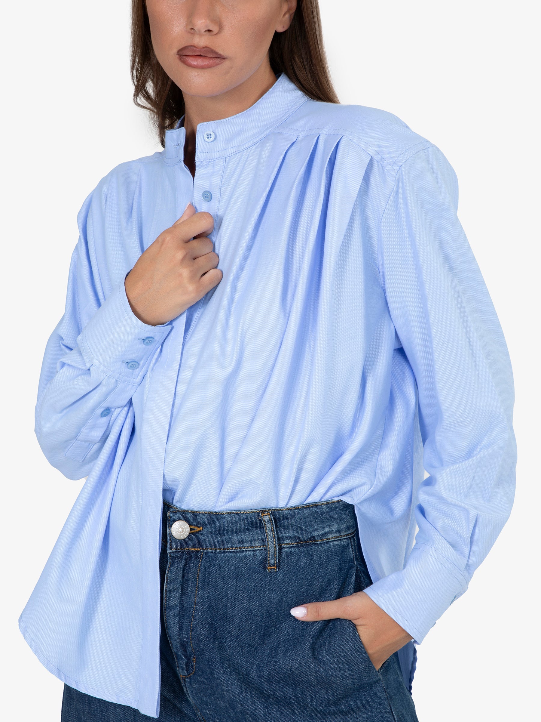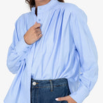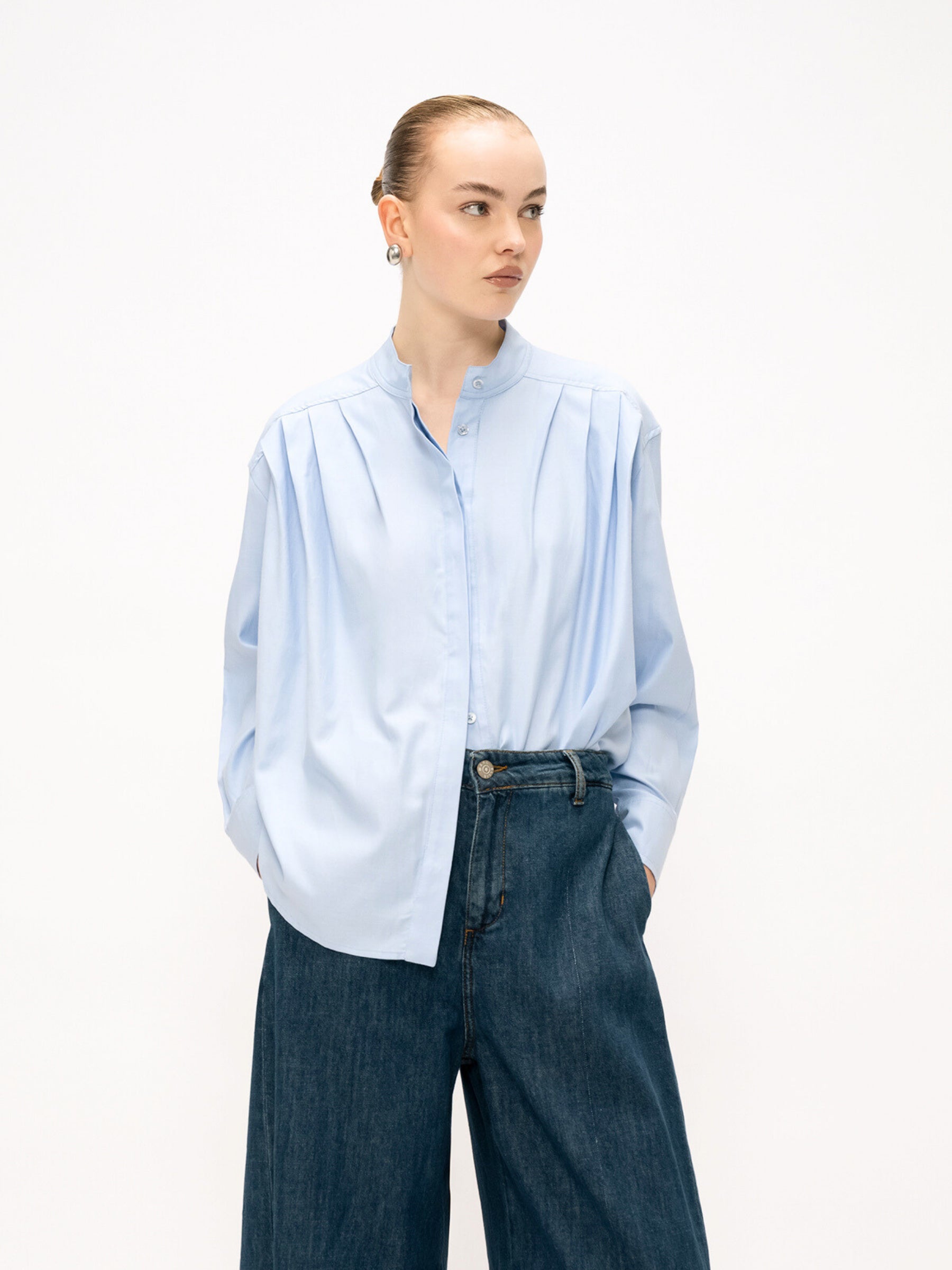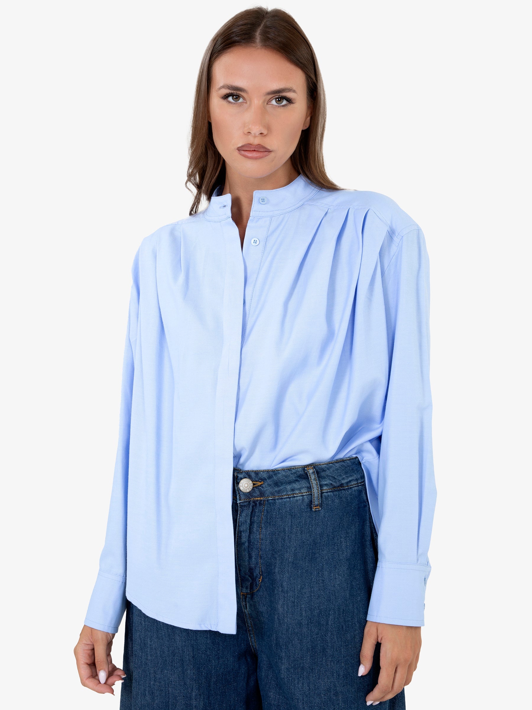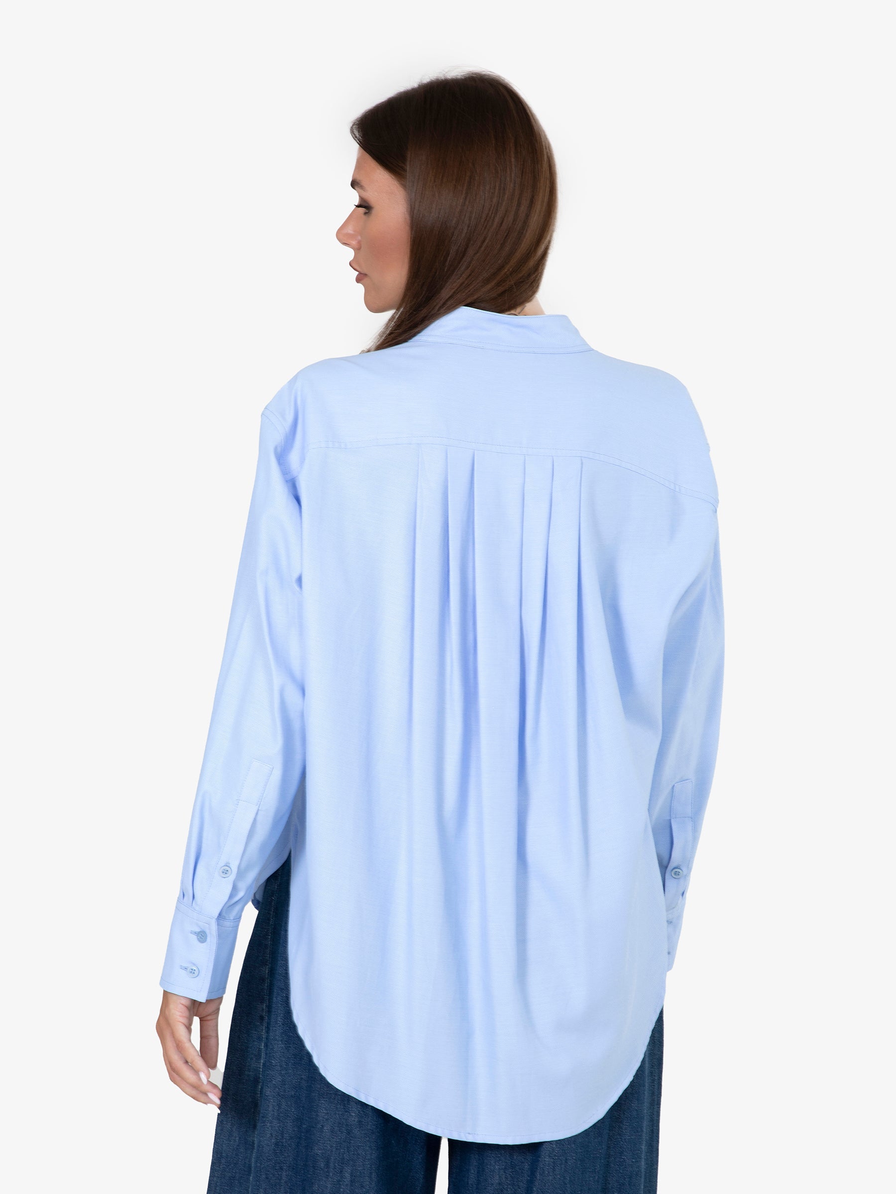 Il taglio ampio e le maniche leggermente voluminose conferiscono un tocco di modernità e dinamismo, rendendola perfetta per un look casual ma ricercato. L'assenza di chiusure enfatizza la linea pulita e fluida del capo, offrendo un'allure minimalista e sofisticata.
