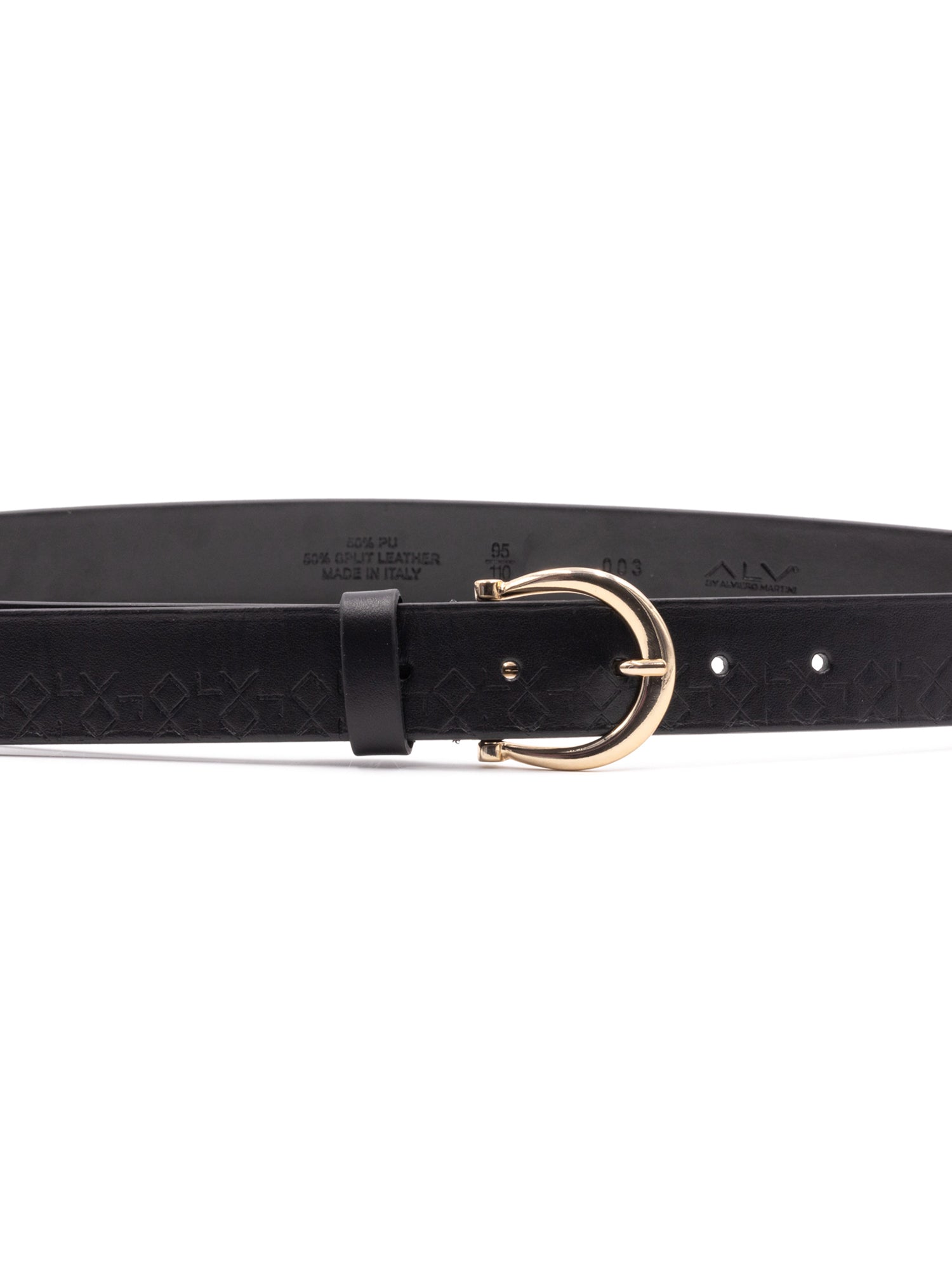 La texture delicatamente lavorata aggiunge un dettaglio sofisticato, elevando anche il look più casual. La cintura è realizzata in un materiale resistente e flessibile, garantendo comfort e durata nel tempo.