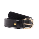 La fibbia dorata, dal design classico ed elegante, completa il look con un tocco di lusso. Perfetta per definire la vita su abiti, gonne o pantaloni, questa cintura è un must-have nel guardaroba di ogni donna.