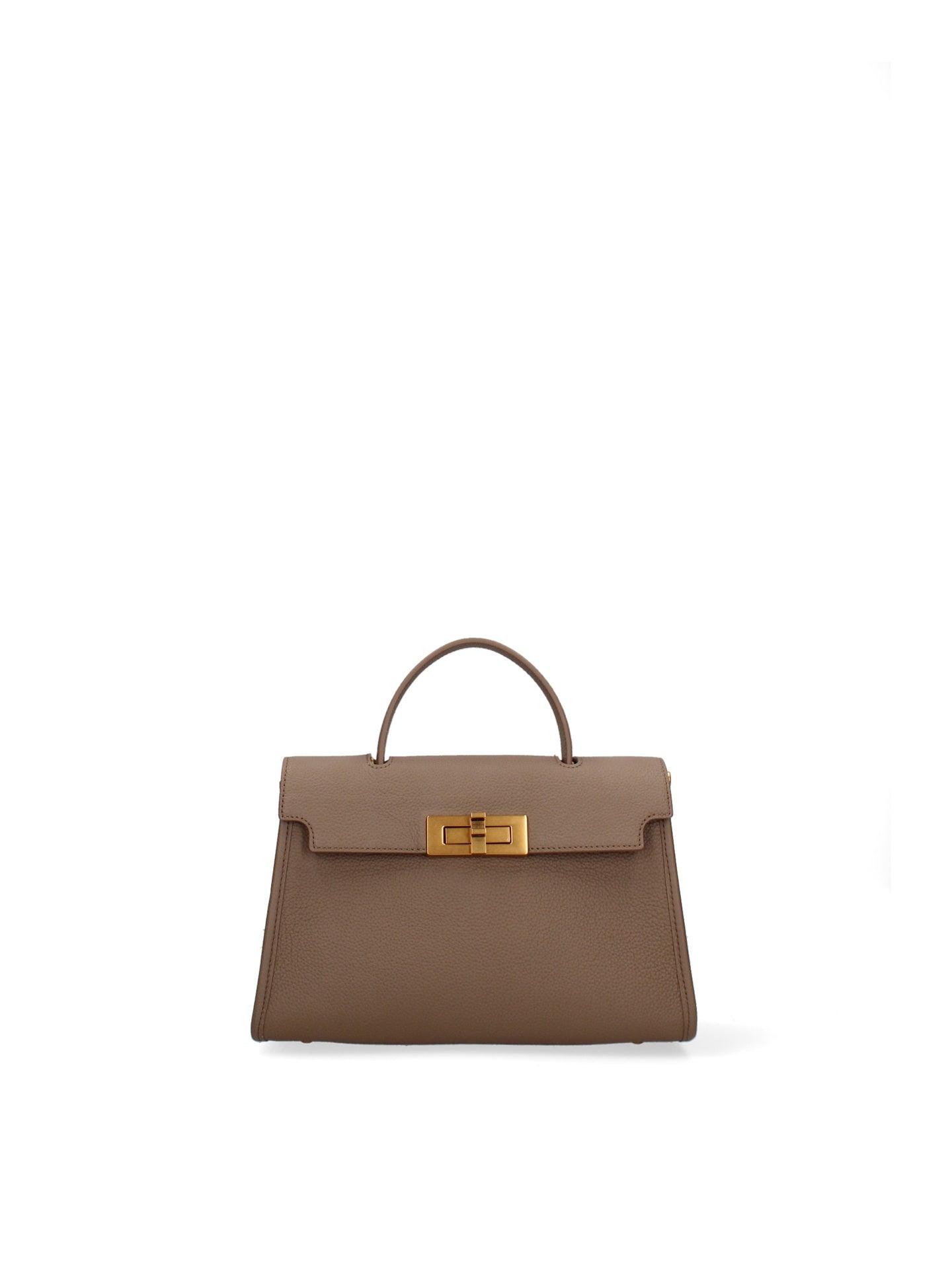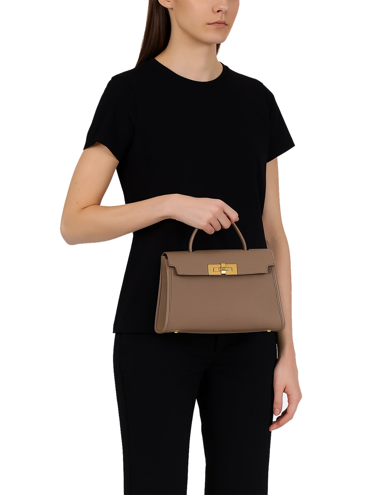 Its classic, clean silhouette is enhanced by a gold-tone twist lock, a detail that lends a touch of timeless sophistication. The unlined interior enhances the natural beauty of the leather, offering a unique tactile experience.