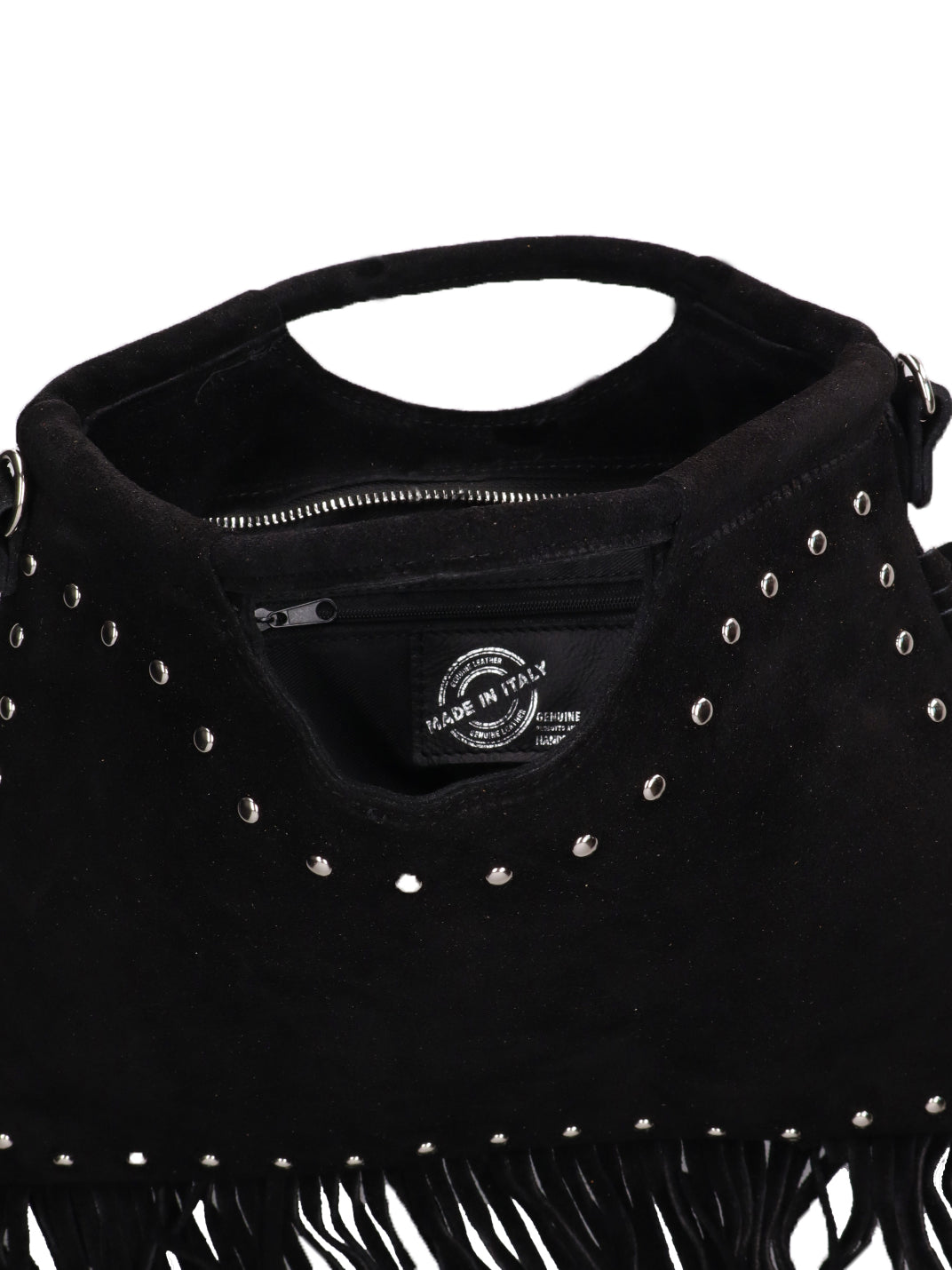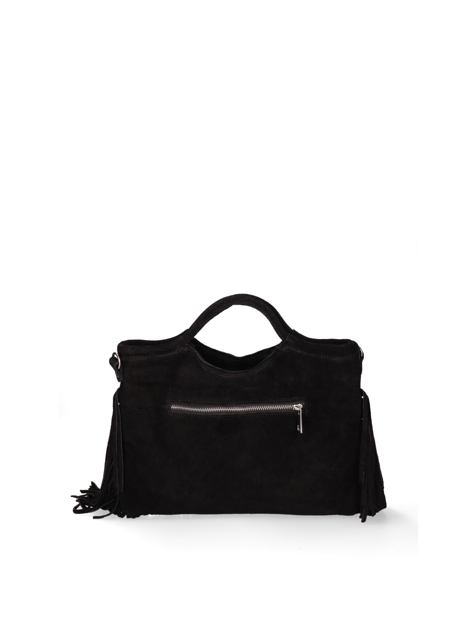 Timeless elegance blends with Italian craftsmanship in this stunning handbag. Crafted from premium suede, this bag is a testament to quality and sophisticated design. The soft, enveloping texture of the suede is enhanced by unique details, such as fringe, which lends movement and a bohemian touch to the look. The interior, lined with a combination of cotton and synthetic materials, offers well-organized and comfortable storage for all your belongings. The zip closure ensures security and practicality. This bag is a true stylish accessory, perfect for completing casual outfits but also adding a touch of sophistication to more sophisticated looks. Made entirely in Italy, it is a symbol of artisanal excellence and a passion for detail. The adjustable 55 cm shoulder strap allows you to wear it comfortably over the shoulder or across the body. To preserve its beauty over time, we recommend cleaning with specific leather products. A lasting investment that will accompany you in style on every occasion.