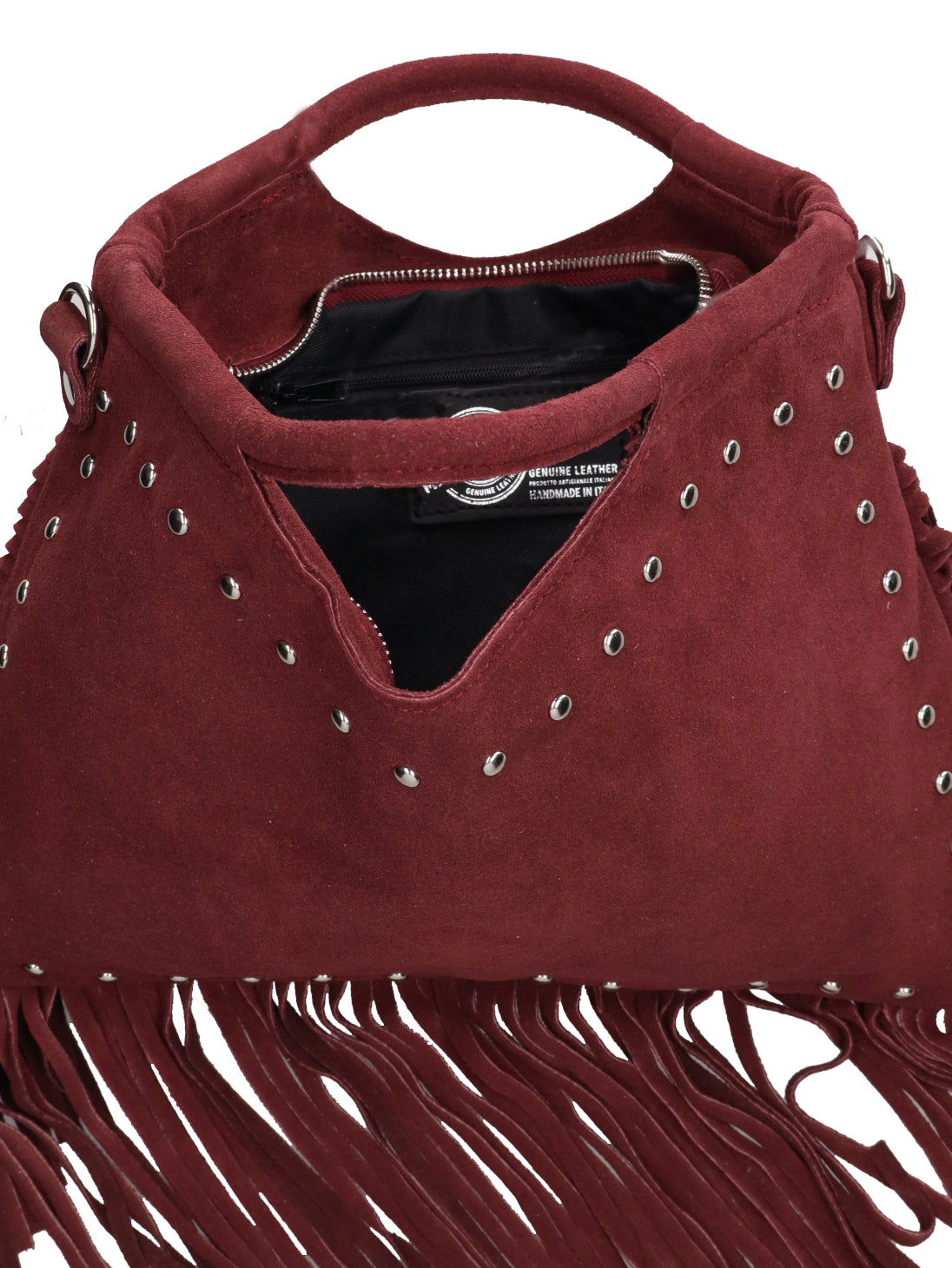 Timeless elegance blends with Italian craftsmanship in this stunning handbag. Crafted from premium suede, this bag is a testament to quality and sophisticated design. The soft, enveloping texture of the suede is enhanced by unique details, such as fringe, which lends movement and a bohemian touch to the look. The interior, lined with a combination of cotton and synthetic materials, offers well-organized and comfortable storage for all your belongings. The zip closure ensures security and practicality. This bag is a true stylish accessory, perfect for completing casual outfits but also adding a touch of sophistication to more sophisticated looks. Made entirely in Italy, it is a symbol of artisanal excellence and a passion for detail. The adjustable 55 cm shoulder strap allows you to wear it comfortably over the shoulder or across the body. To preserve its beauty over time, we recommend cleaning with specific leather products. A lasting investment that will accompany you in style on every occasion.
