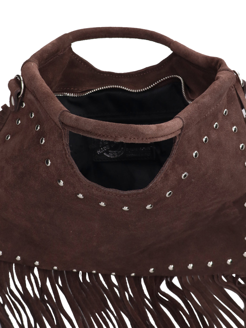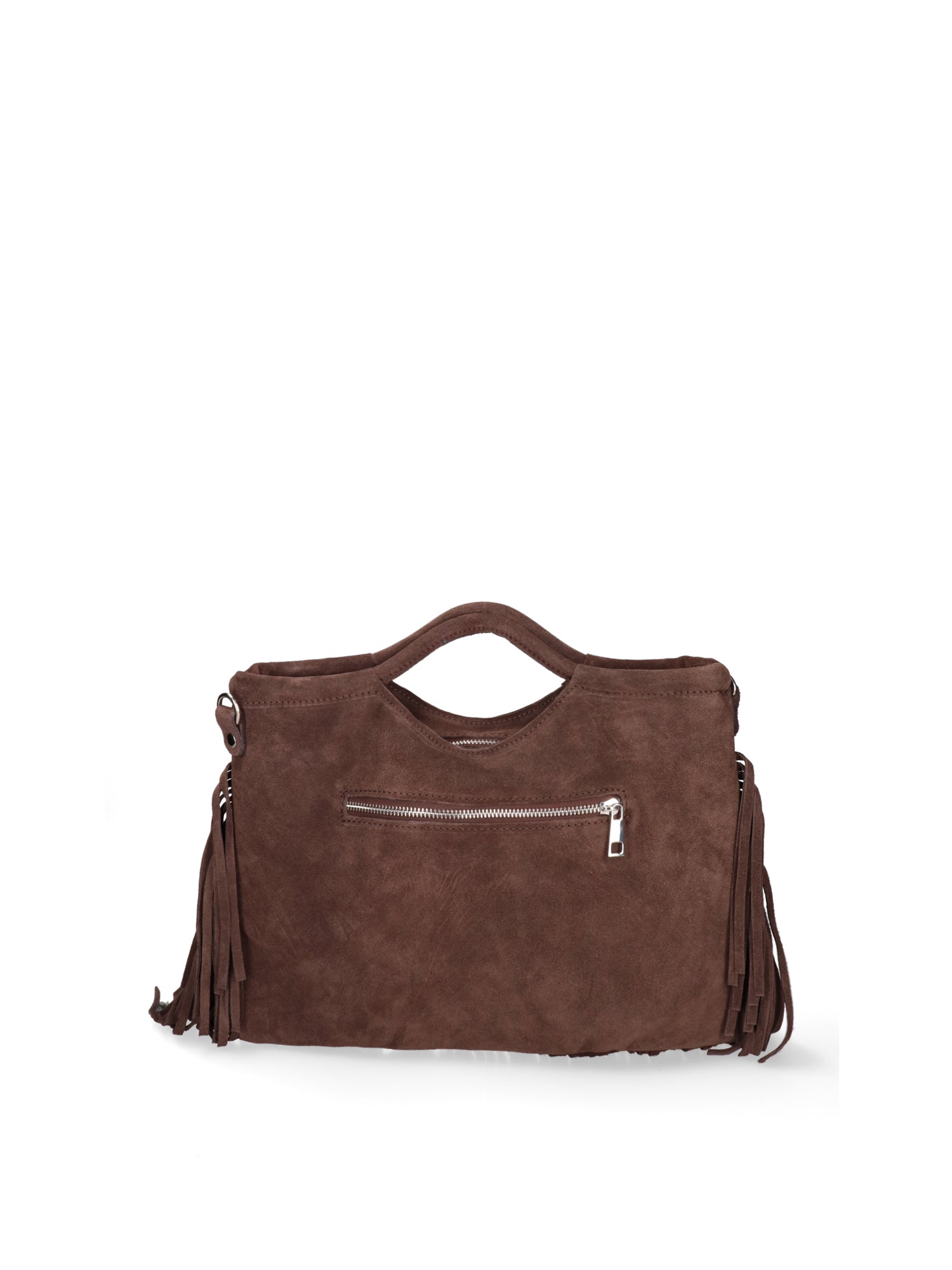 Timeless elegance blends with Italian craftsmanship in this stunning handbag. Crafted from premium suede, this bag is a testament to quality and sophisticated design. The soft, enveloping texture of the suede is enhanced by unique details, such as fringe, which lends movement and a bohemian touch to the look. The interior, lined with a combination of cotton and synthetic materials, offers well-organized and comfortable storage for all your belongings. The zip closure ensures security and practicality. This bag is a true stylish accessory, perfect for completing casual outfits but also adding a touch of sophistication to more sophisticated looks. Made entirely in Italy, it is a symbol of artisanal excellence and a passion for detail. The adjustable 55 cm shoulder strap allows you to wear it comfortably over the shoulder or across the body. To preserve its beauty over time, we recommend cleaning with specific leather products. A lasting investment that will accompany you in style on every occasion.