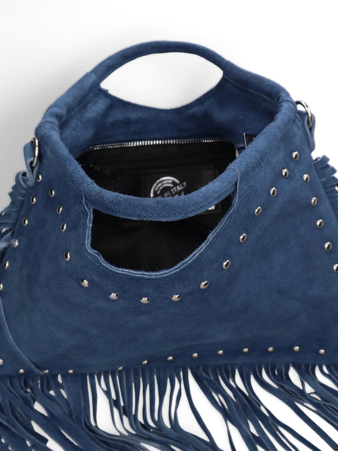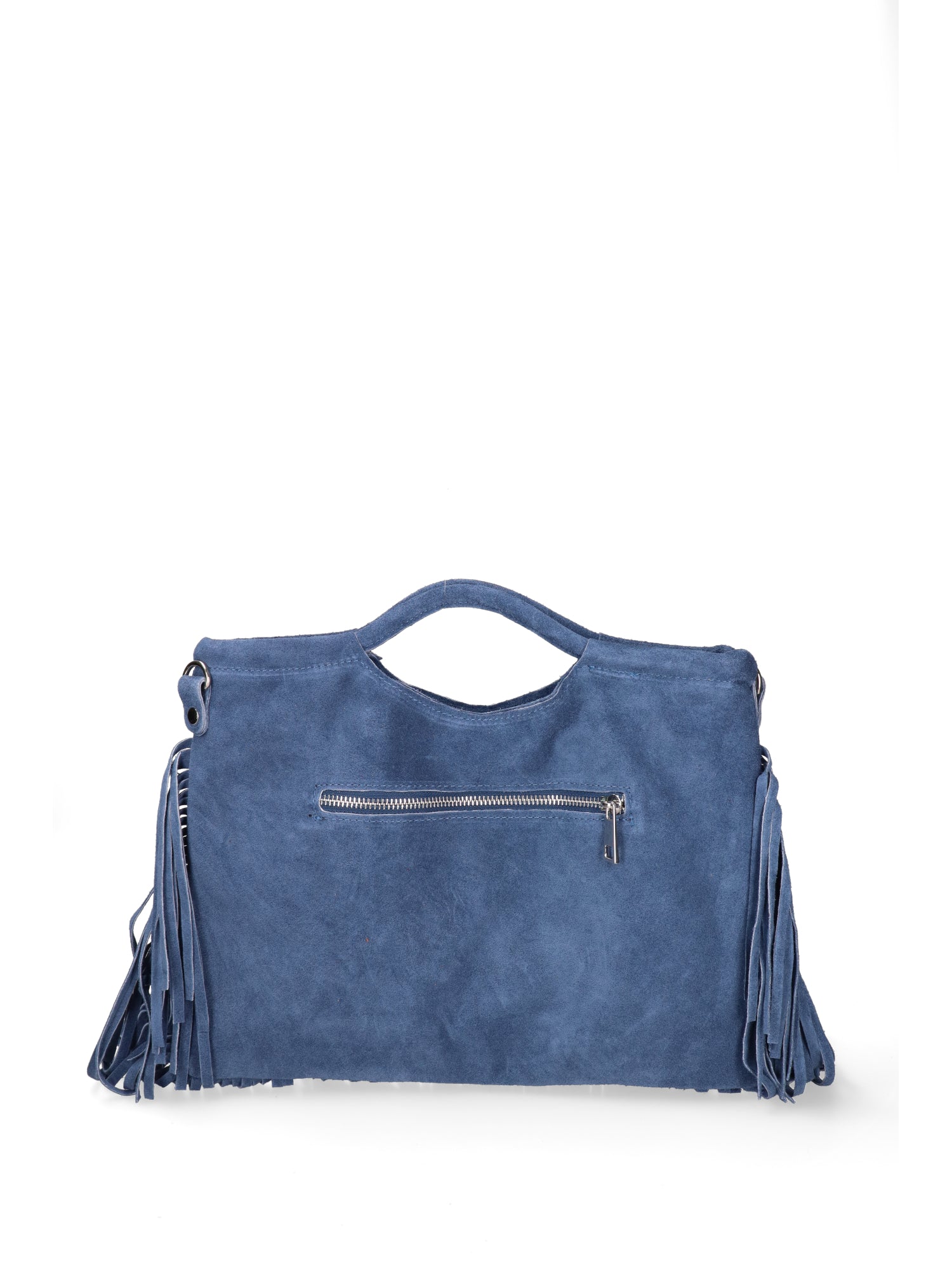 Timeless elegance blends with Italian craftsmanship in this stunning handbag. Crafted from premium suede, this bag is a testament to quality and sophisticated design. The soft, enveloping texture of the suede is enhanced by unique details, such as fringe, which lends movement and a bohemian touch to the look. The interior, lined with a combination of cotton and synthetic materials, offers well-organized and comfortable storage for all your belongings. The zip closure ensures security and practicality. This bag is a true stylish accessory, perfect for completing casual outfits but also adding a touch of sophistication to more sophisticated looks. Made entirely in Italy, it is a symbol of artisanal excellence and a passion for detail. The adjustable 55 cm shoulder strap allows you to wear it comfortably over the shoulder or across the body. To preserve its beauty over time, we recommend cleaning with specific leather products. A lasting investment that will accompany you in style on every occasion.