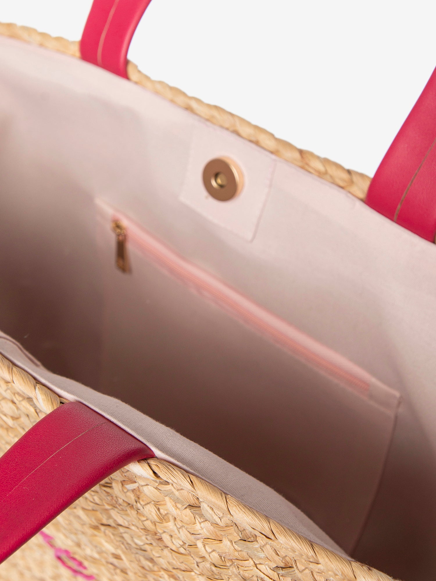 The handles, with a vibrant and eye-catching color, offer a comfortable grip and add a pop of color that enlivens the entire design . Ideal for a casual yet refined look, this bag is perfect for everyday life, a day in the city or an outdoor picnic.