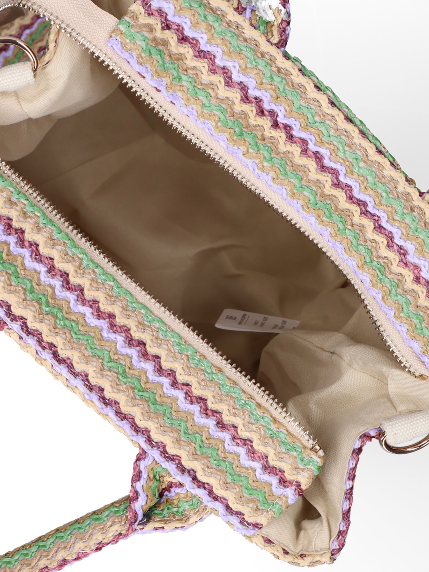 The interior, also in woven straw, adds a touch of originality and lightness. The zip closure ensures safety and practicality , protecting your personal belongings.