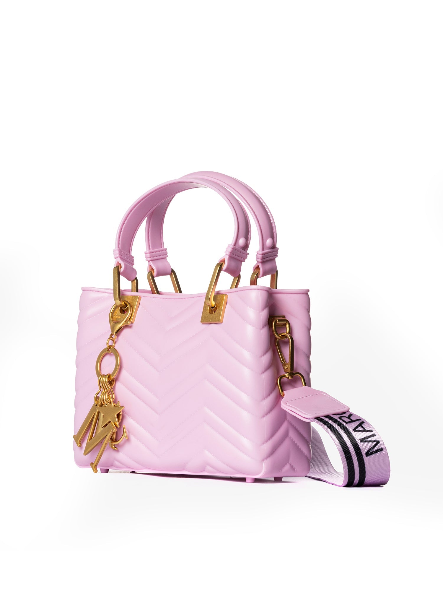 Made entirely of high- quality rubber, both inside and out, this bag offers a unique texture and a modern touch. The sophisticated design is enriched by a quilted workmanship that gives depth and character, while the careful details, such as the practical and secure magnetic closure, enhance its functionality.