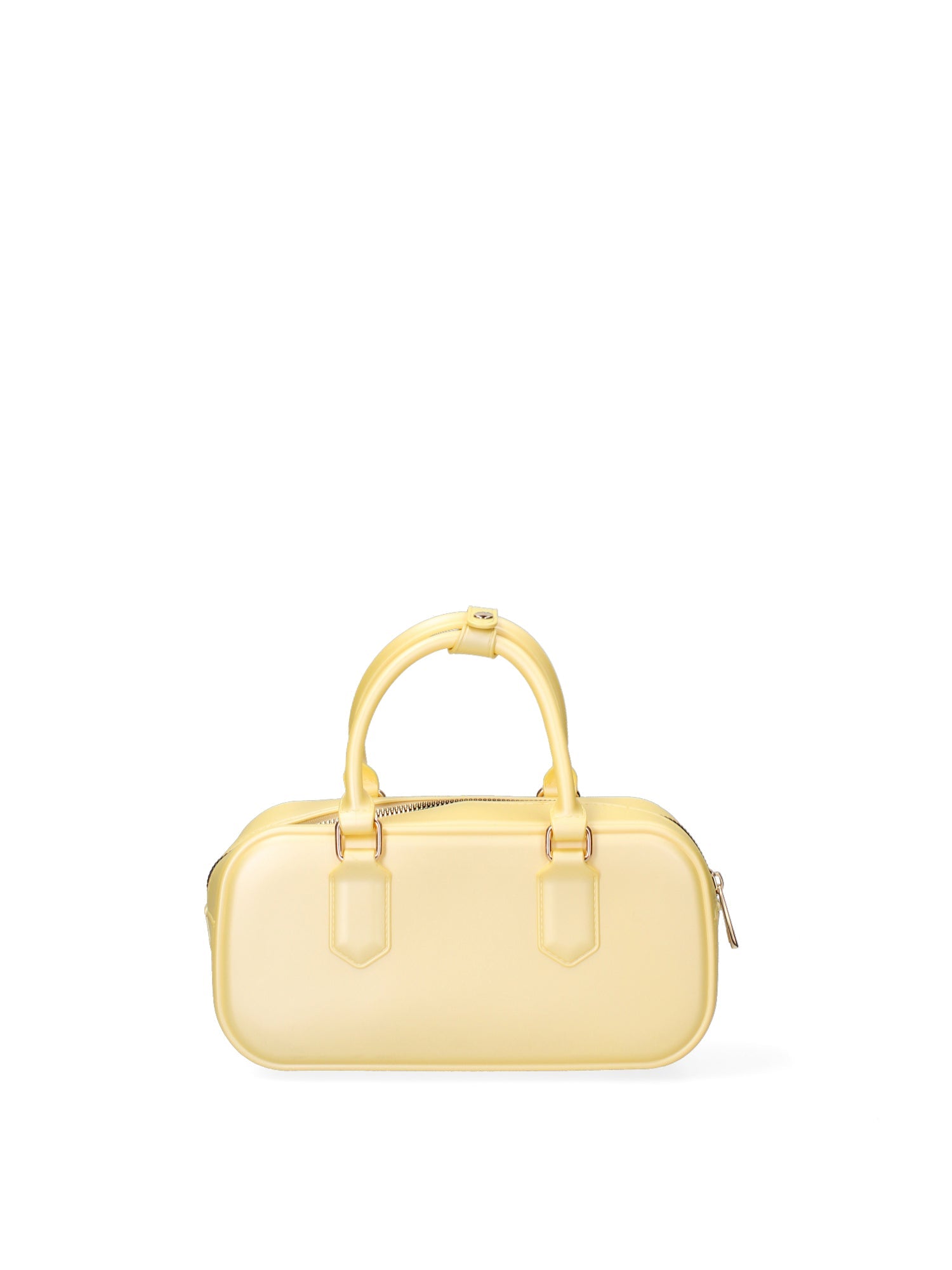 Made entirely of high- quality rubber, both inside and out, this bag offers surprising durability and a unique tactile feel. The compact, structured design , enhanced by a practical and secure zip closure, makes it perfect for carrying essentials with a touch of sophistication.
