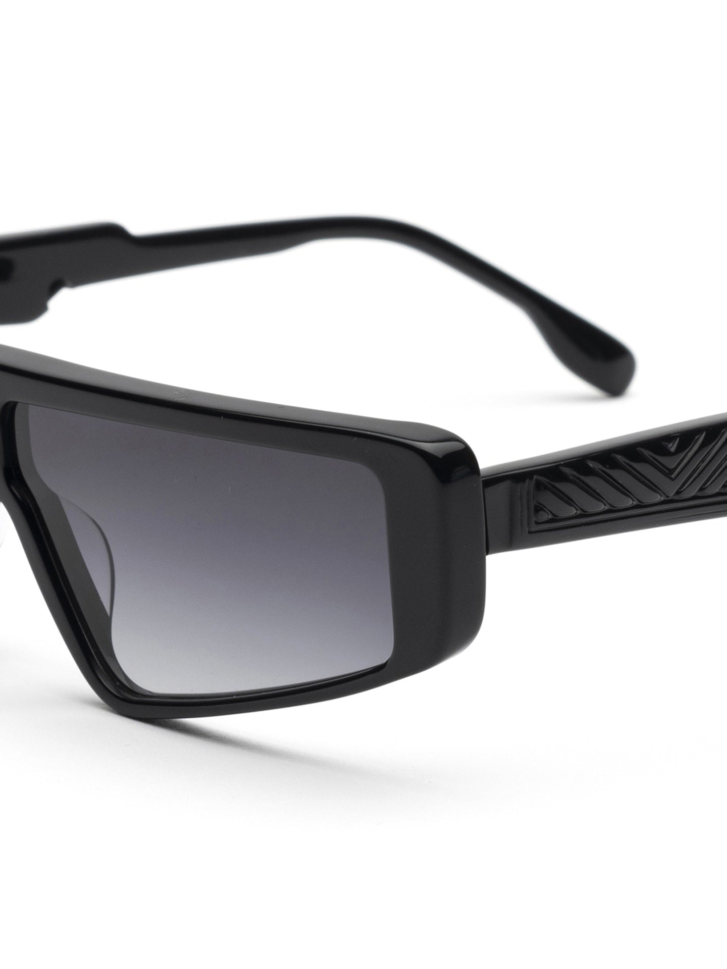 Esprimi la tua personalità con questi occhiali da sole dal design audace e contemporaneo. Realizzati artigianalmente in acetato di cellulosa di alta qualità, offrono un look distintivo e una sensazione di lusso leggero. La montatura, dal colore vibrante e accattivante, incornicia il viso con una forma unica e ricercata, perfetta per chi ama distinguersi.