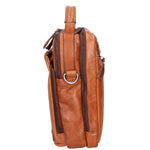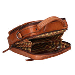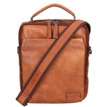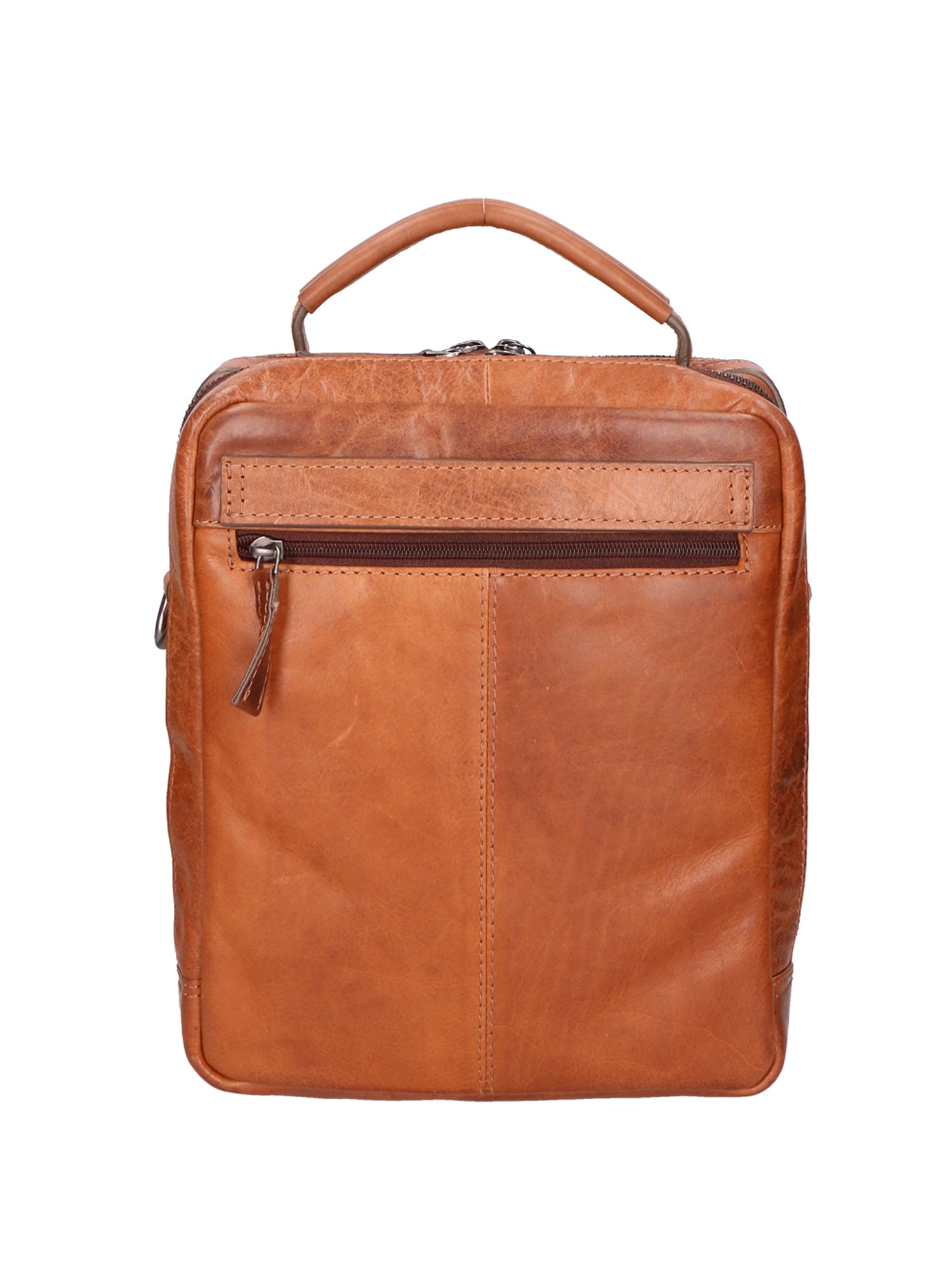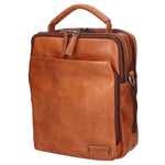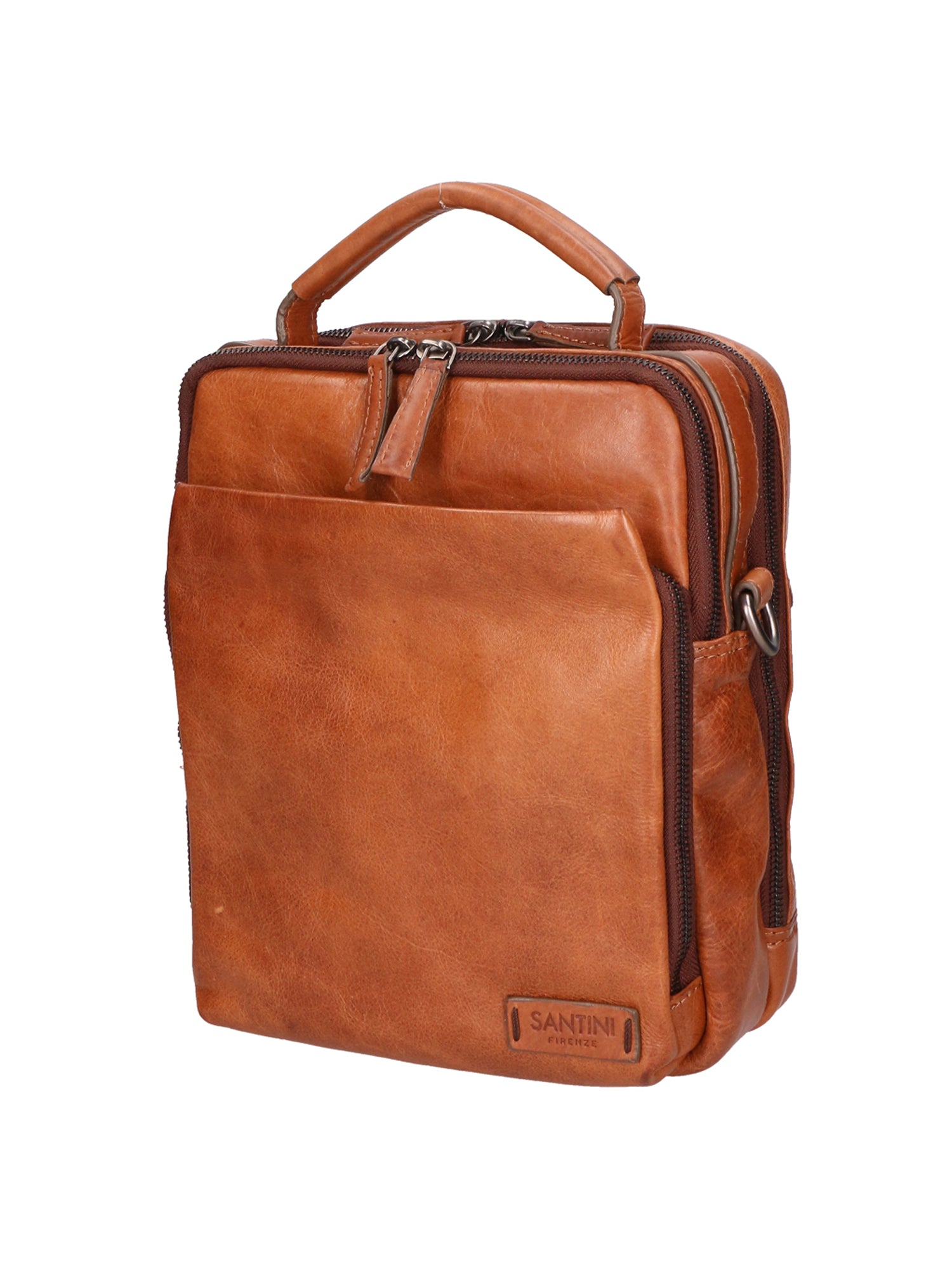 Men's leather handbag with a double zip opening and a removable and adjustable shoulder strap. Handcrafted from genuine oiled calfskin.