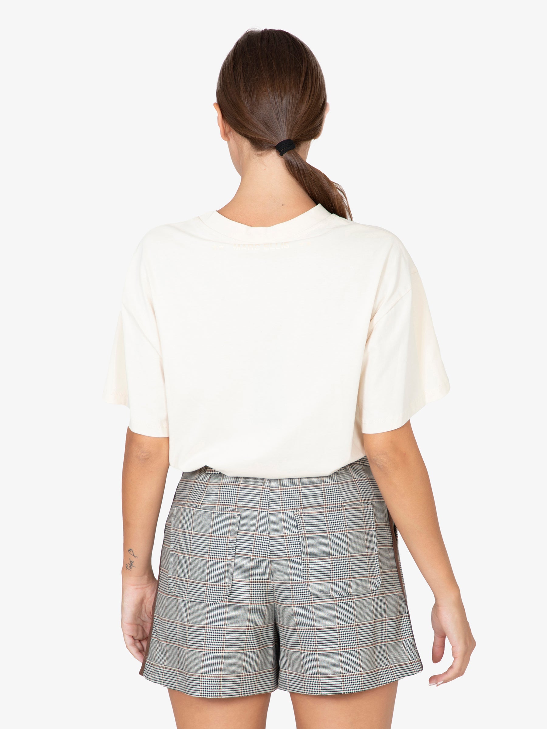 Il design minimalista è arricchito da un dettaglio distintivo: una grafica iconica che aggiunge un tocco di personalità e raffinatezza. La sua versatilità la rende un capo essenziale per qualsiasi guardaroba, facile da abbinare a jeans, gonne o pantaloni sartoriali.