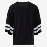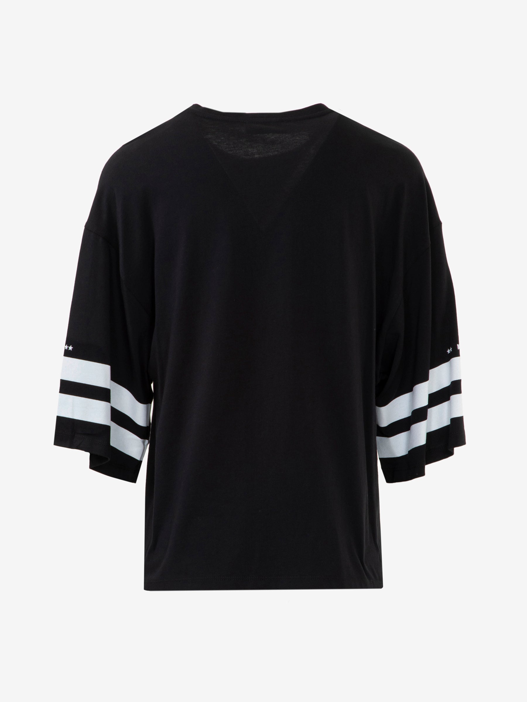 Il design distintivo, caratterizzato da una grande stampa numerica, cattura lo sguardo e aggiunge un tocco di originalità al tuo outfit. I dettagli sportivi, come le maniche corte con bordi a contrasto, conferiscono un'allure dinamica e moderna.