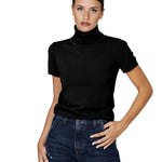 Eleva il tuo guardaroba con questa sofisticata t-shirt a collo alto, un capo versatile che unisce comfort e stile senza tempo. Realizzata con un mix di viscosa, poliestere e poliammide, questa t-shirt offre una sensazione morbida e fluida sulla pelle, garantendo al contempo una silhouette elegante e ben definita.