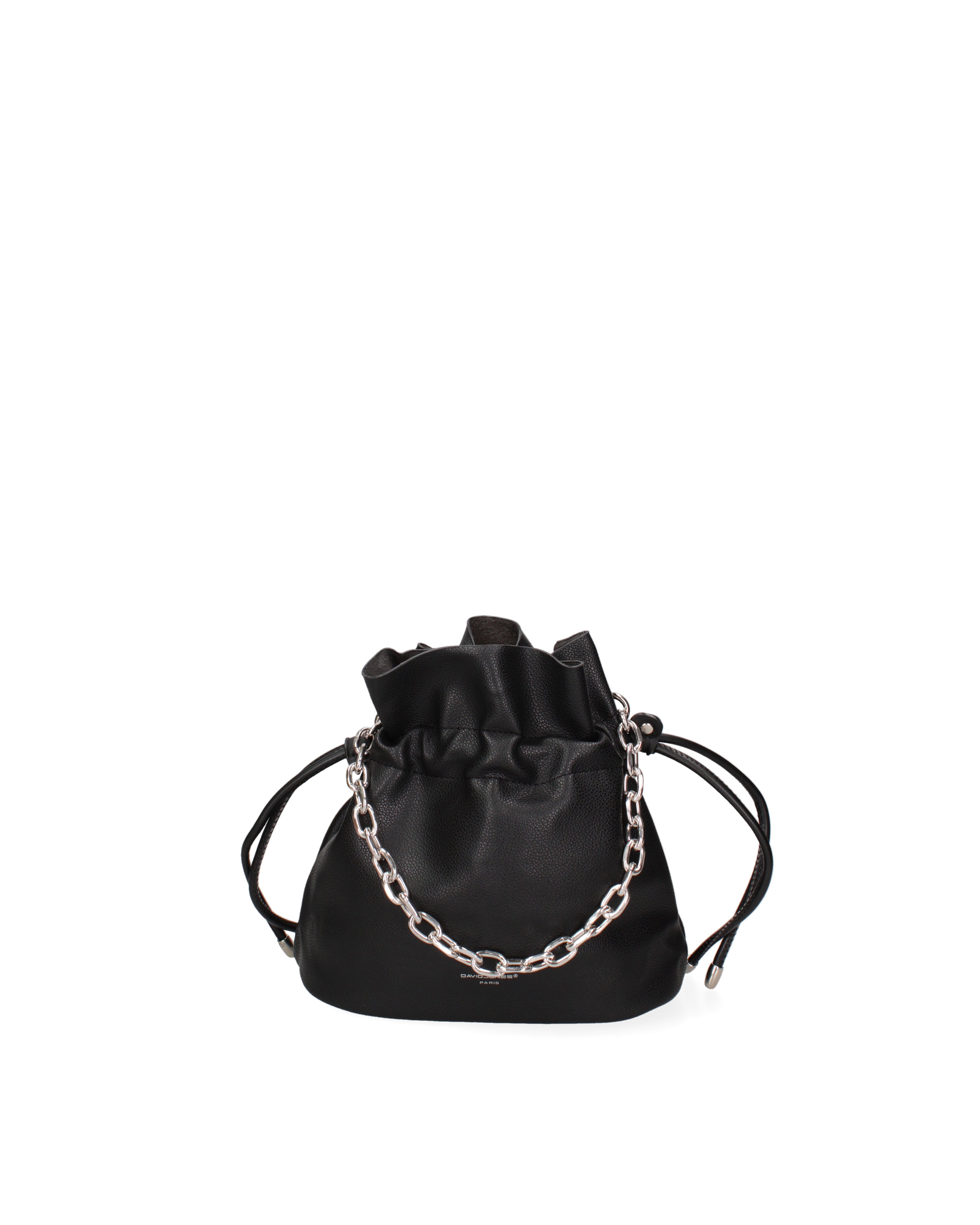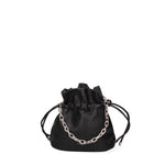 Women's bucket bag. Zip closure. One interior pocket is zipped and one is open. There are no exterior pockets. The shoulder strap is adjustable and removable. The handle is chain. There are one interior compartment. The exterior material is PVC. The interior is lined with polyester. Dimensions: 22 x 24 x 12 cm. Fashion product