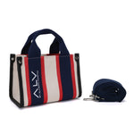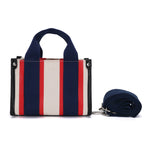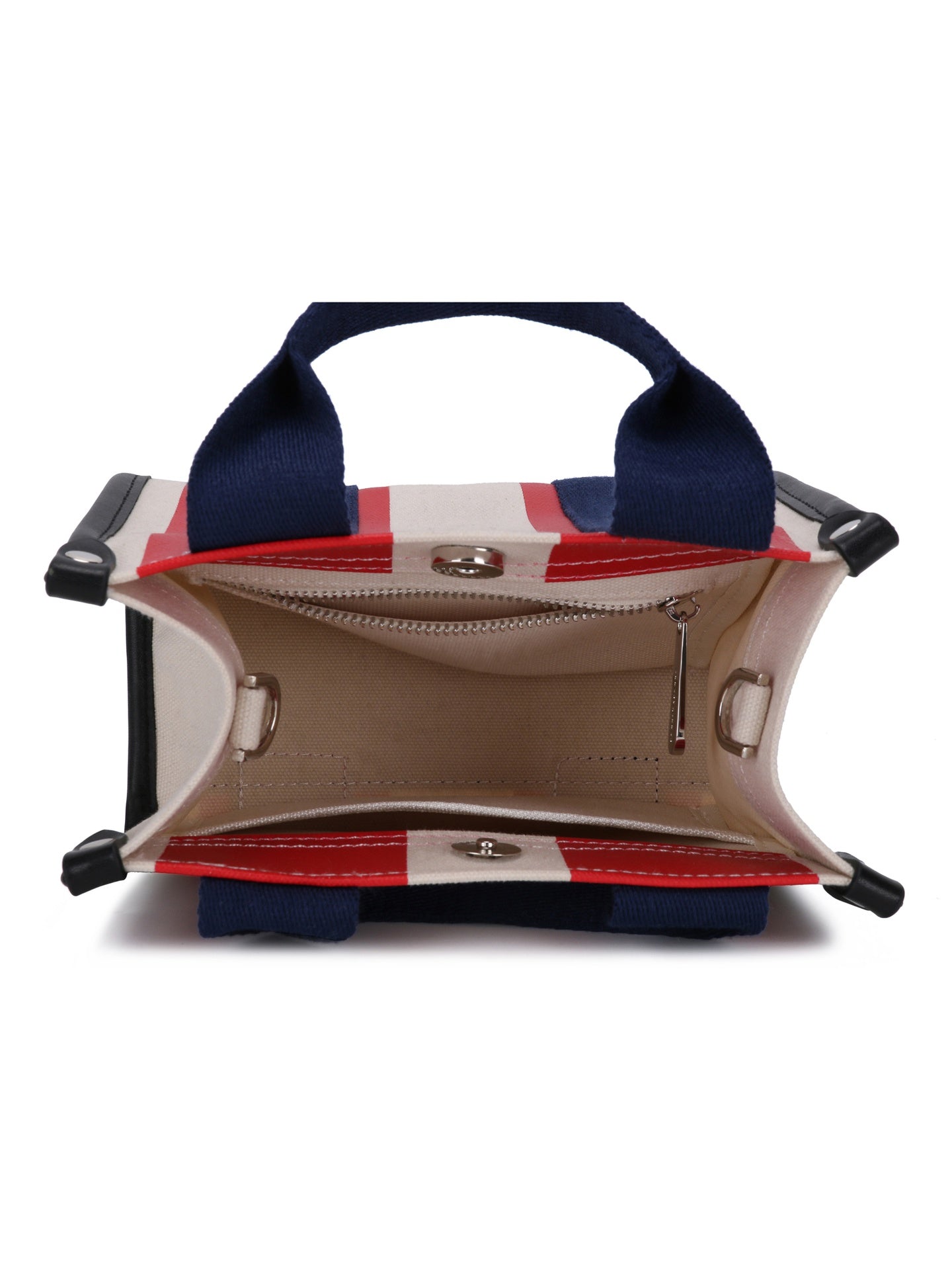 Women's handbag. It closes with a magnetic button. There are two internal zip pockets and two open pockets. There are no external pockets. The shoulder strap is adjustable and removable and made of fabric. The handle is fabric. There are one internal compartment. The outer material is 100% nylon. The interior is 100% polyester. Dimensions: 20x14x11 cm. Fashion product
