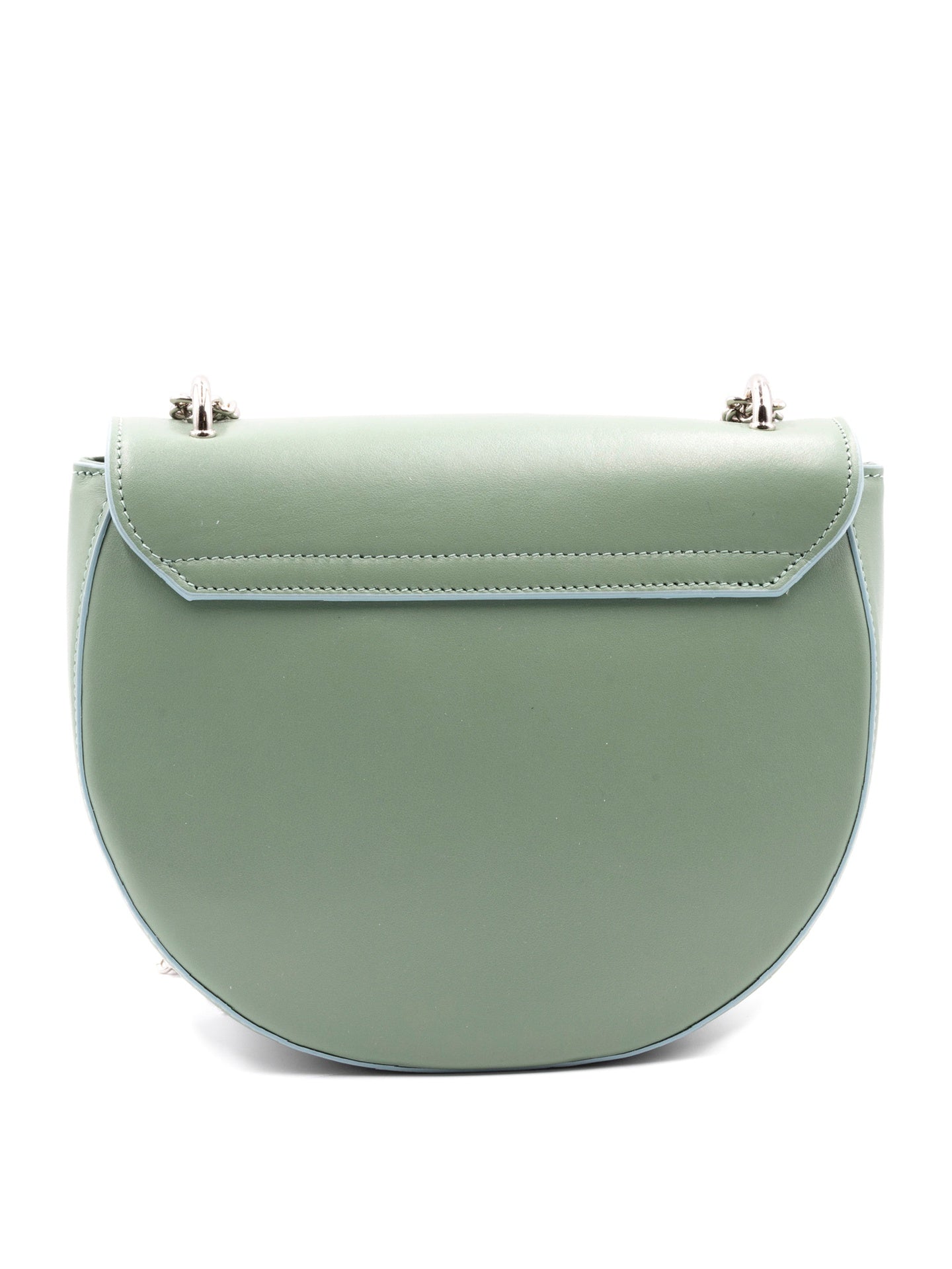 La sua forma arrotondata e la texture delicata della pelle conferiscono un fascino senza tempo, mentre la tracolla a catena aggiunge un tocco moderno e raffinato. L'interno, foderato in poliestere resistente, offre spazio sufficiente per gli essenziali di tutti i giorni, mantenendoli organizzati e al sicuro.