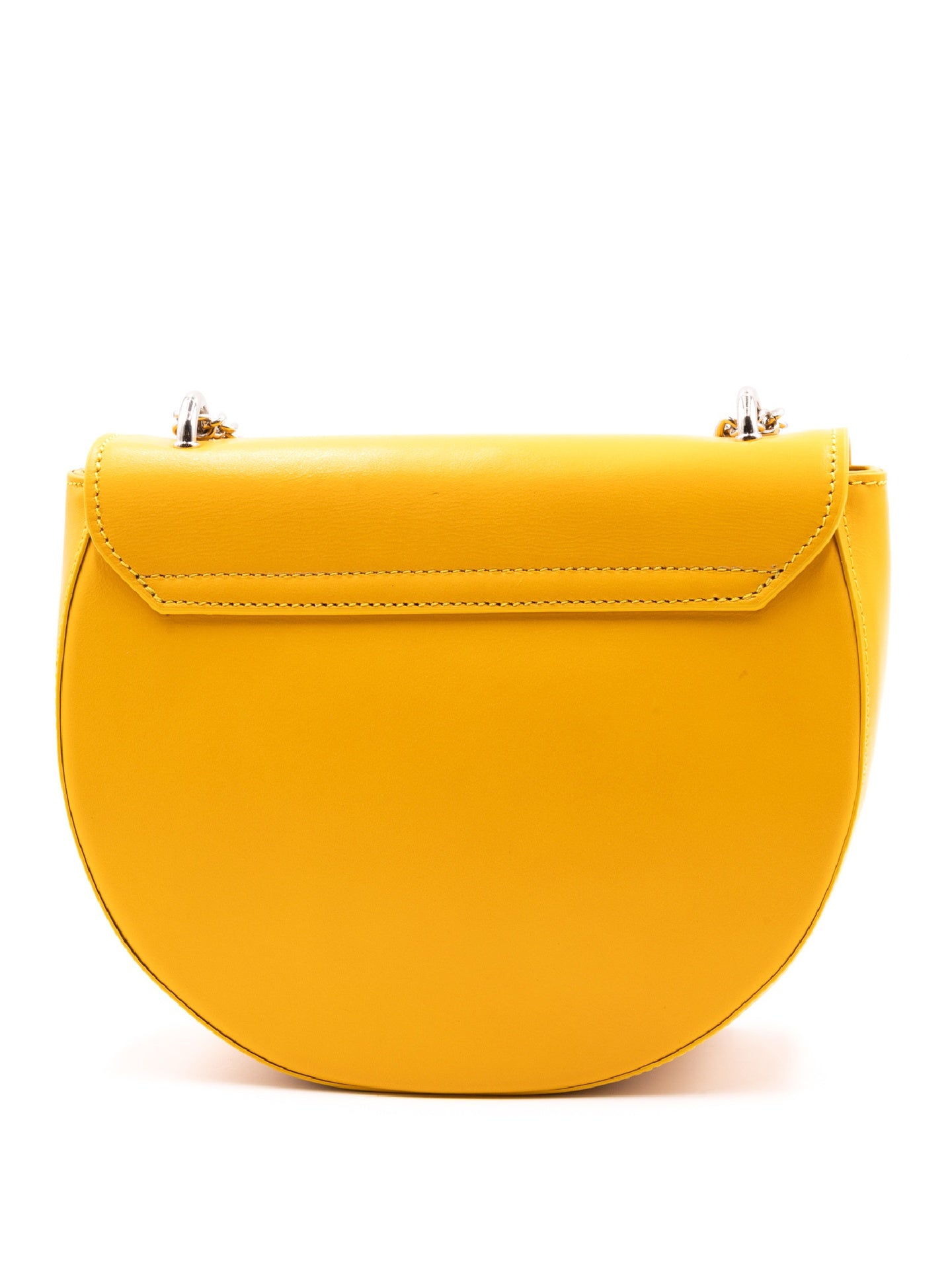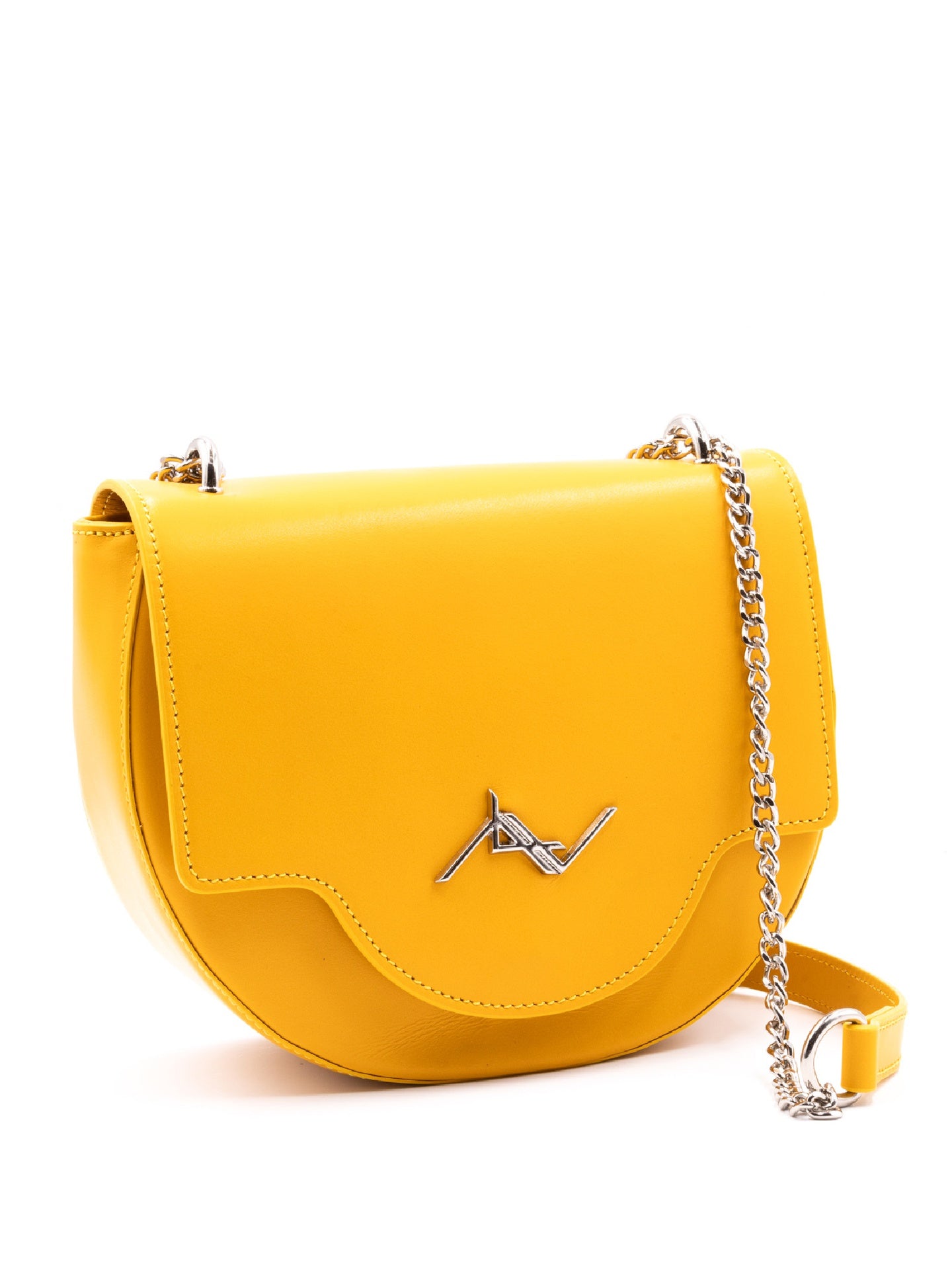 La sua forma arrotondata e la texture delicata della pelle conferiscono un fascino senza tempo, mentre la tracolla a catena aggiunge un tocco moderno e raffinato. L'interno, foderato in poliestere resistente, offre spazio sufficiente per gli essenziali di tutti i giorni, mantenendoli organizzati e al sicuro.