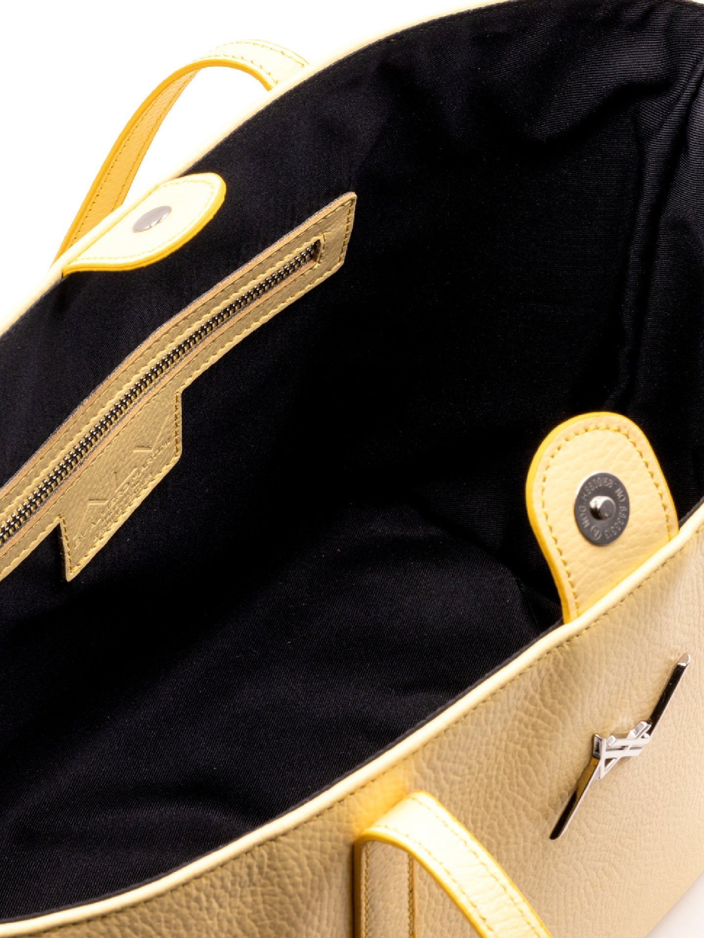 La pelle di alta qualità, lavorata con cura artigianale, conferisce alla borsa una texture raffinata e una durata eccezionale. L'interno, foderato in resistente poliestere, offre un ampio spazio per organizzare con facilità tutti i tuoi effetti personali.