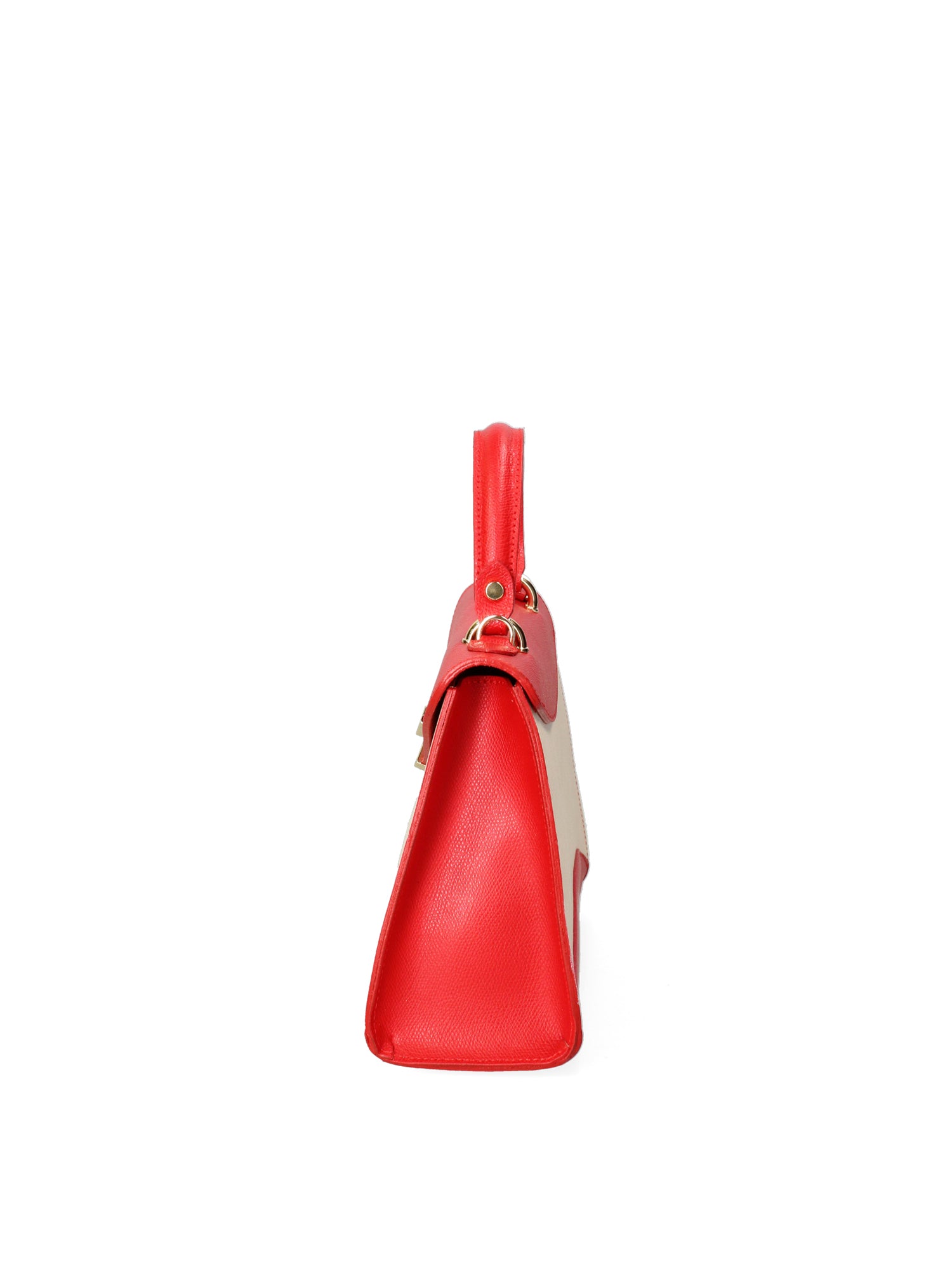 Auriga Chic Women's Handbag Genuine Leather 8924-BEIGE+RED