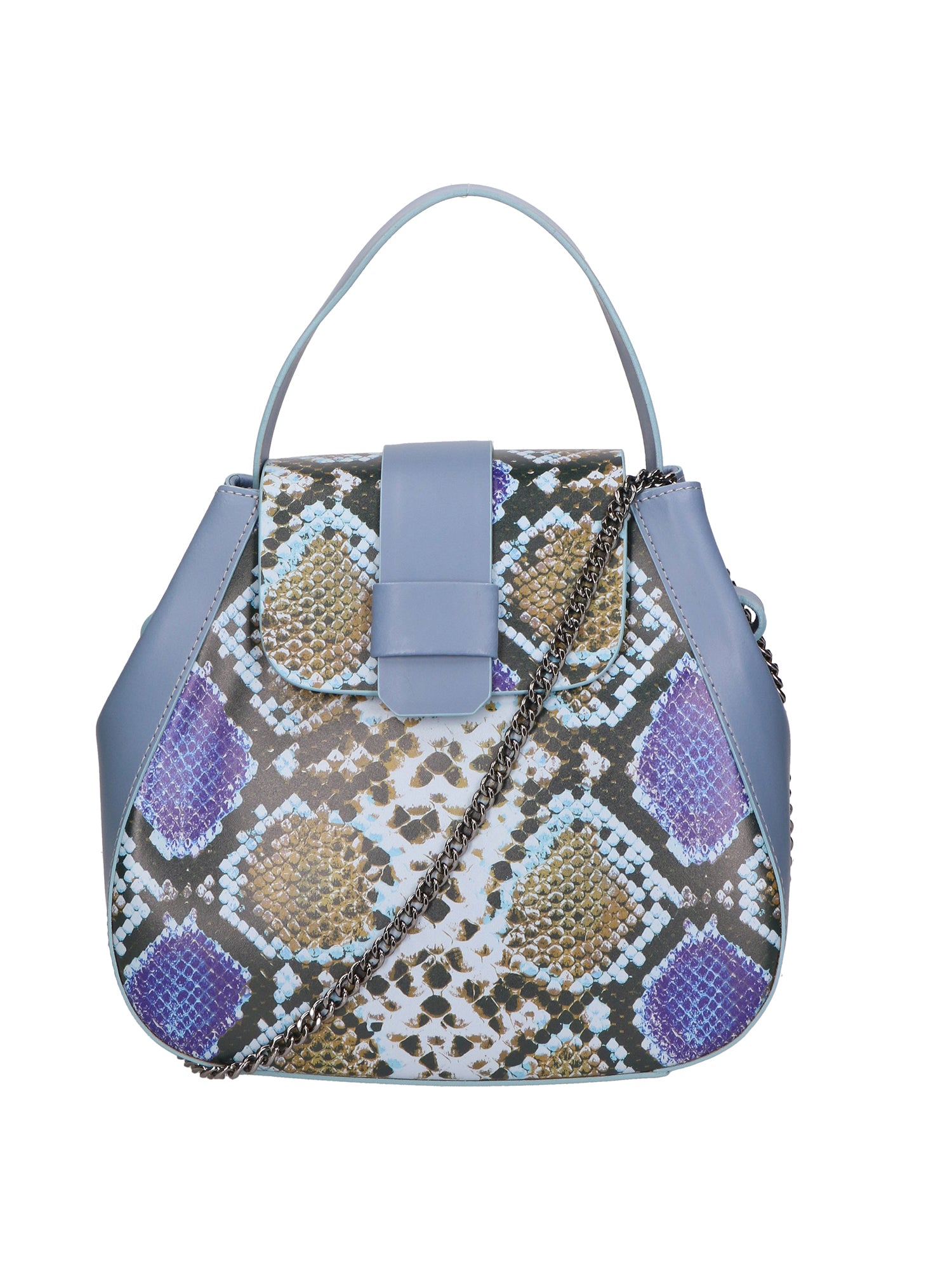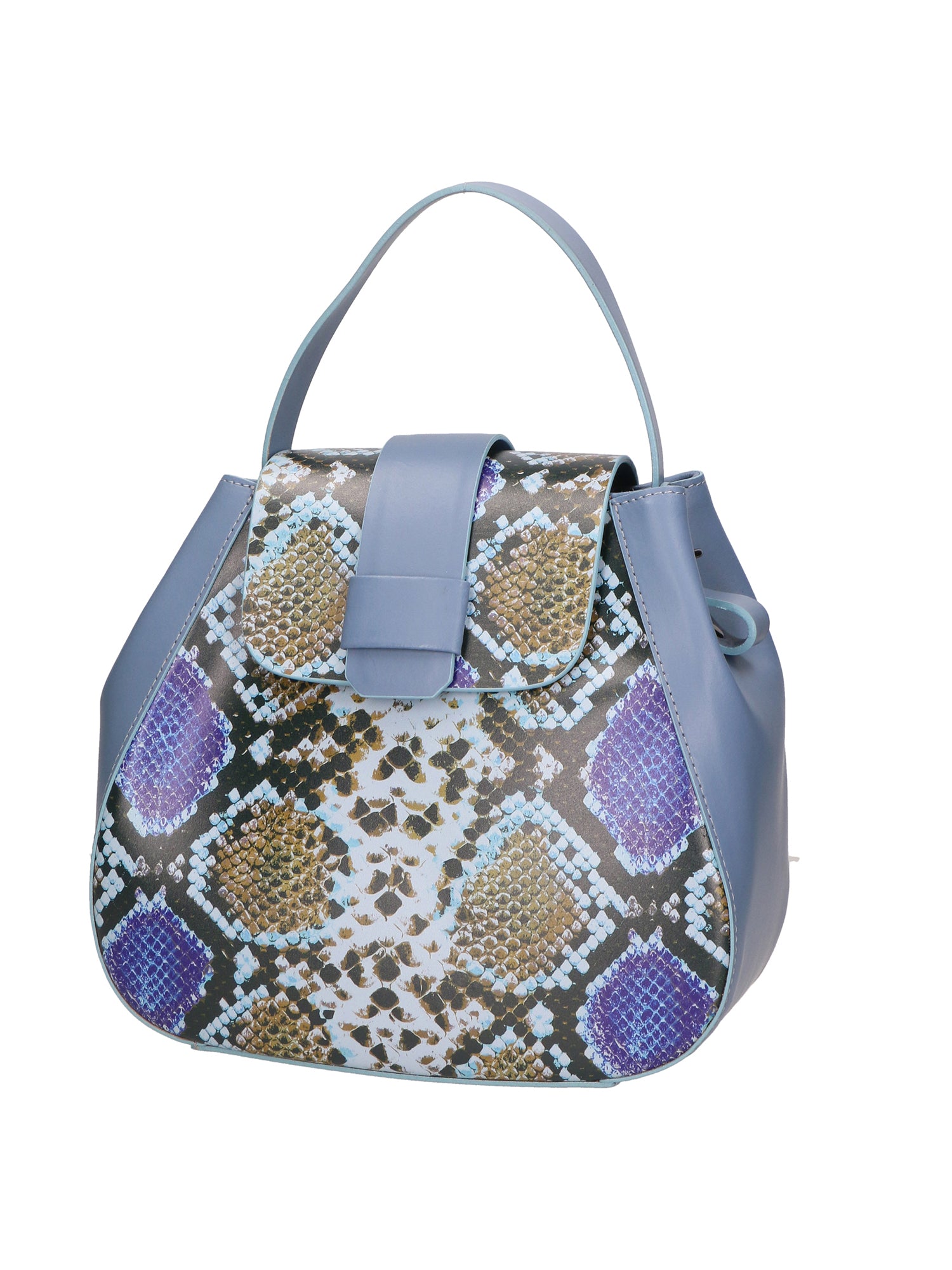 Women's handbag. The closure is with a magnetic button. The internal pockets are one with a zip. The external pockets are absent. The shoulder strap is removable in leather. The handle is in leather. The internal compartments are one. The external material is real wrinkled leather. Internally it is lined in 70% cotton - 30% polyester fabric. Measurements: 25x22x12 cm. Made in Italy