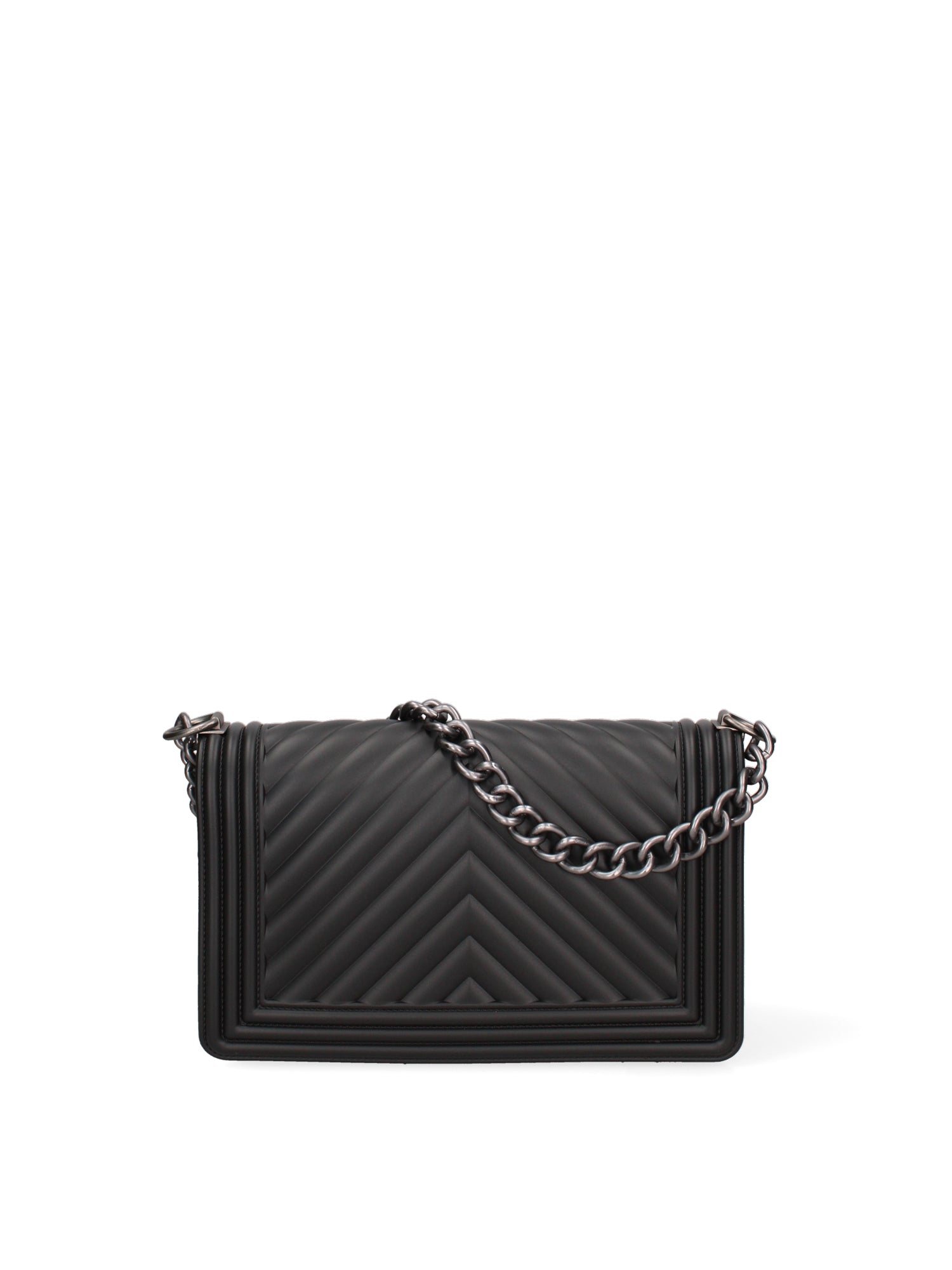 Women's handbag. The closure is with a swivel. The internal pockets are absent. The external pockets are absent. The shoulder strap is adjustable and removable in fabric. The handle is chain. The internal compartments are one. The external material is PVC. Internally it is PVC. Measurements: 15x25x8 cm. Fashion product