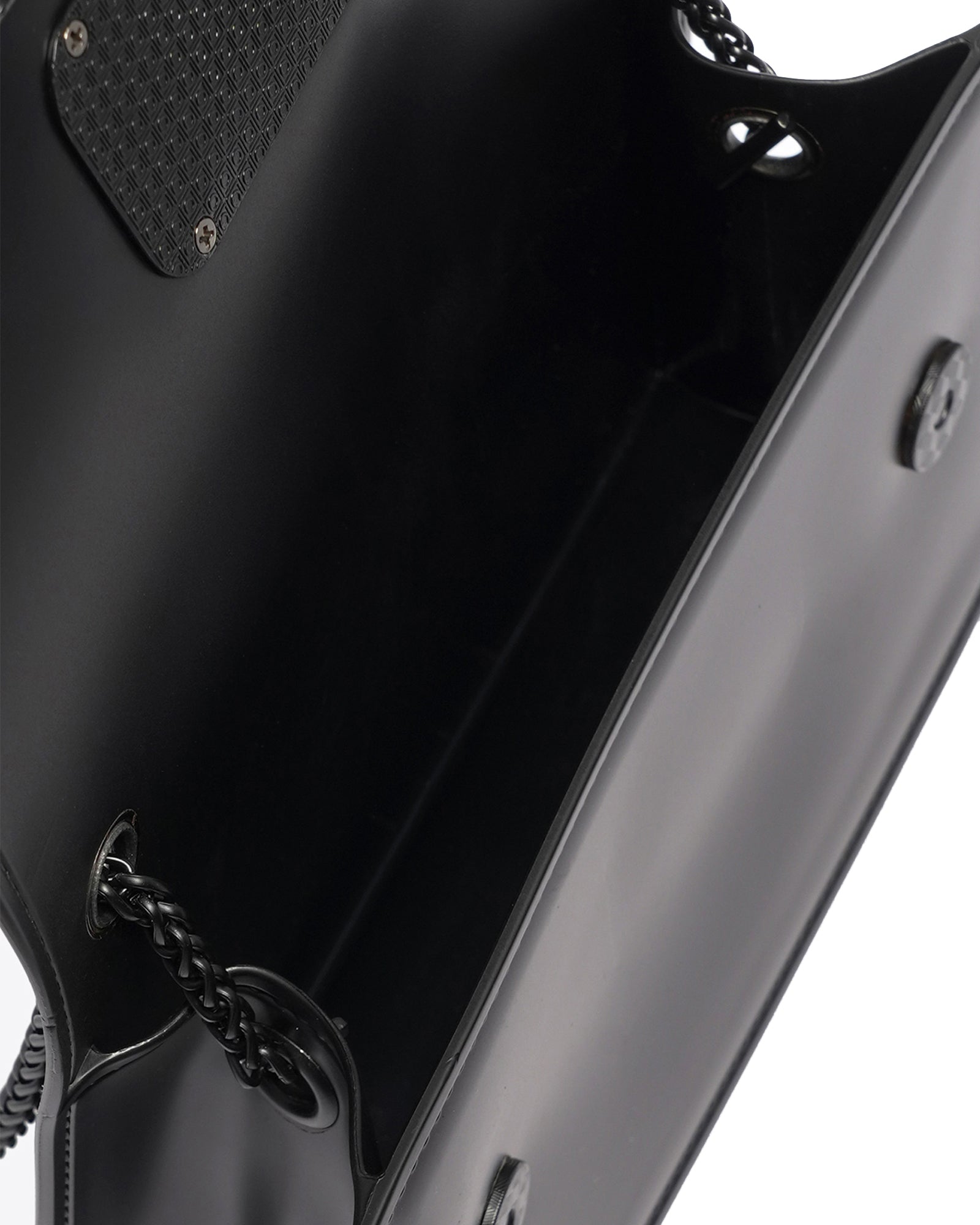 Women's handbag. The closure is with magnetic button. The internal pockets are absent. The external pockets are absent. The shoulder strap is chain. The handle is absent. The internal compartments are one. The external material is PVC. Internally it is PVC. Measurements: 20x13x7.6 cm. Fashion product