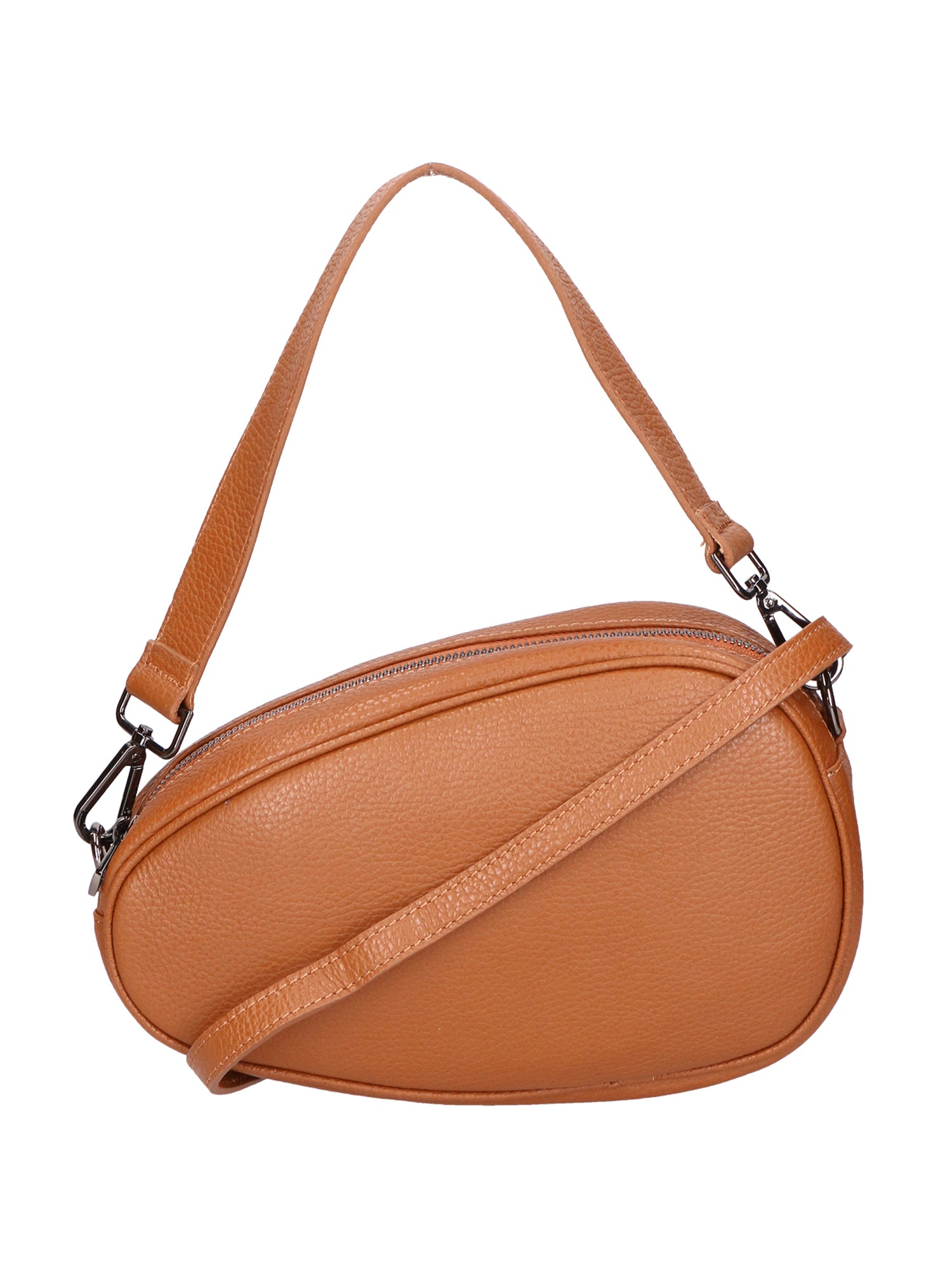 Women's Single Compartment Dollar Leather Shoulder Bag. Features a removable handle and shoulder strap. Italian handcrafted in genuine leather. Made in Italy.