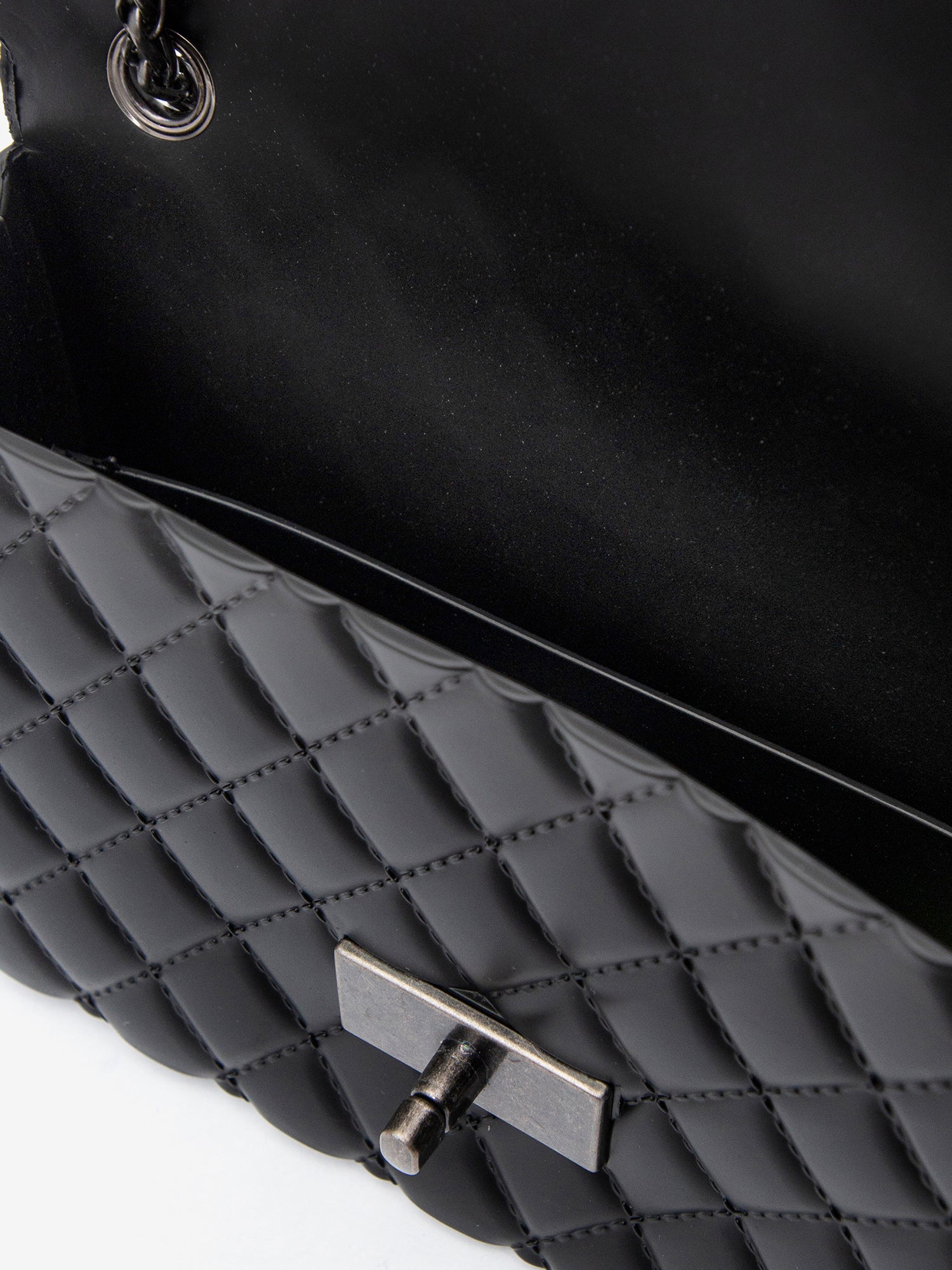 Rubber, an unexpected but incredibly versatile material, gives the bag a unique resistance and lightness, making it perfect for facing every day in style . The interior, covered in the same material as the exterior, offers a functional and easy-to-clean space.