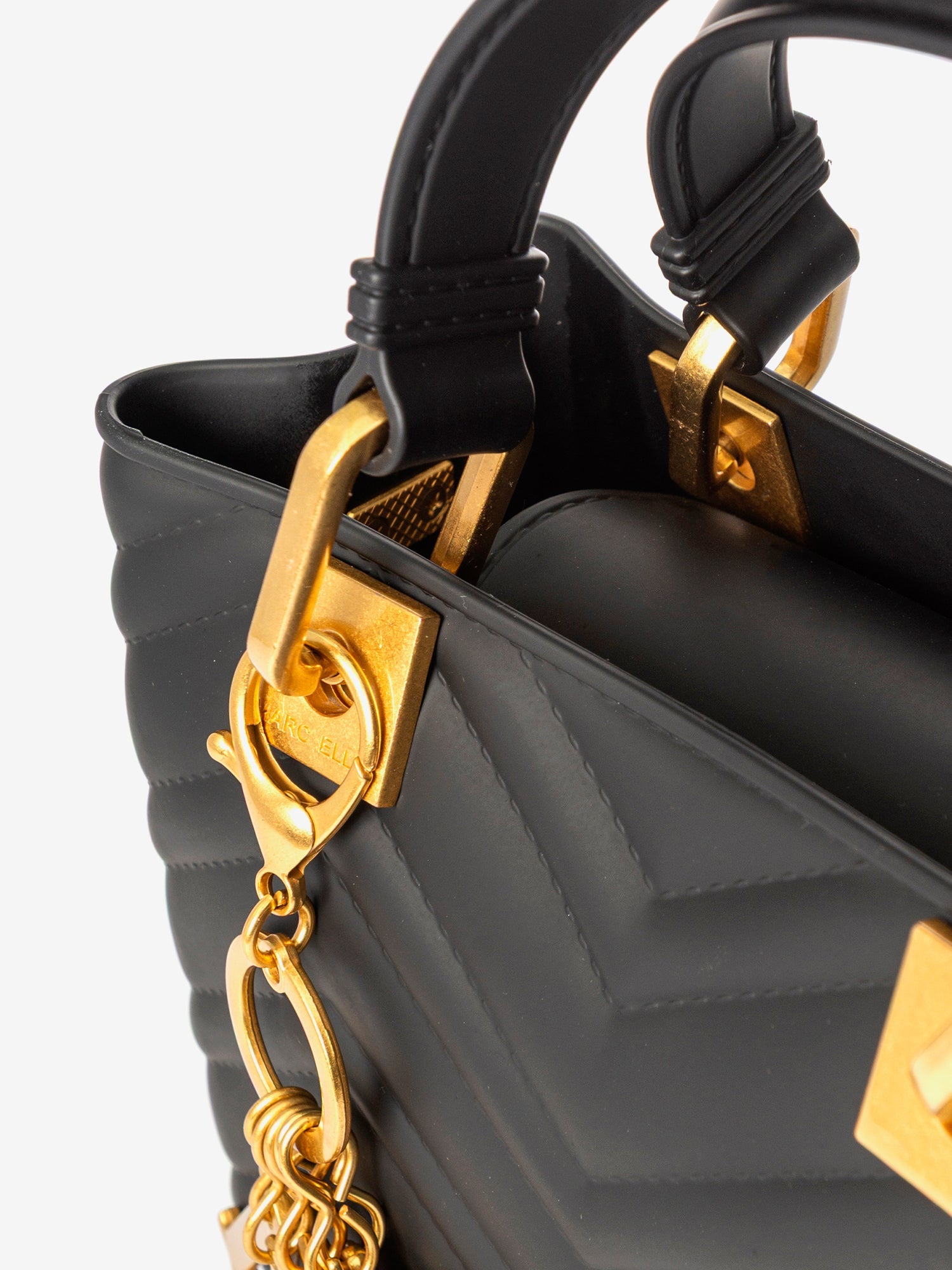 Made entirely of high- quality rubber, both inside and out, this bag offers a unique texture and a modern touch. The sophisticated design is enriched by a quilted workmanship that gives depth and character, while the careful details, such as the practical and secure magnetic closure, enhance its functionality.