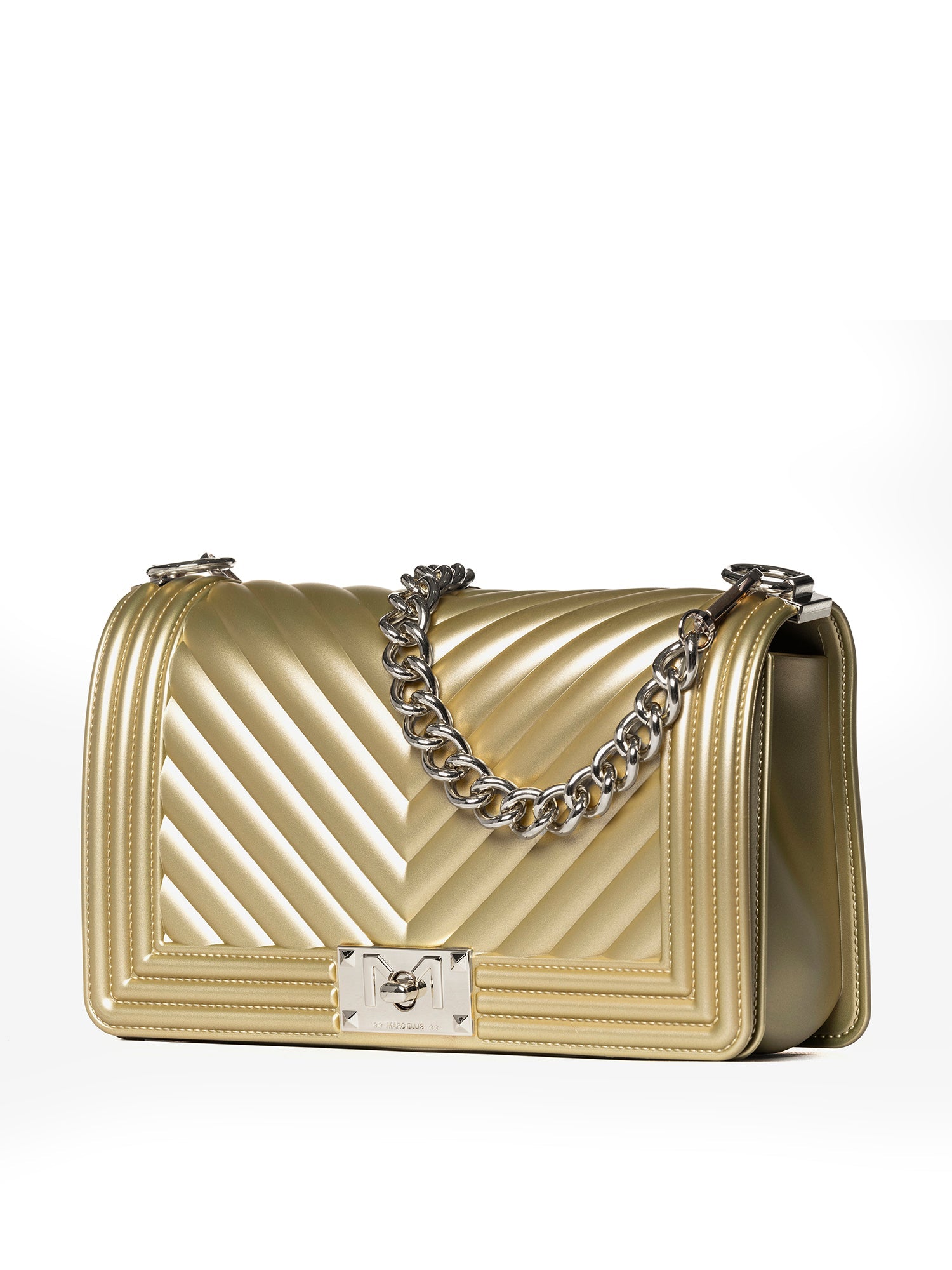 The gold chain shoulder strap lends a luxurious aura, making it perfect for completing casual outfits or adding a bold touch to more formal looks. This bag is not just a fashion accessory, but a style statement.