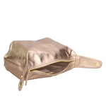 Mini women's handbag with a single compartment. Features a removable chain shoulder strap. Handcrafted in genuine laminated dollar leather. Made in Italy.