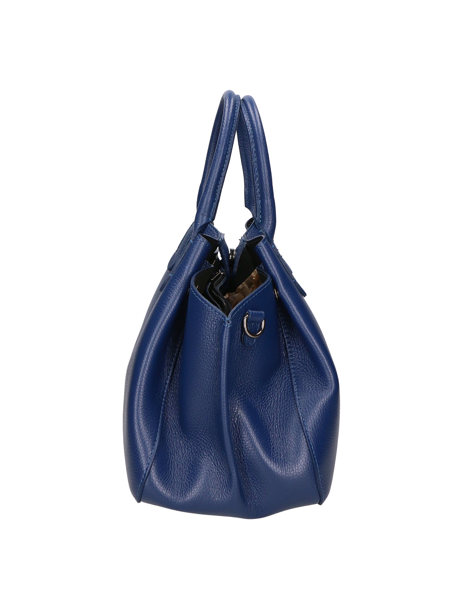 Women's handbag with side clips to adjust the width. Equipped with a removable shoulder strap. Handcrafted in genuine Italian leather. Made in Italy.