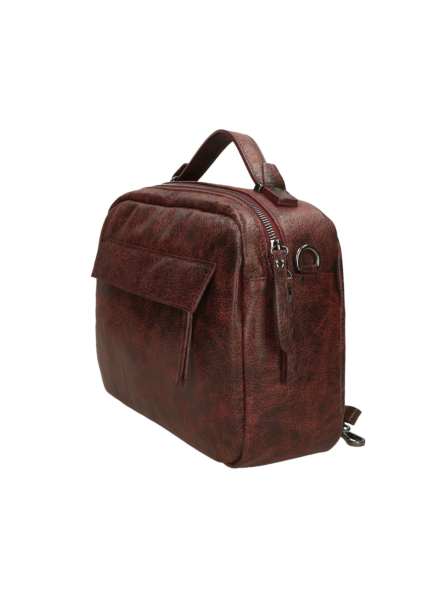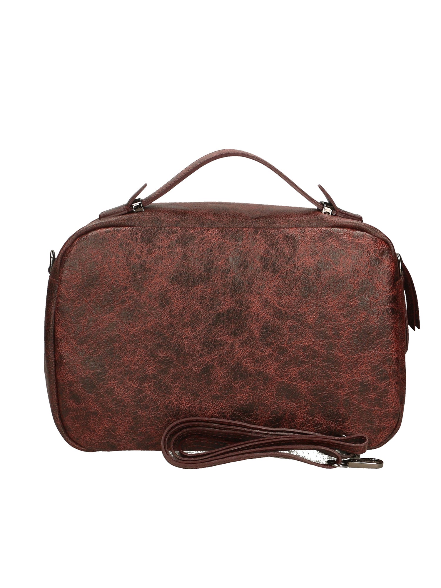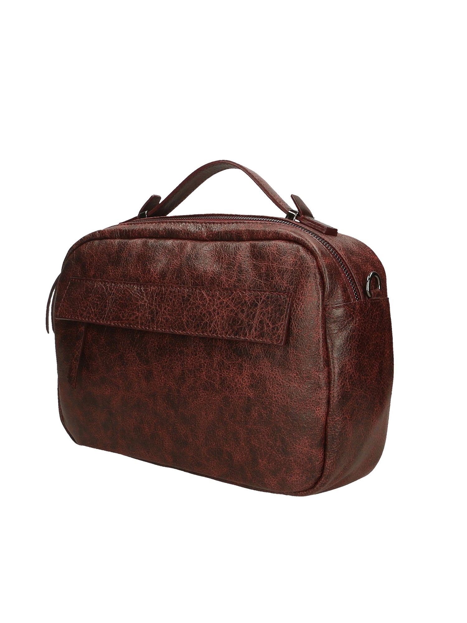 Unisex handbag in genuine leather with a distressed finish, with a removable, adjustable shoulder strap. Lined interior, one zip pocket. Italian craftsmanship. Made in Italy.