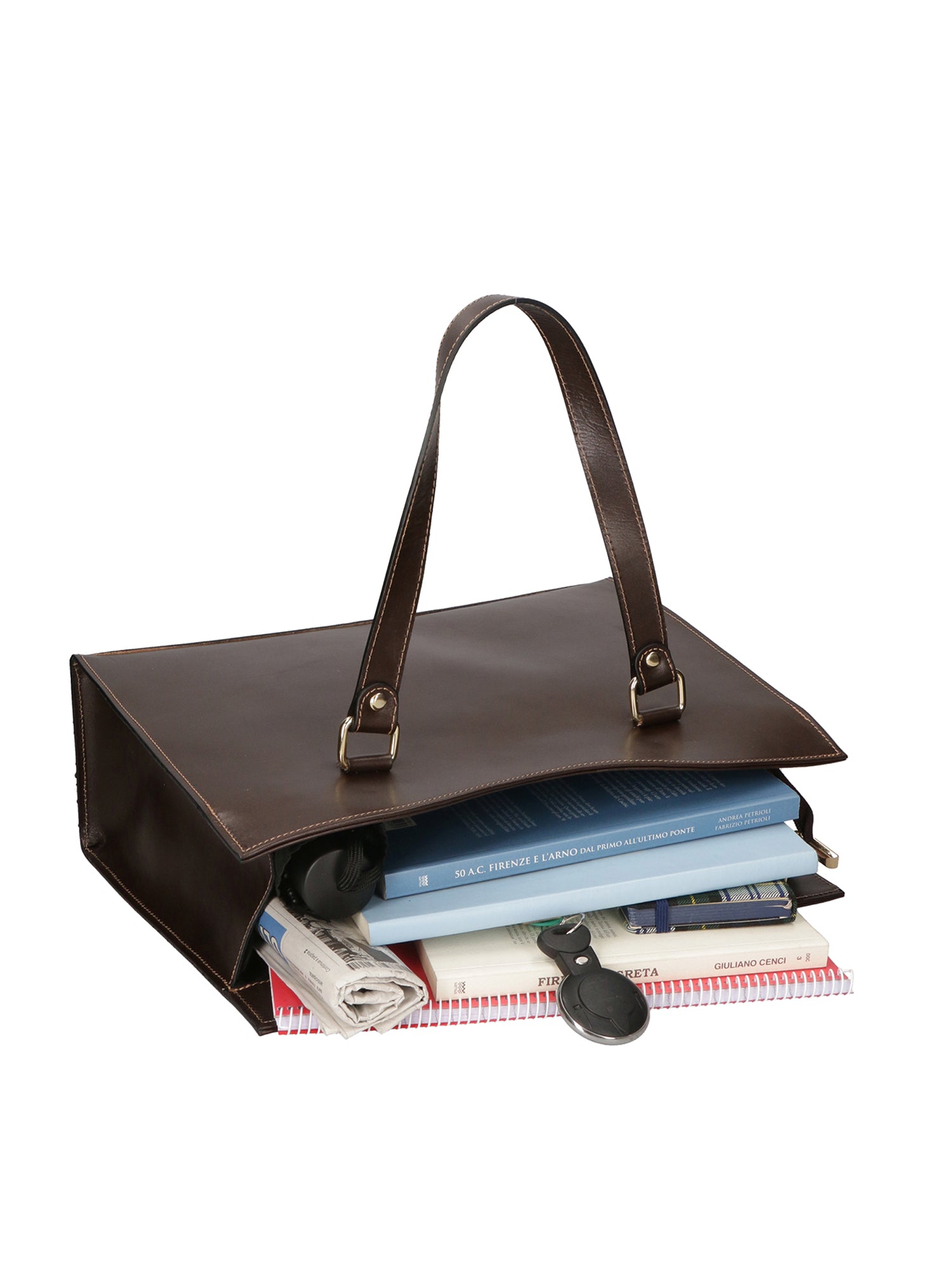 Women's double-compartment handbag with double handle. Handcrafted in genuine Italian cowhide leather. Made in Italy.