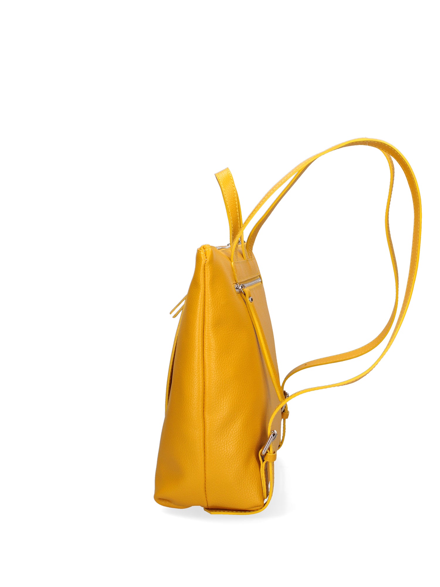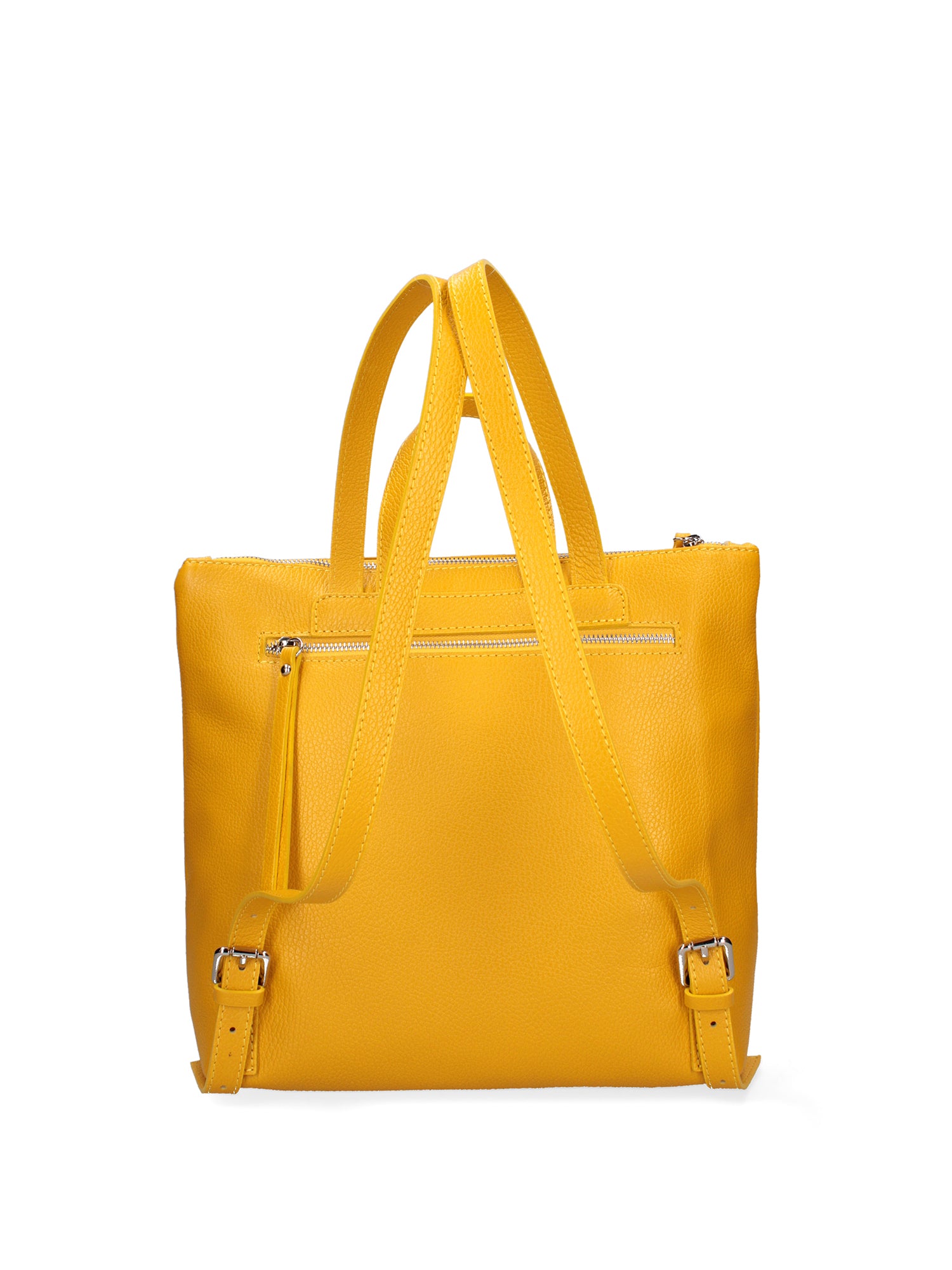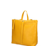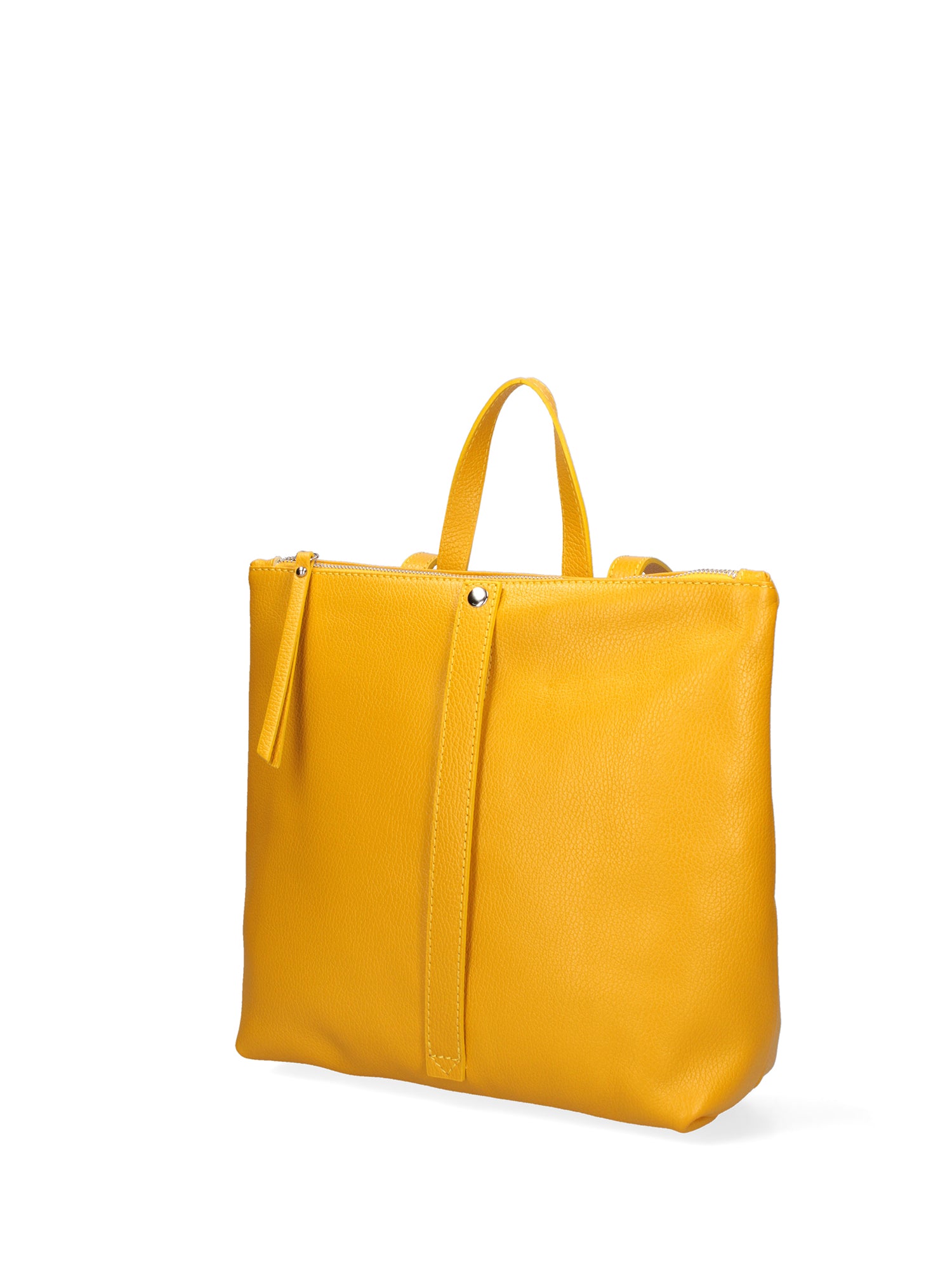 Women's handbag that converts into a backpack. It has a zip closure. There are one internal zip pocket and two open pockets. There is a front zip pocket and a back zip pocket. There is no shoulder strap. The handle is made of leather. There is one internal compartment. The exterior is made of genuine cowhide leather. The interior is lined with 70% cotton - 30% polyester fabric. Dimensions: 30x30x12 cm. Made in Italy