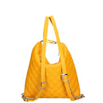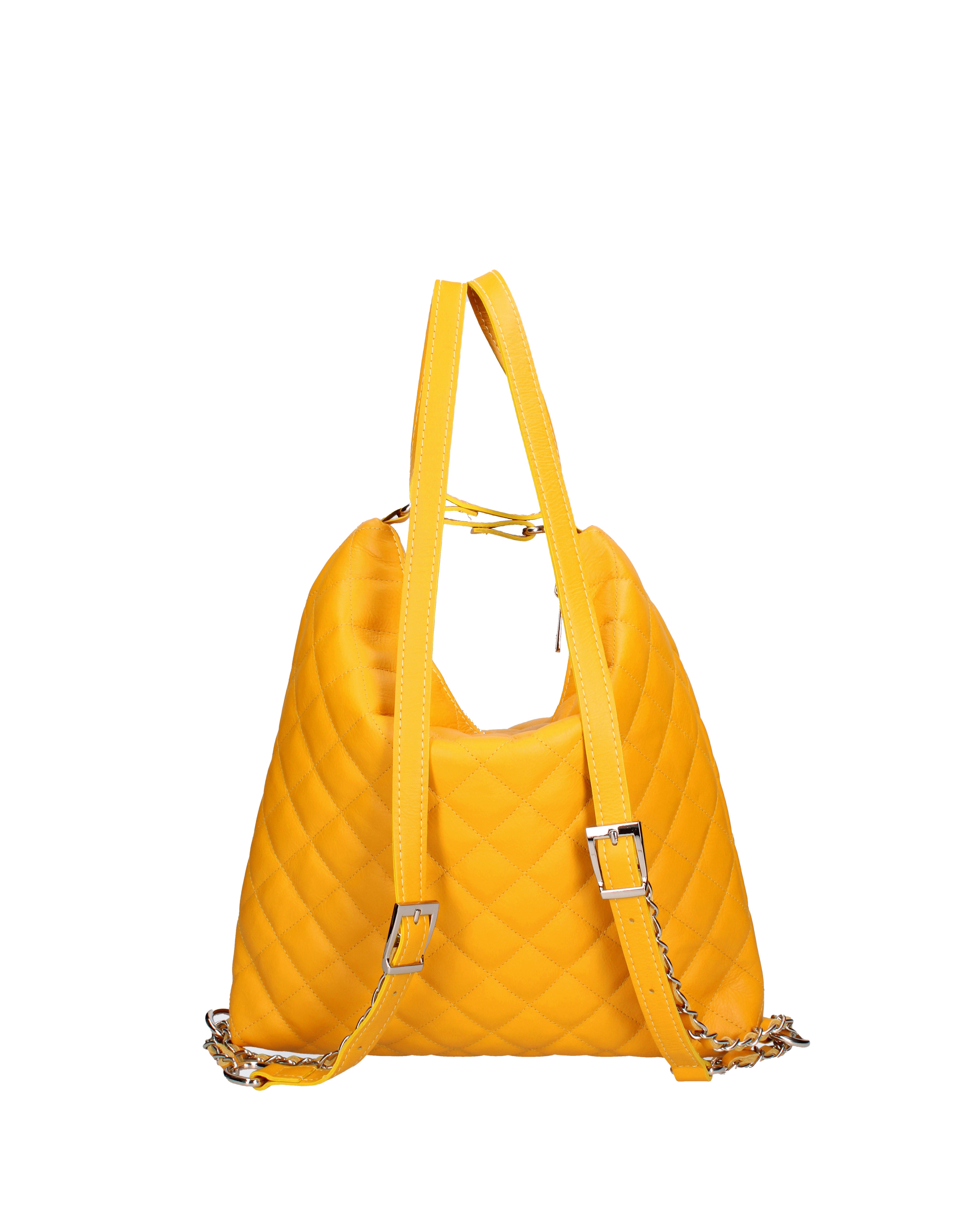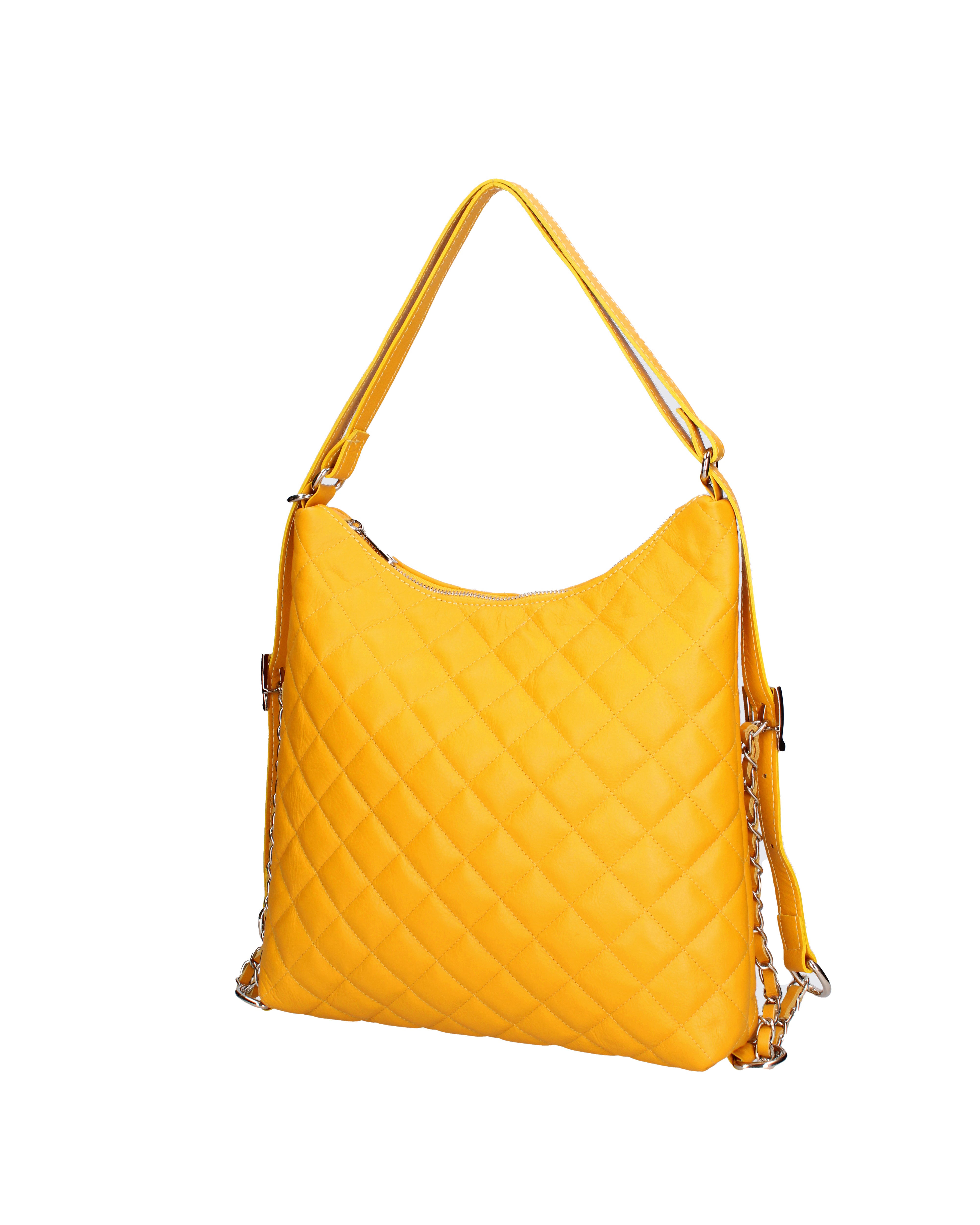 Women's convertible shoulder bag/backpack. Zip closure. One internal zip pocket and two open pockets. No external pockets. No shoulder strap. Leather handle. One internal compartment. The exterior is made of genuine quilted sauvage leather. The interior is lined with 70% cotton - 30% polyester. Dimensions: 30x31x6 cm. Made in Italy.