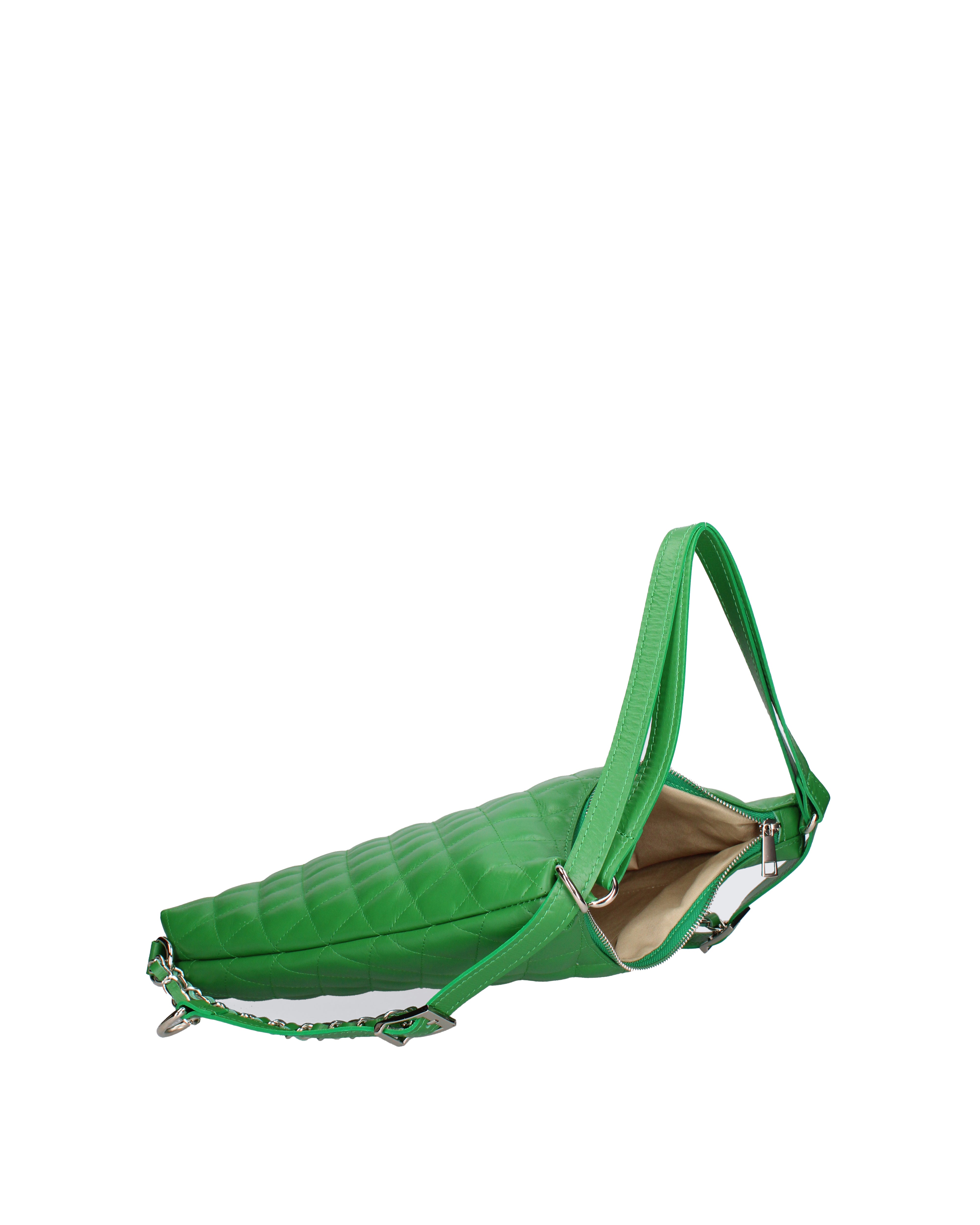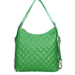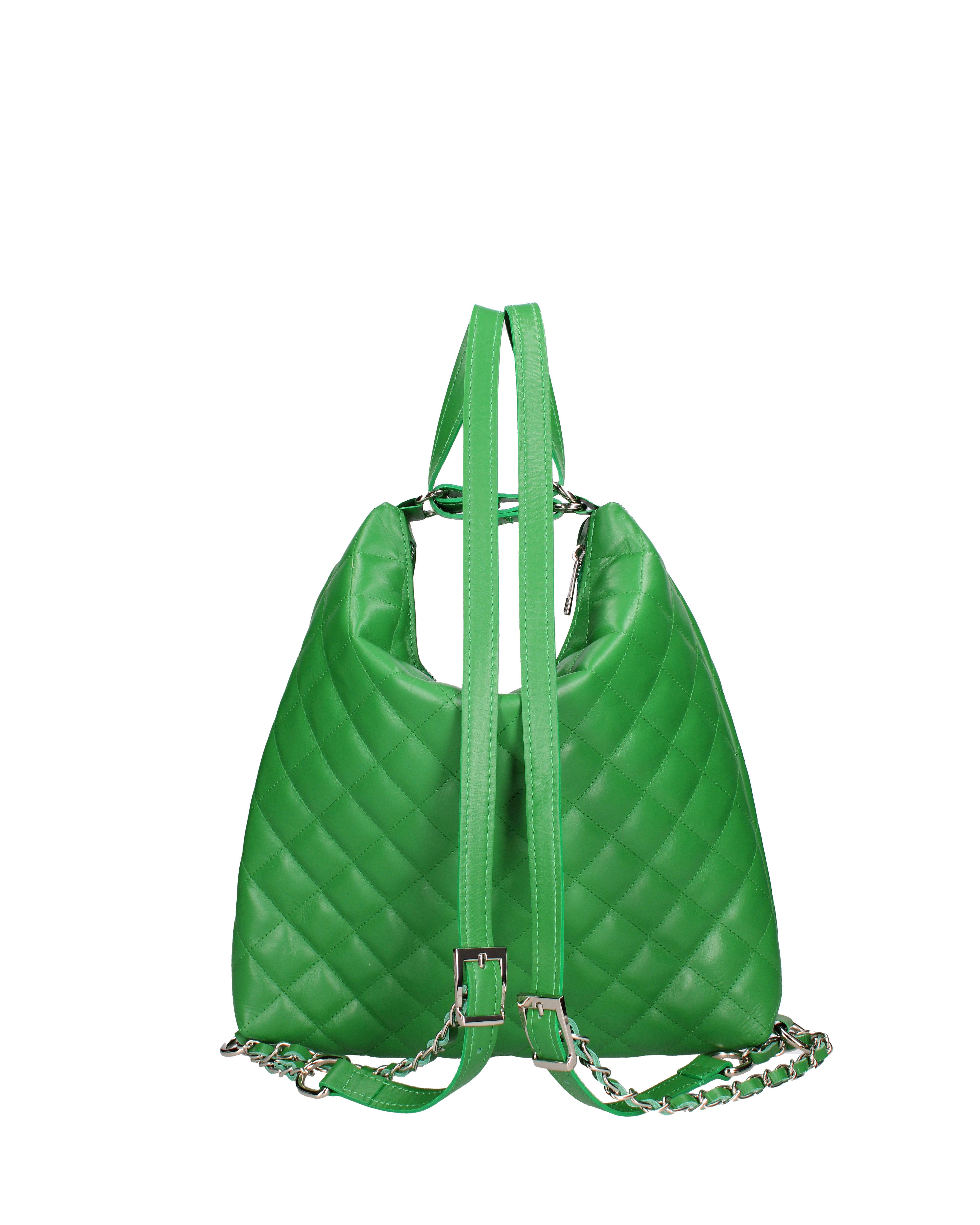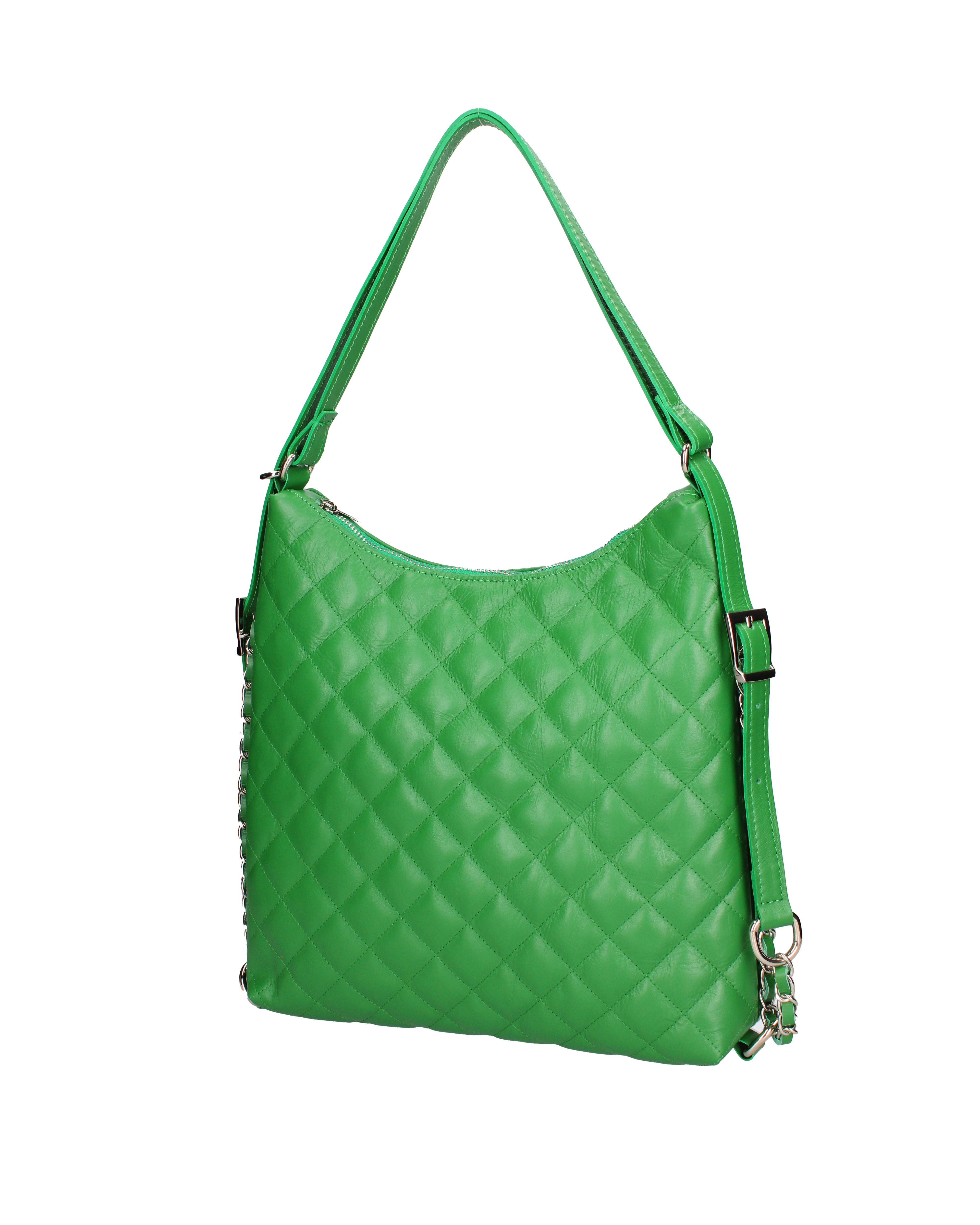 Women's convertible shoulder bag/backpack. Zip closure. One internal zip pocket and two open pockets. No external pockets. No shoulder strap. Leather handle. One internal compartment. The exterior is made of genuine quilted sauvage leather. The interior is lined with 70% cotton - 30% polyester. Dimensions: 30x31x6 cm. Made in Italy.