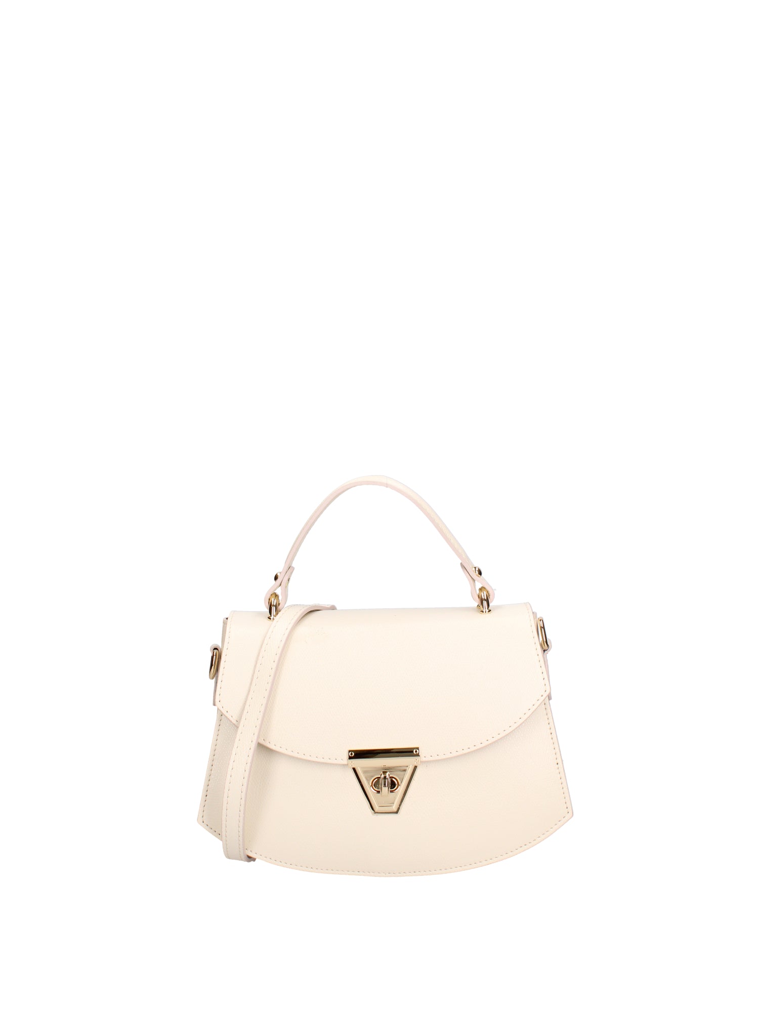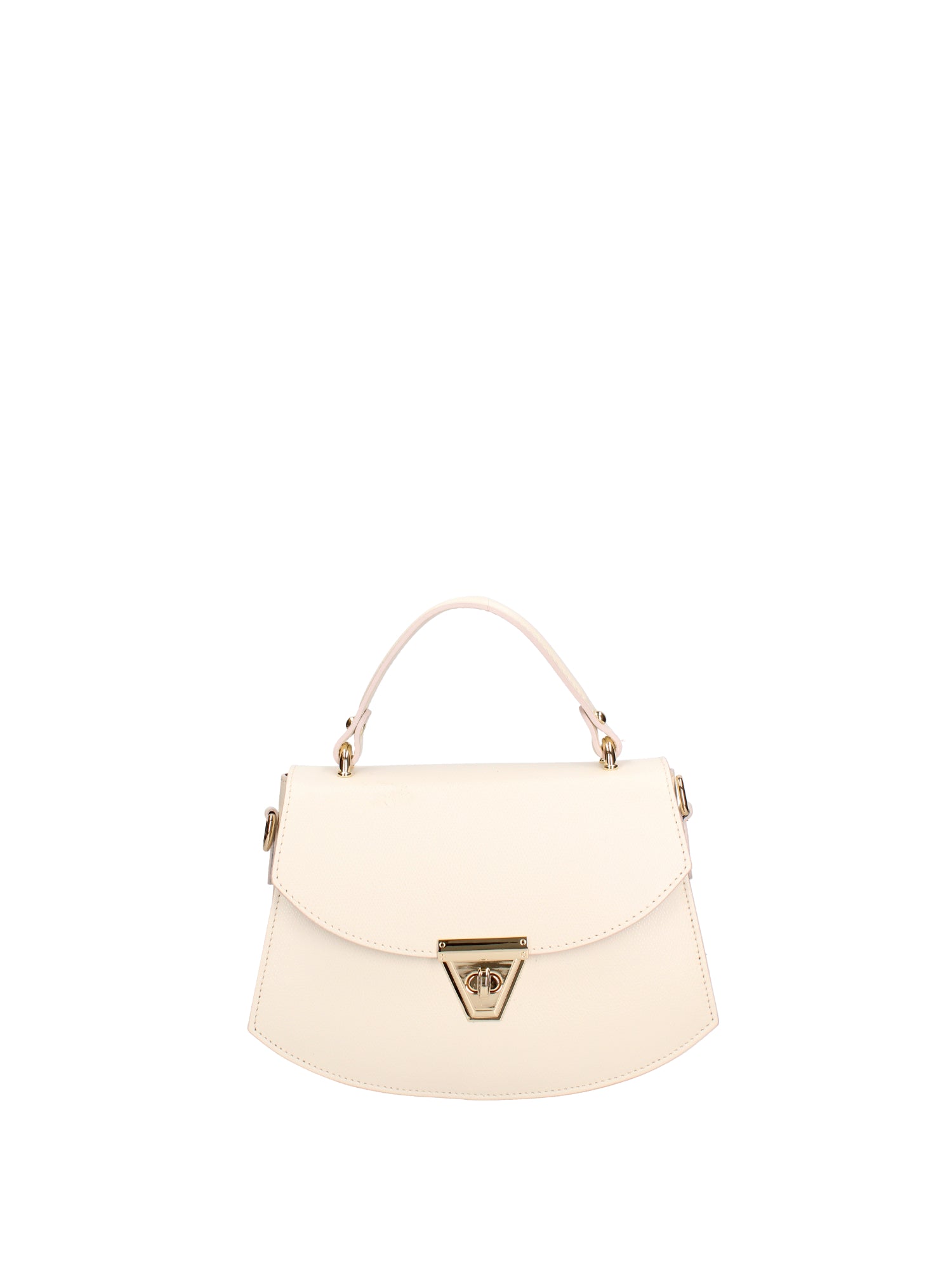 Women's handbag. Twist-lock closure. One interior pocket is zipped. There are no exterior pockets. The shoulder strap is adjustable and removable in leather. The handle is leather. There is one interior compartment. The exterior material is genuine grained leather. The interior is unlined. Dimensions: 26 x 14 x 8 cm. Made in Italy