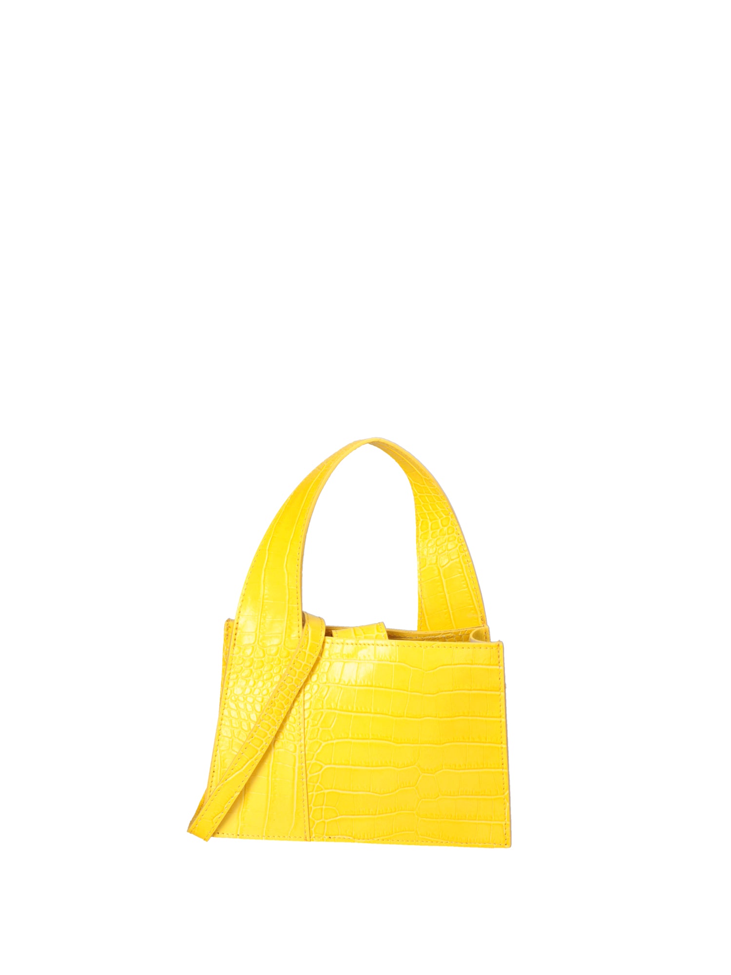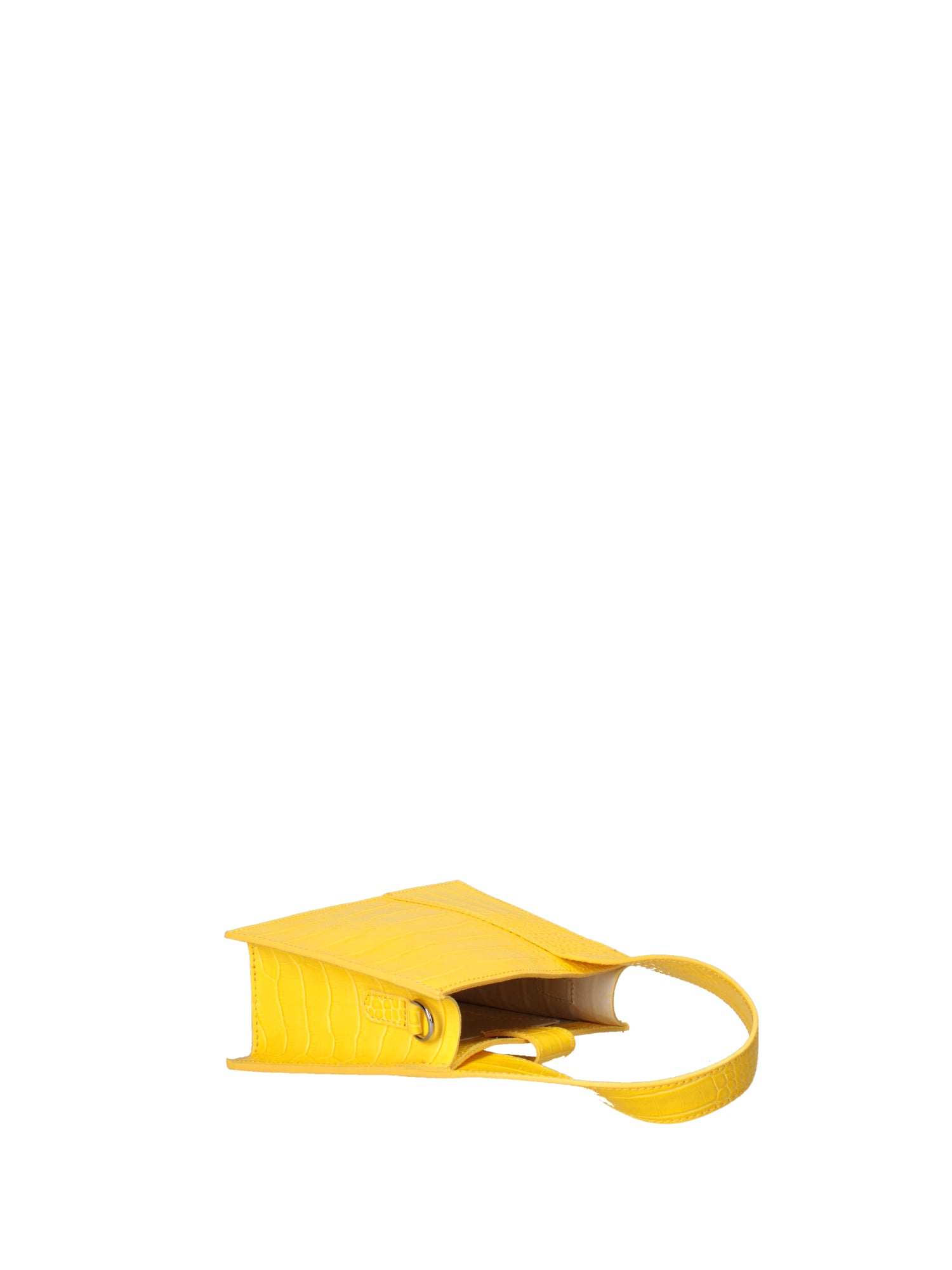 Women's handbag. It closes with a magnetic button. There are one open interior pocket. There are no exterior pockets. The shoulder strap is adjustable and removable in leather. The handle is made of leather. There are one interior compartment. The exterior material is genuine crocodile-effect embossed leather. The interior is unlined. Dimensions: 21 x 14 x 8 cm. Made in Italy