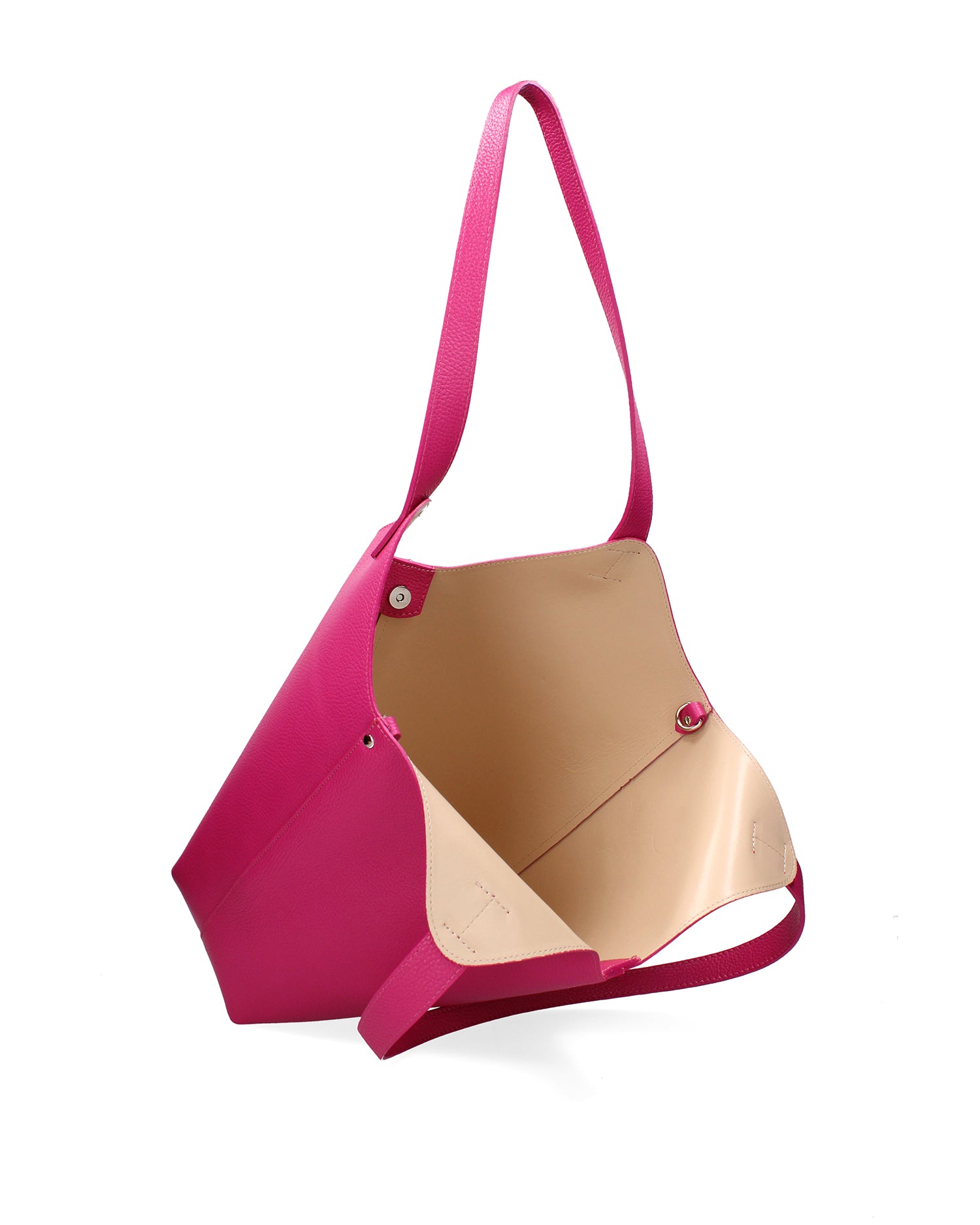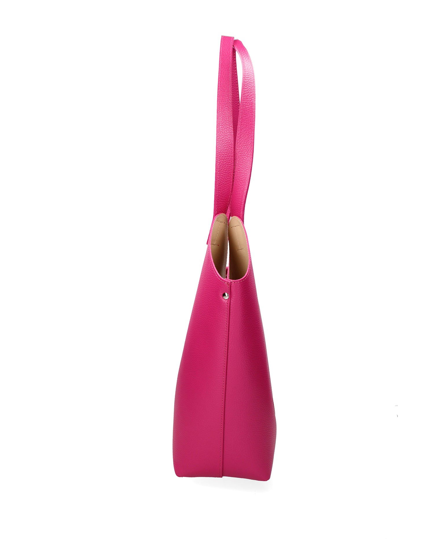 Women's hobo bag. Magnetic closure. No internal pockets. No external pockets. Adjustable and removable leather shoulder strap. Leather handle. One internal compartment. The exterior is made of genuine leather. Unlined, includes a faux leather pouch. Dimensions: 49 x 38 x 13 cm. Made in Italy.