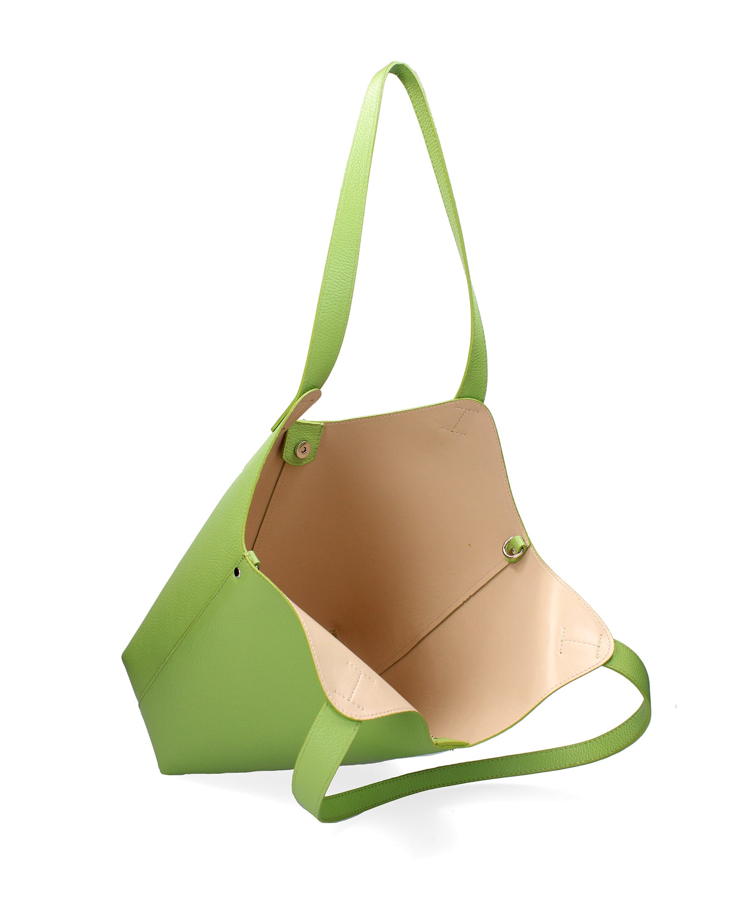 Women's hobo bag. Magnetic closure. No internal pockets. No external pockets. Adjustable and removable leather shoulder strap. Leather handle. One internal compartment. The exterior is made of genuine leather. Unlined, includes a faux leather pouch. Dimensions: 49 x 38 x 13 cm. Made in Italy.