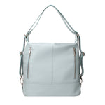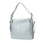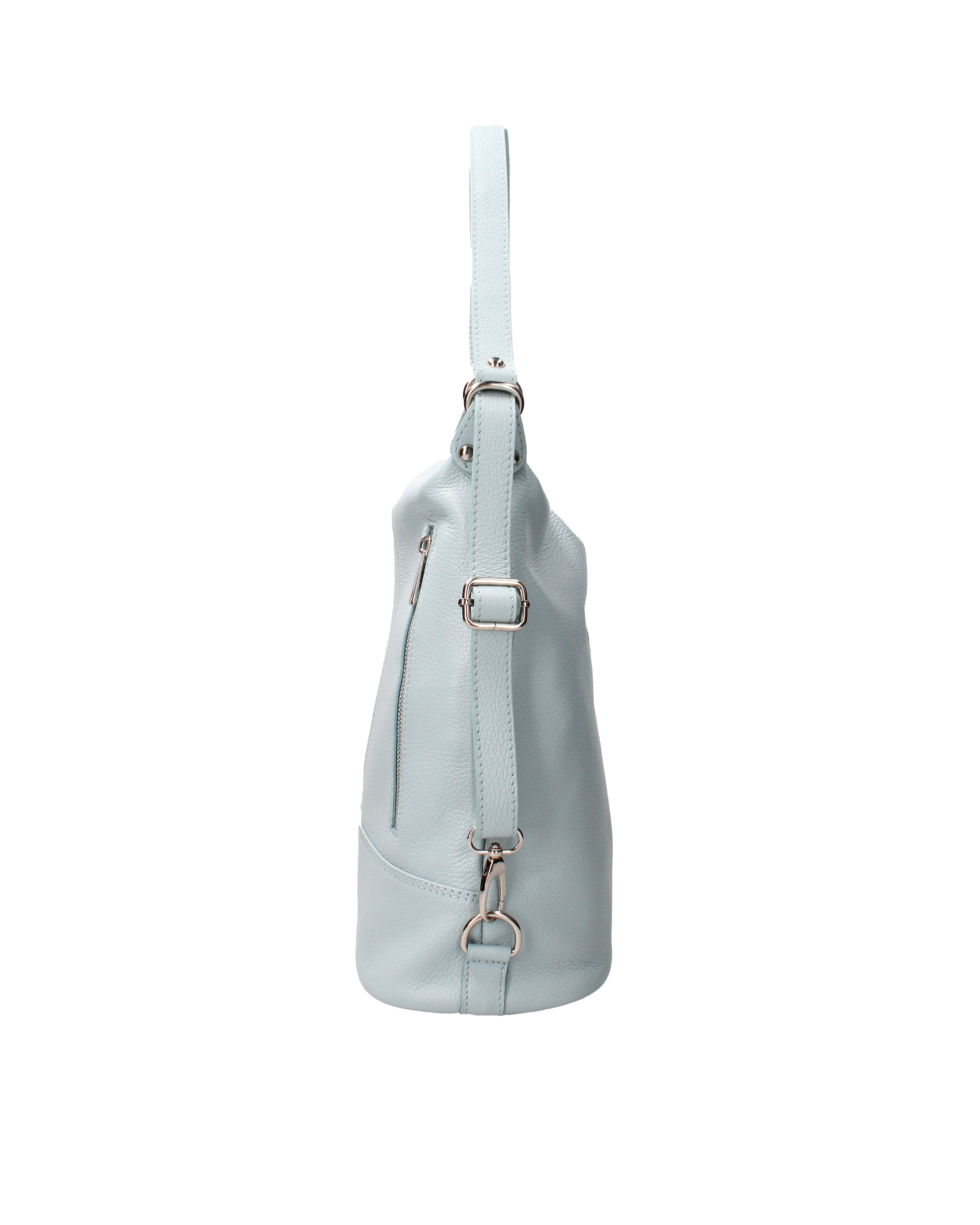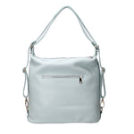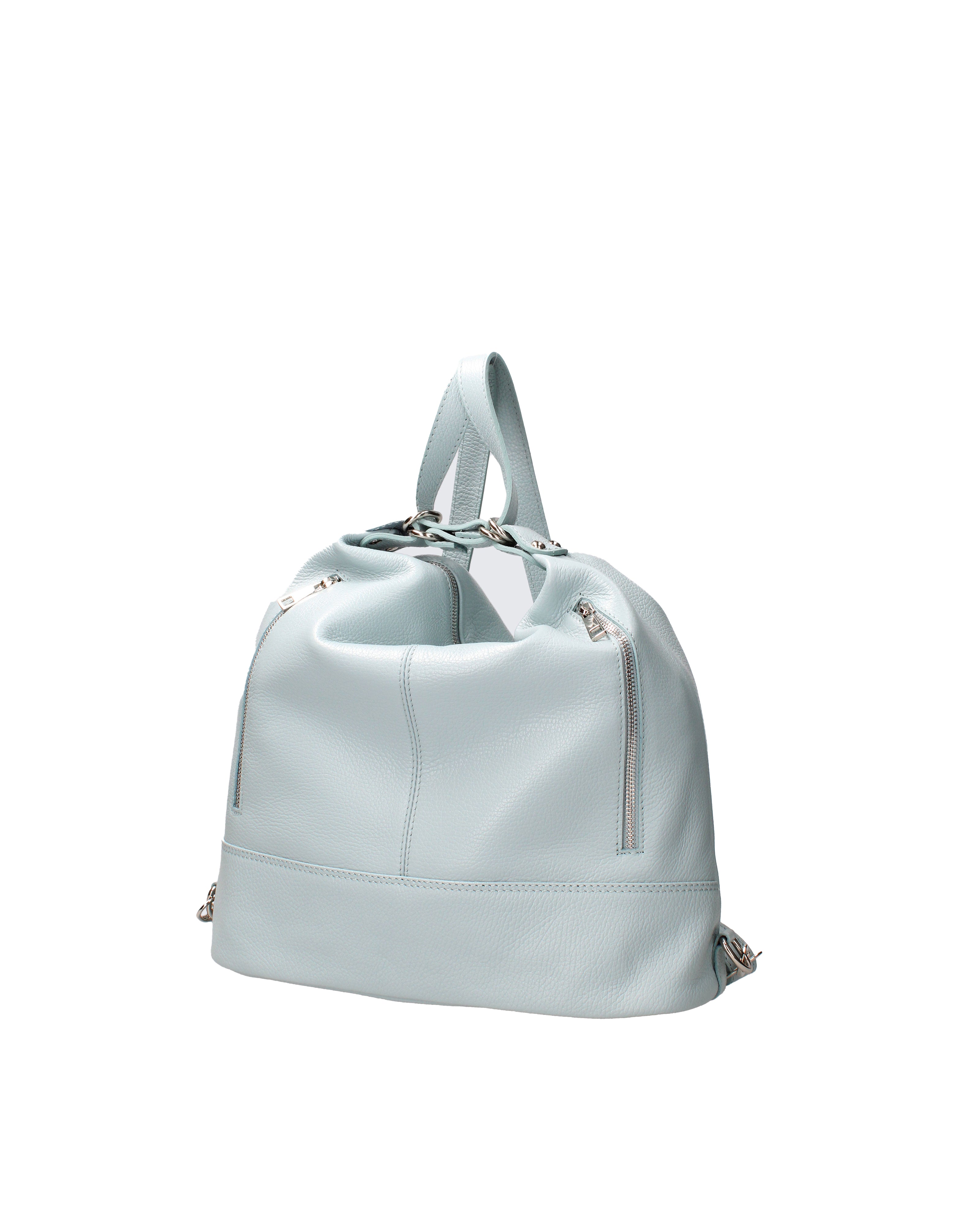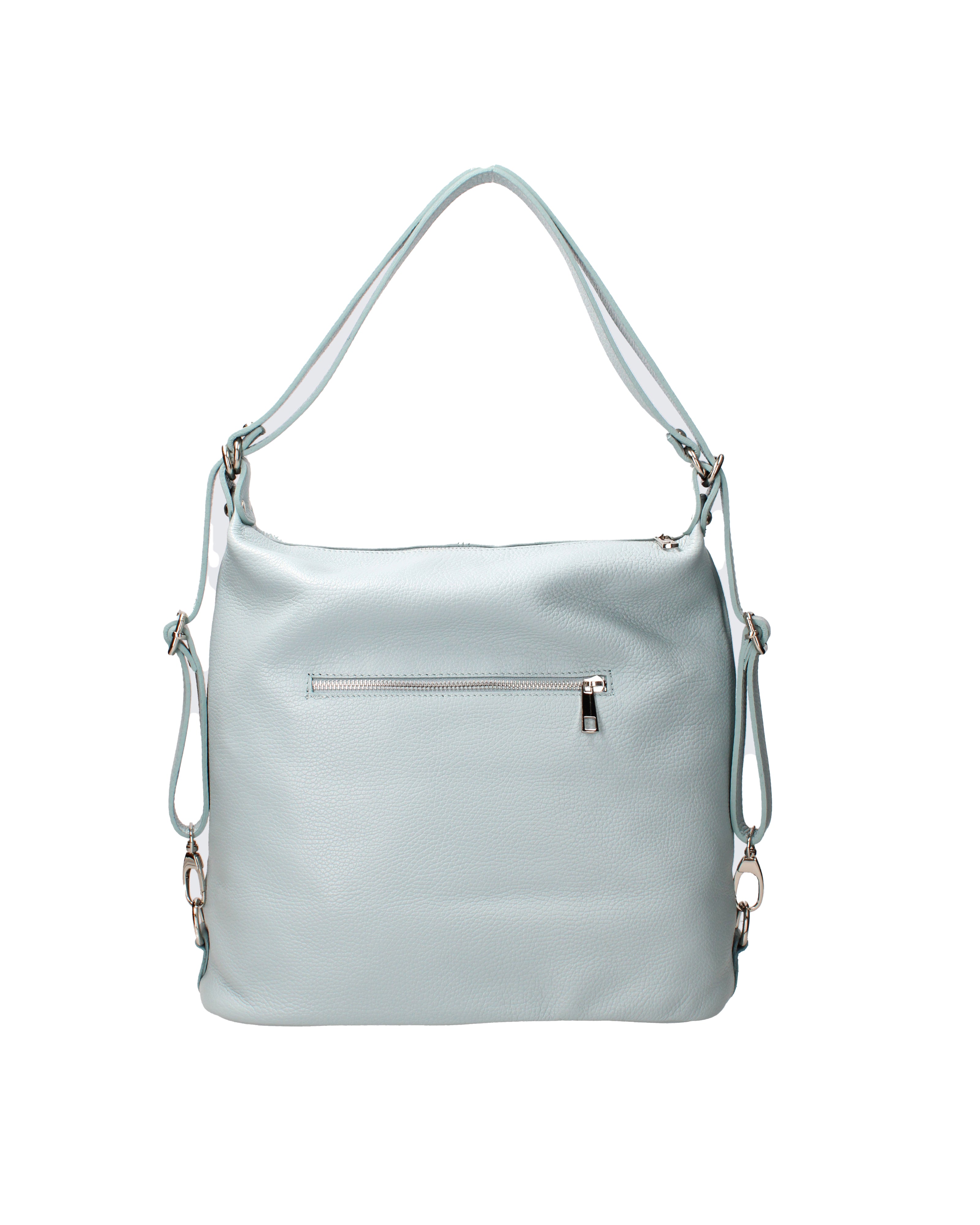 Women's convertible shoulder bag/backpack. Zip closure. One internal zip pocket and two open pockets. Two external zip pockets at the front and two at the back. Adjustable leather shoulder strap. Adjustable leather handle. One internal compartment. The exterior is made of genuine cowhide leather. The interior is lined with 70% cotton - 30% polyester. Dimensions: 33x31x12 cm. Made in Italy.