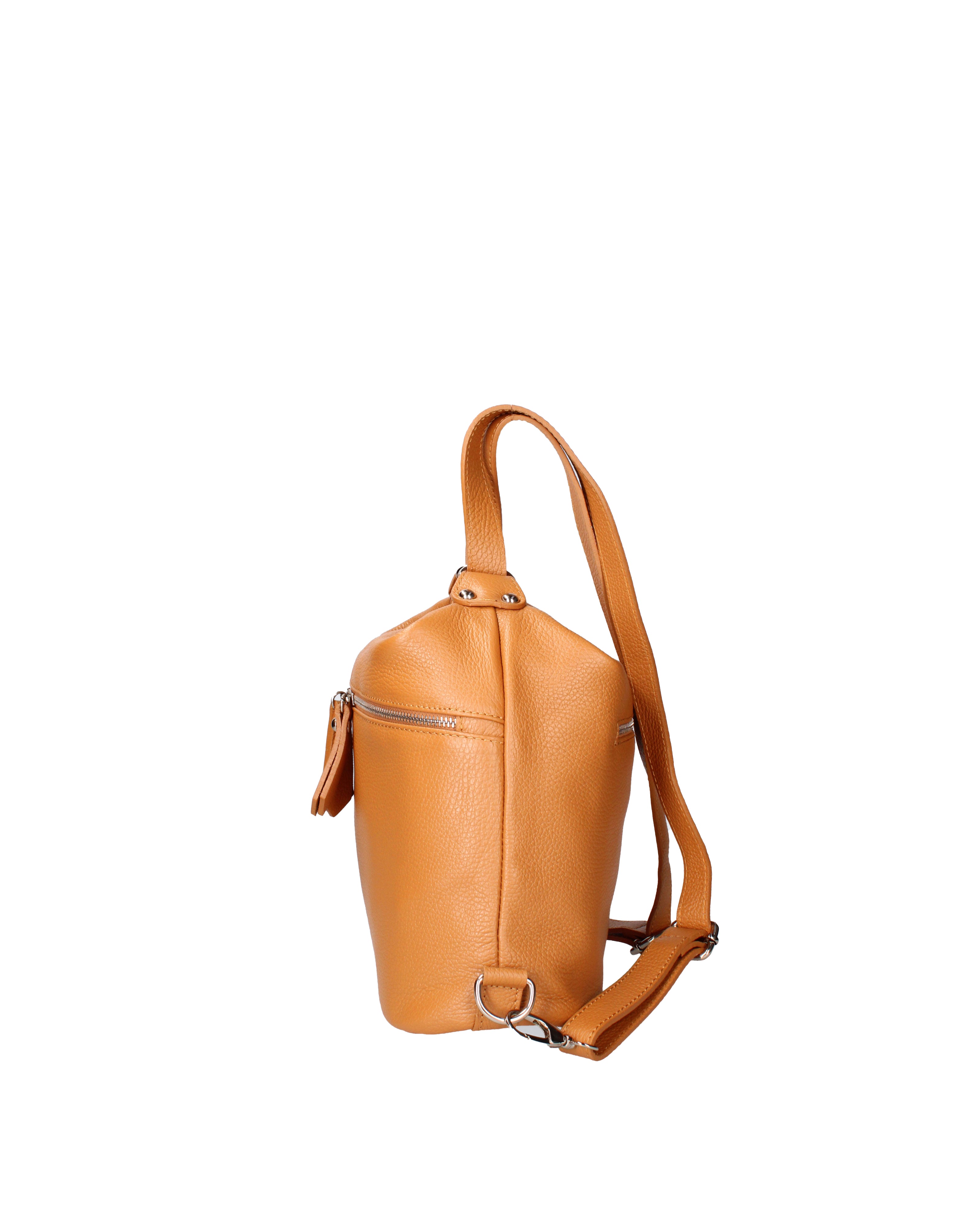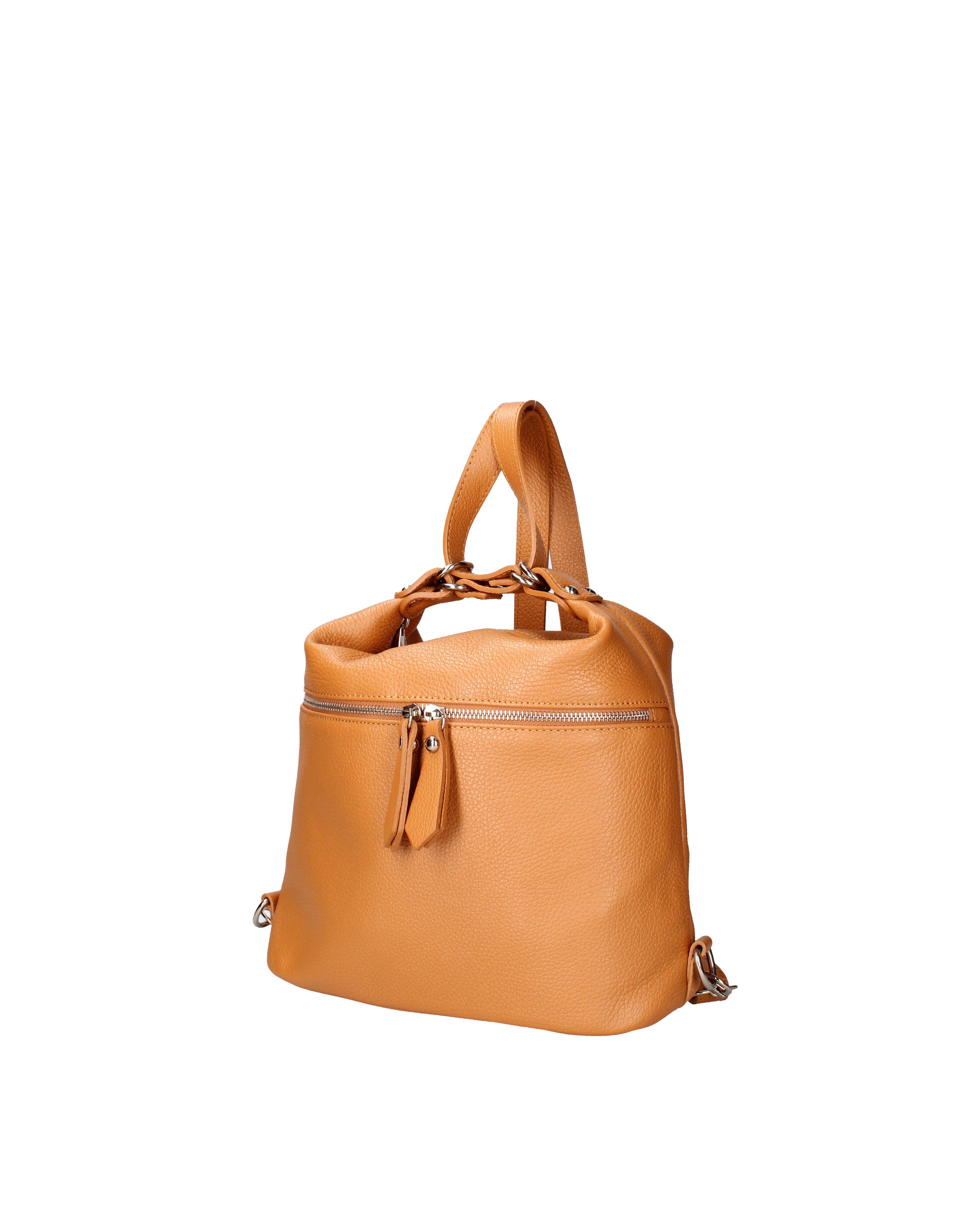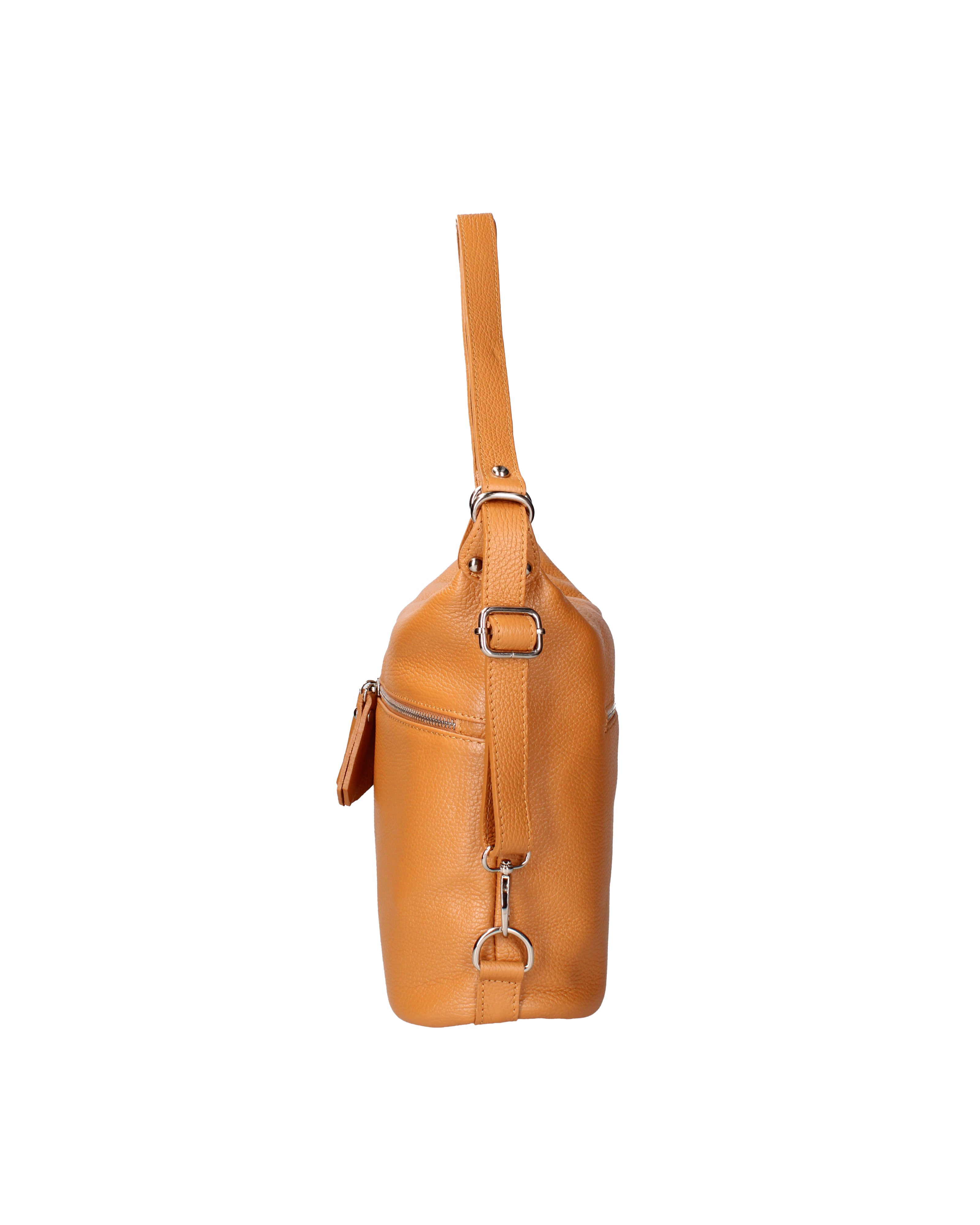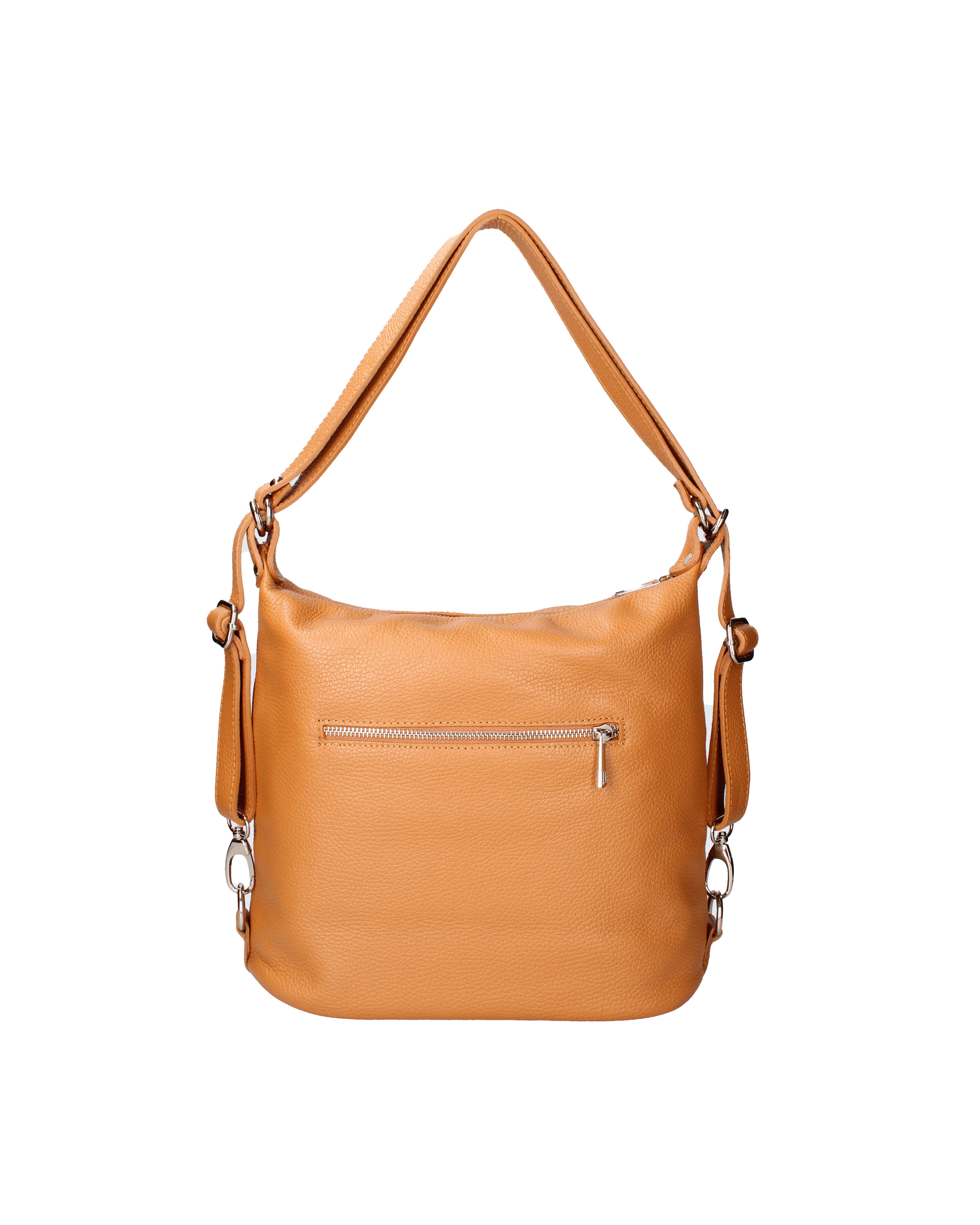 Women's convertible shoulder bag/backpack. Zip closure. One internal zip pocket and two open pockets. One external zip pocket on the front and one on the back. Adjustable leather shoulder strap. Adjustable leather handle. One internal compartment. The exterior is made of genuine cowhide leather. The interior is lined with 70% cotton - 30% polyester fabric. Dimensions: 30x26x9 cm. Made in Italy.