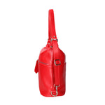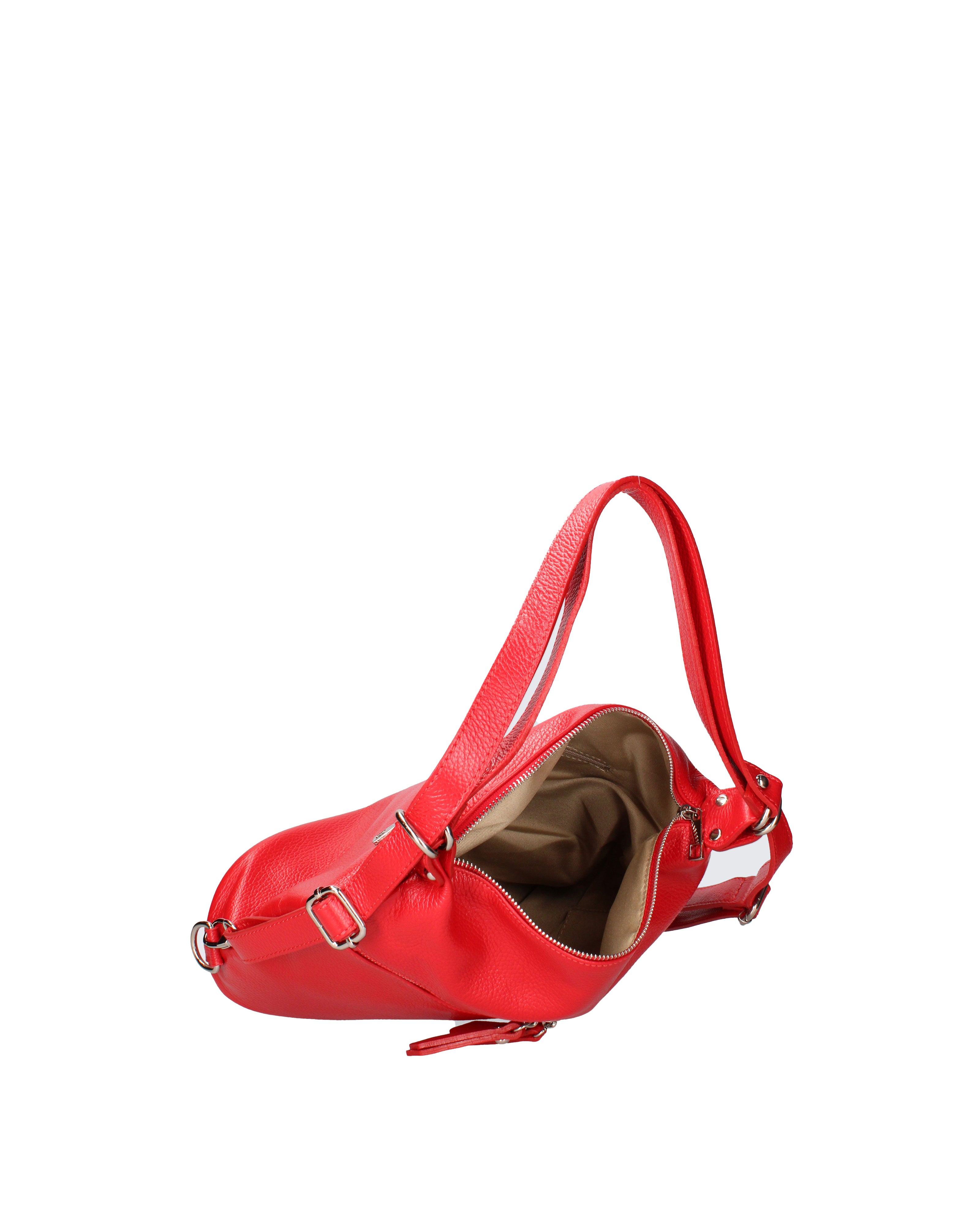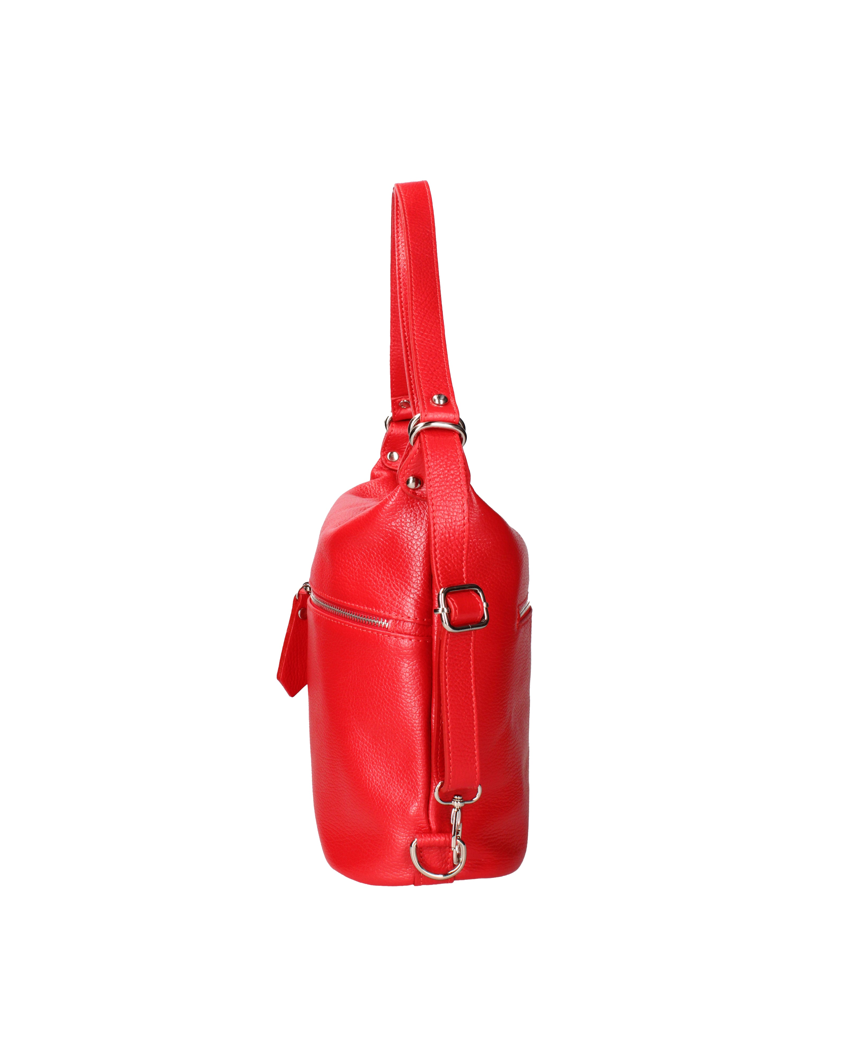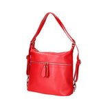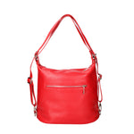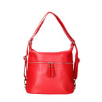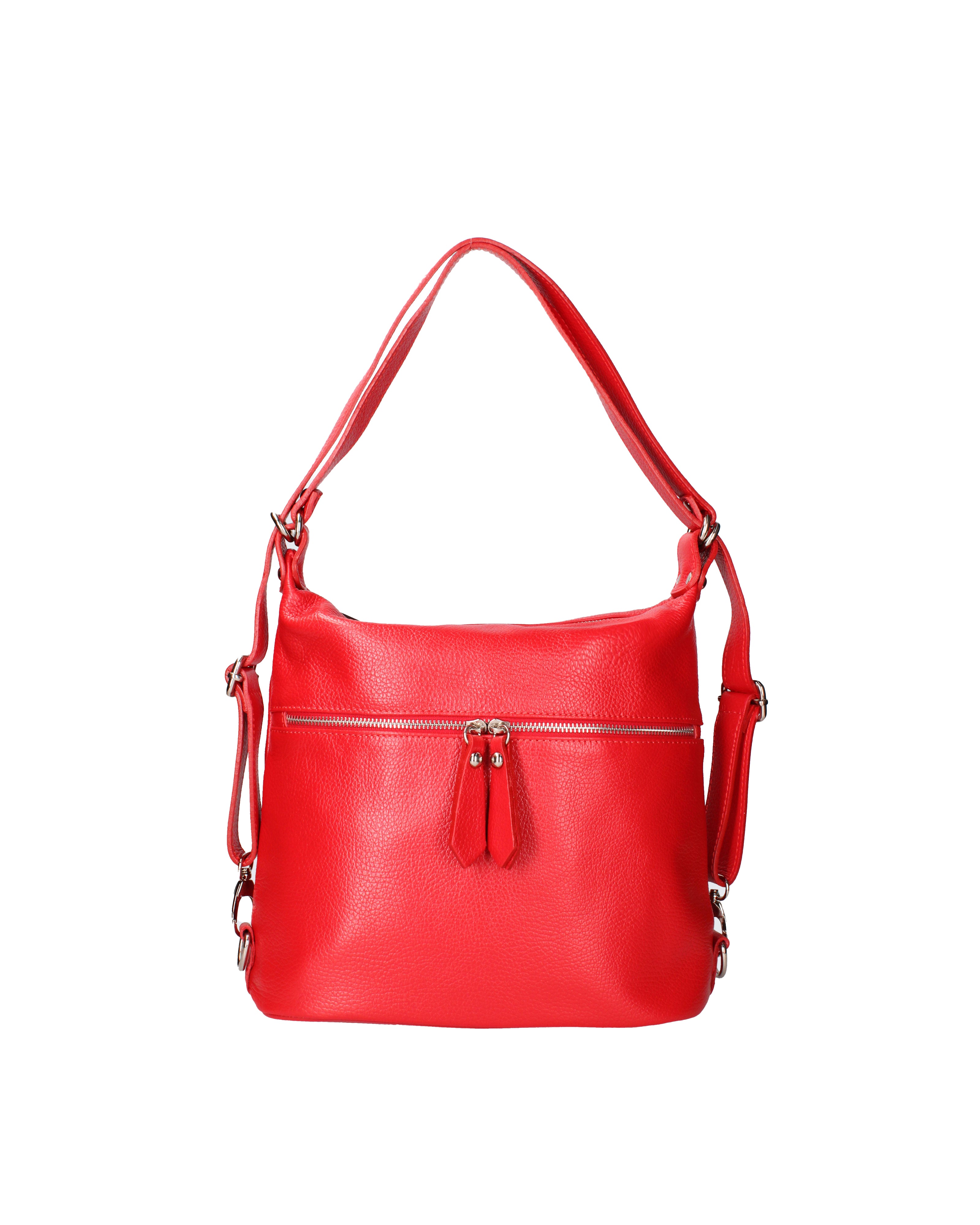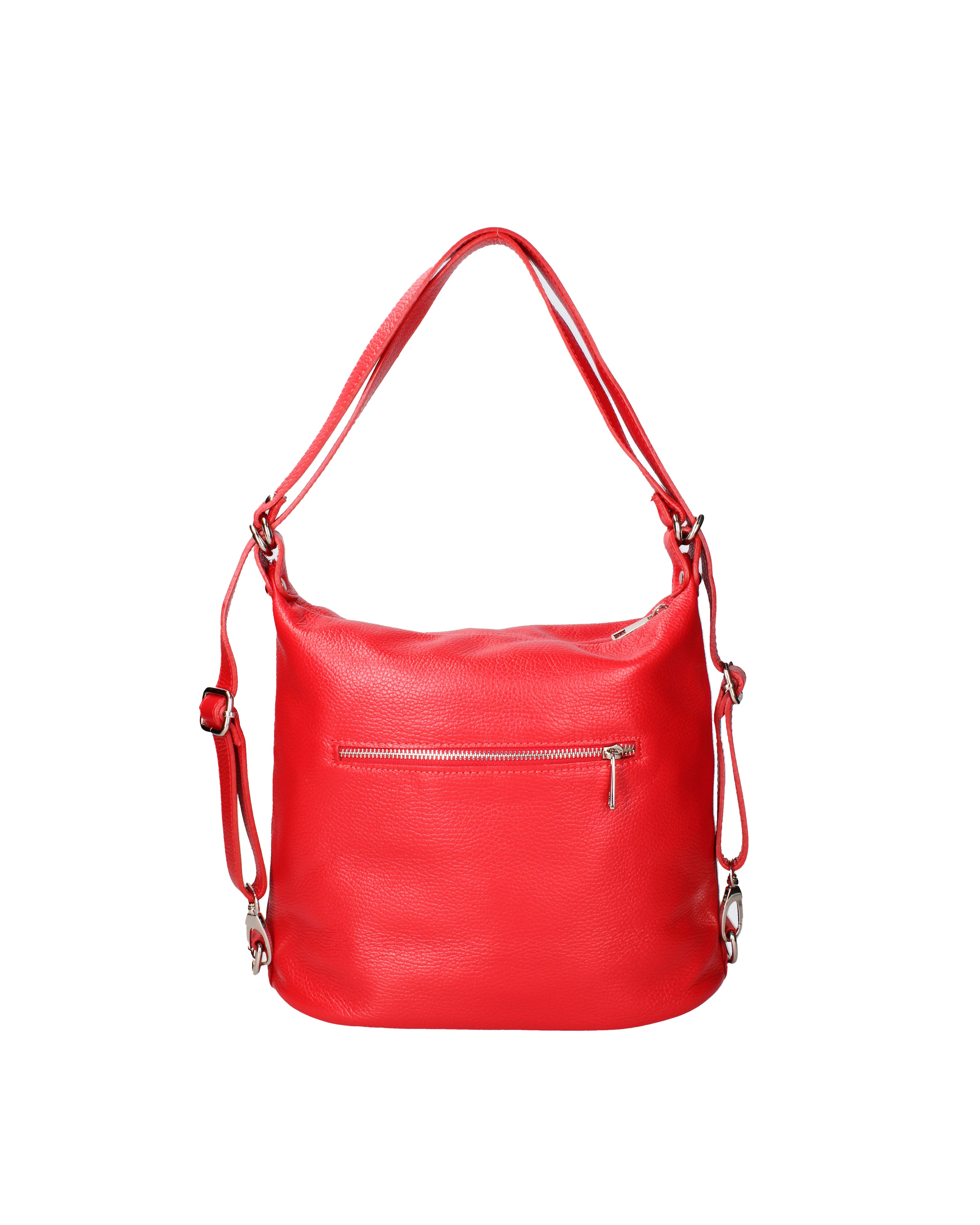 Women's convertible shoulder bag/backpack. Zip closure. One internal zip pocket and two open pockets. One external zip pocket on the front and one on the back. Adjustable leather shoulder strap. Adjustable leather handle. One internal compartment. The exterior is made of genuine cowhide leather. The interior is lined with 70% cotton - 30% polyester fabric. Dimensions: 30x26x9 cm. Made in Italy.