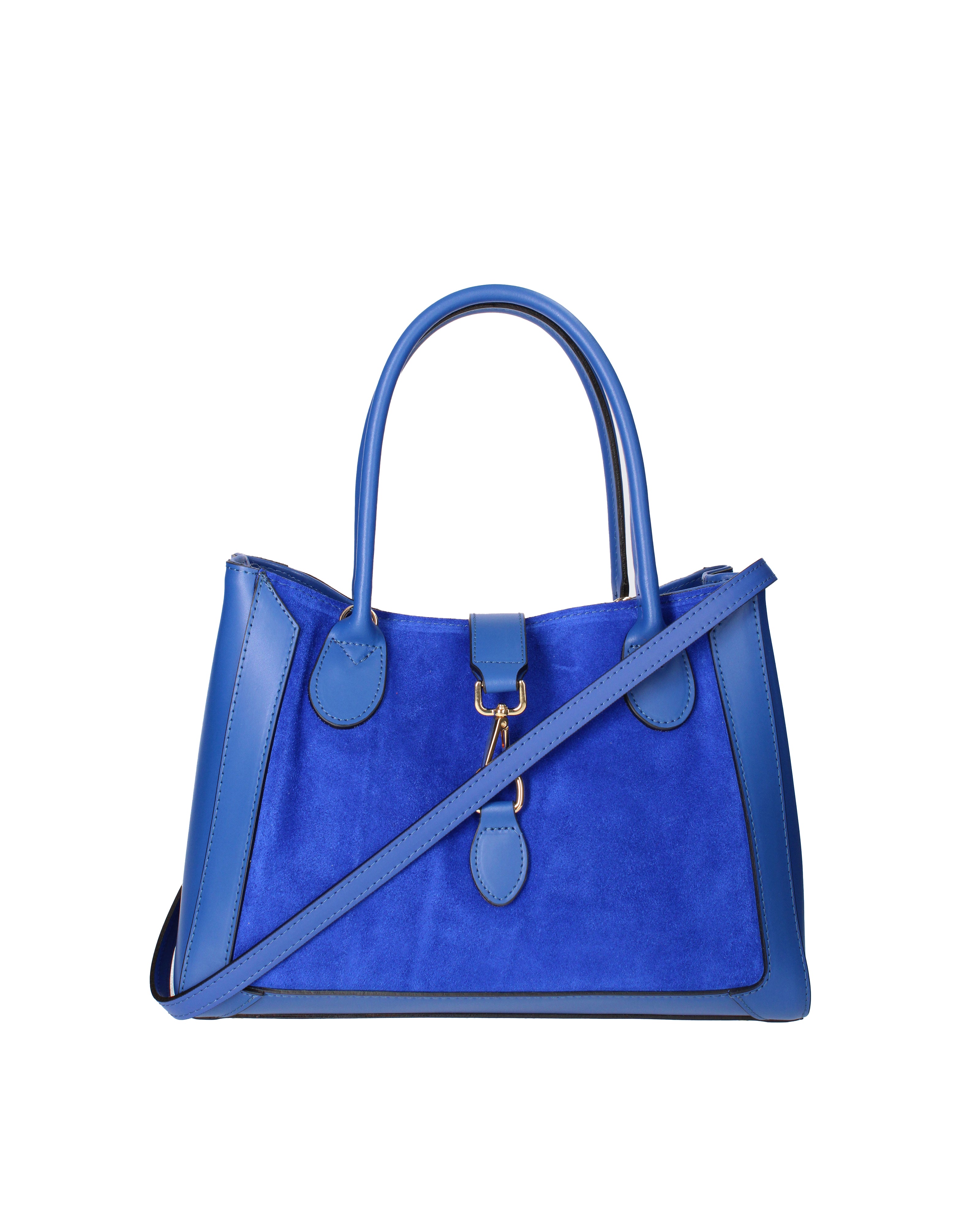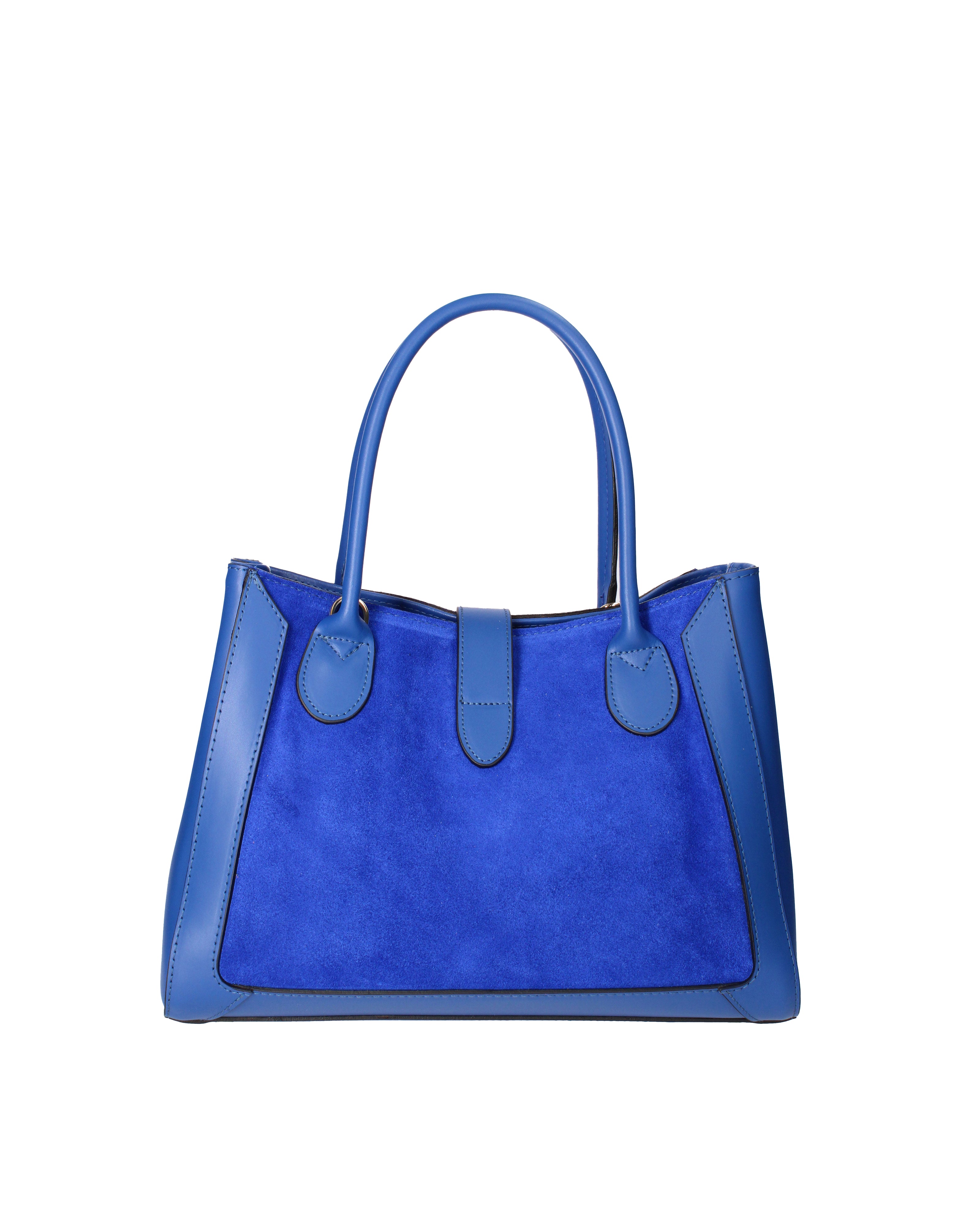Women's handbag. Zip closure. Two internal pockets with zips and one open pocket. No external pockets. Adjustable and removable leather shoulder strap. Leather handle. Two internal compartments. The exterior is made of genuine suede and wrinkle leather. Lining: 70% cotton - 30% polyester. Dimensions: 35 x 25.5 x 15 cm. Made in Italy.